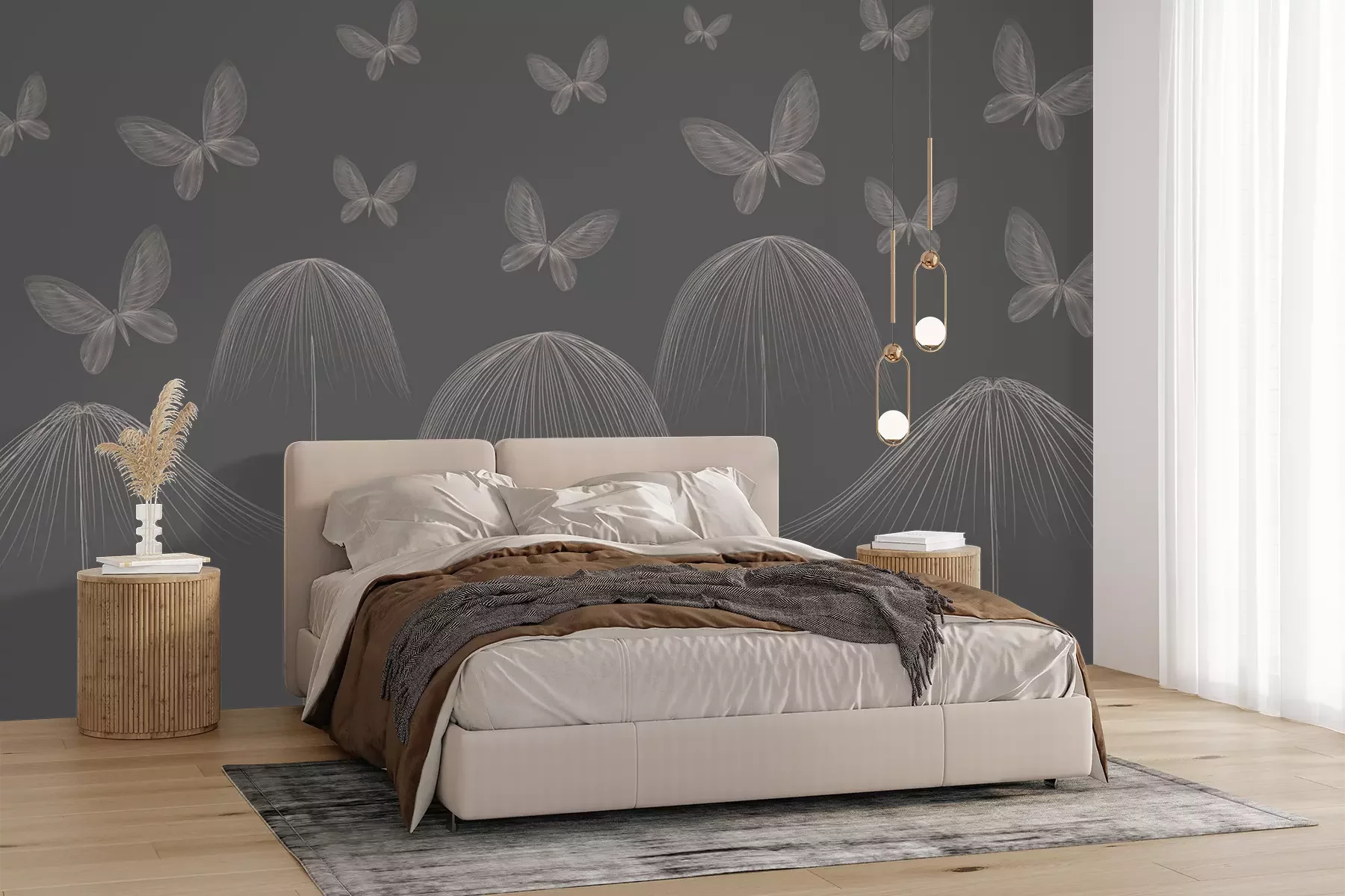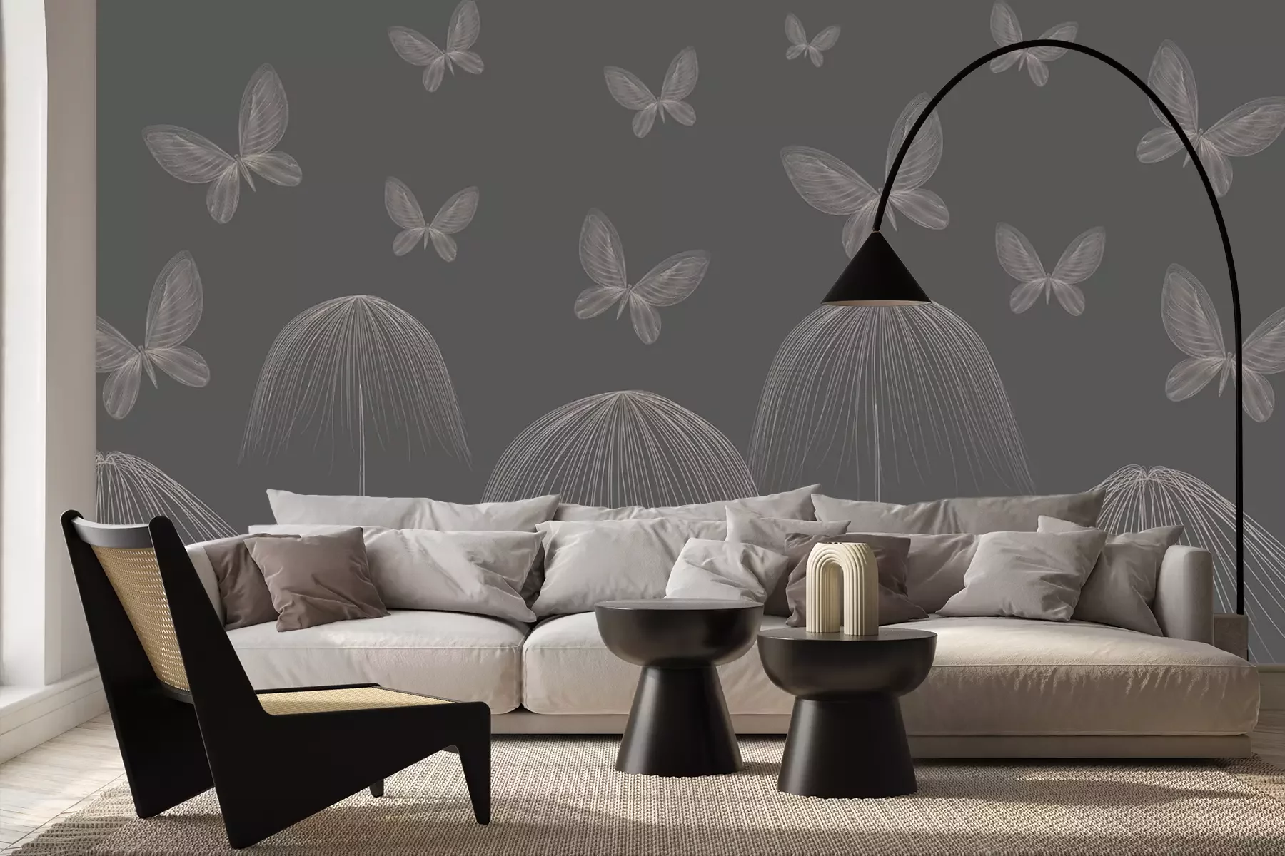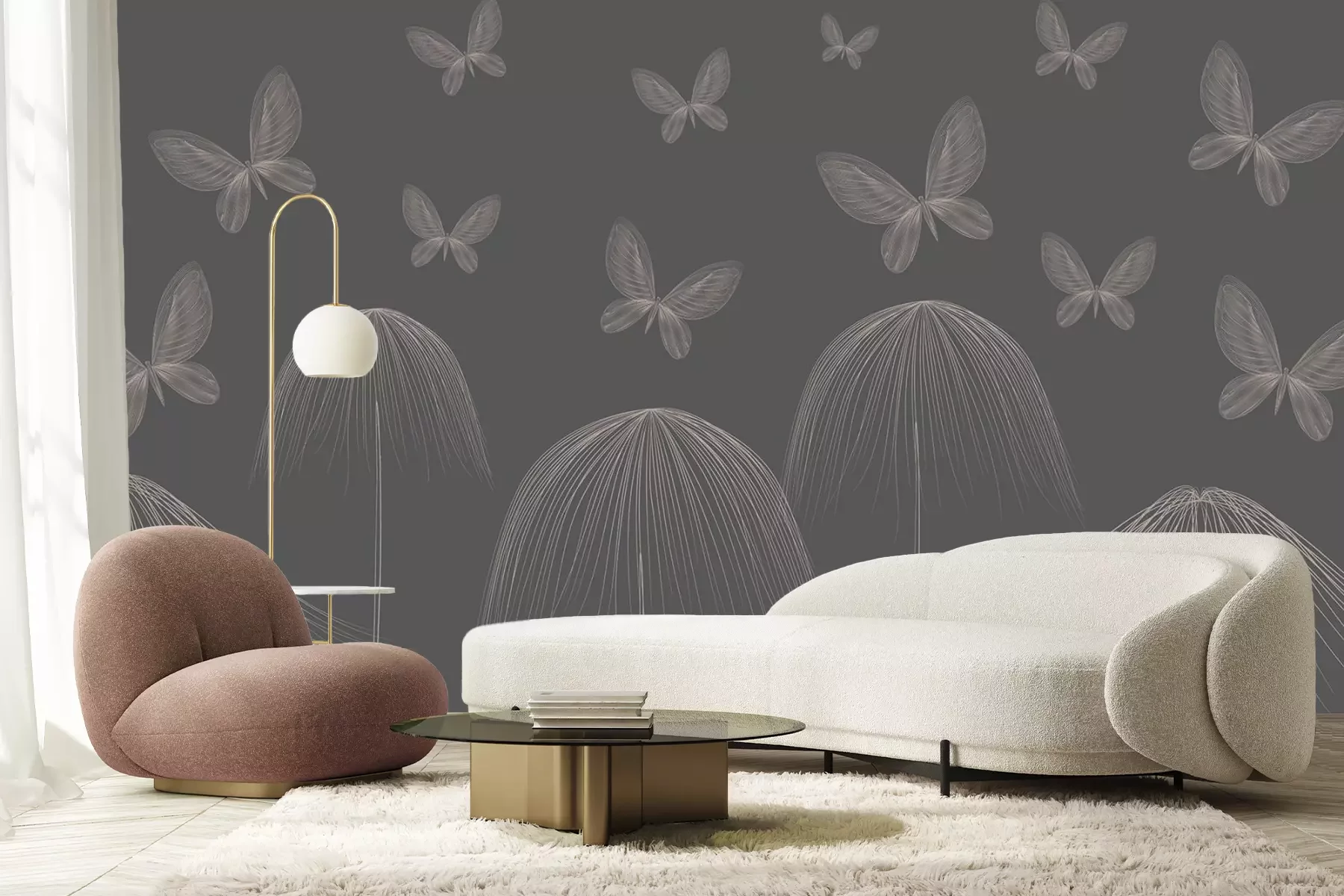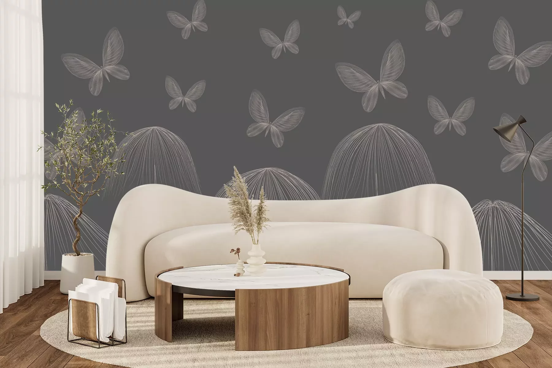 Minimalistisch vlinderpatroon op een donkere achtergrond, elegante graphics