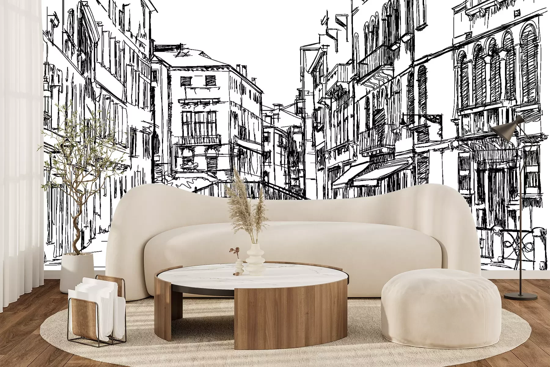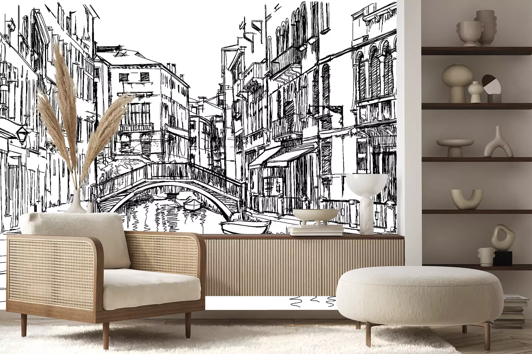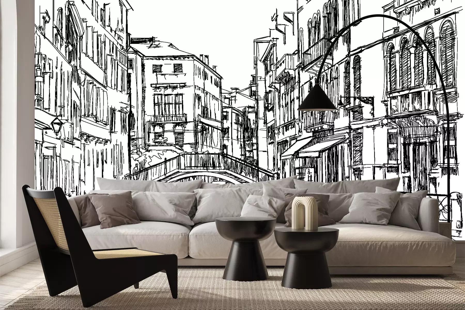 Zwart-wit schets van VenetiëProbleemloze bezorging verzorgd door vertrouwde vervoerders