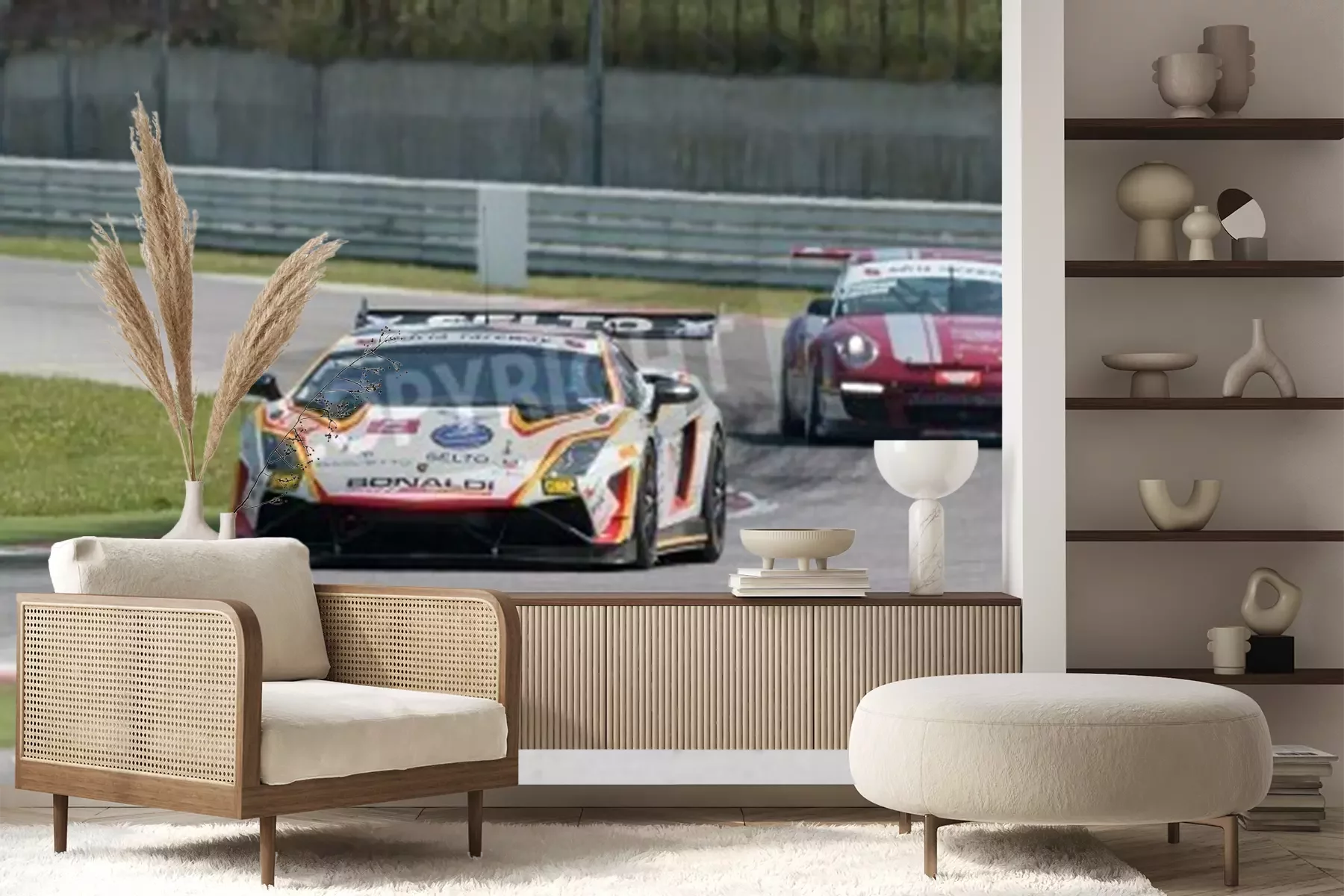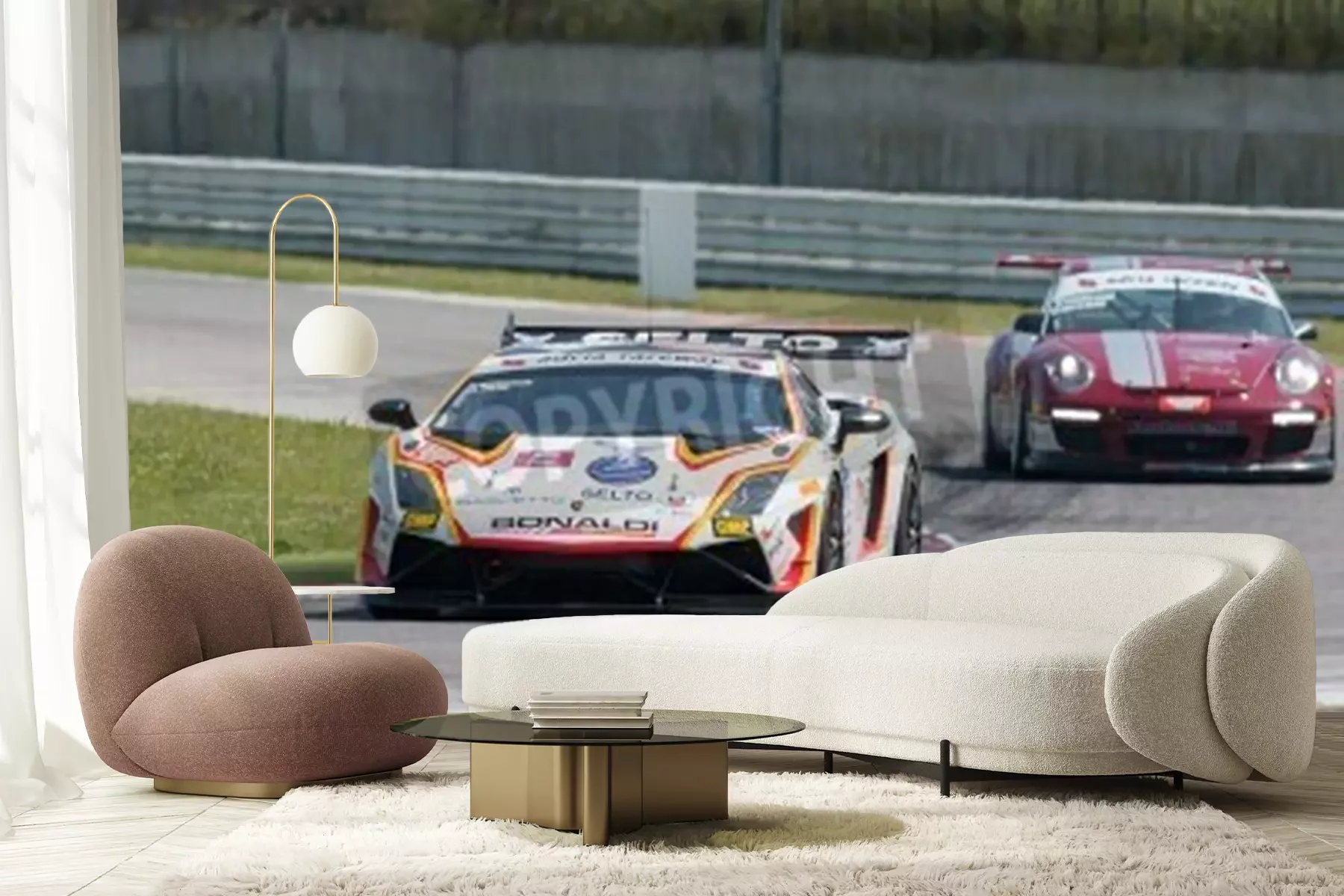 Fotobehang Misano Adriatico, Rimini, Italië - 10 mei: Een Lamborghini Gallardo GT3 van BONALDI MOTORSPORT team, gedreven door "EL PATO" (ITA) en MALDONADO Sebastian, de CI Gran Turismo auto racen op 10 mei 2014