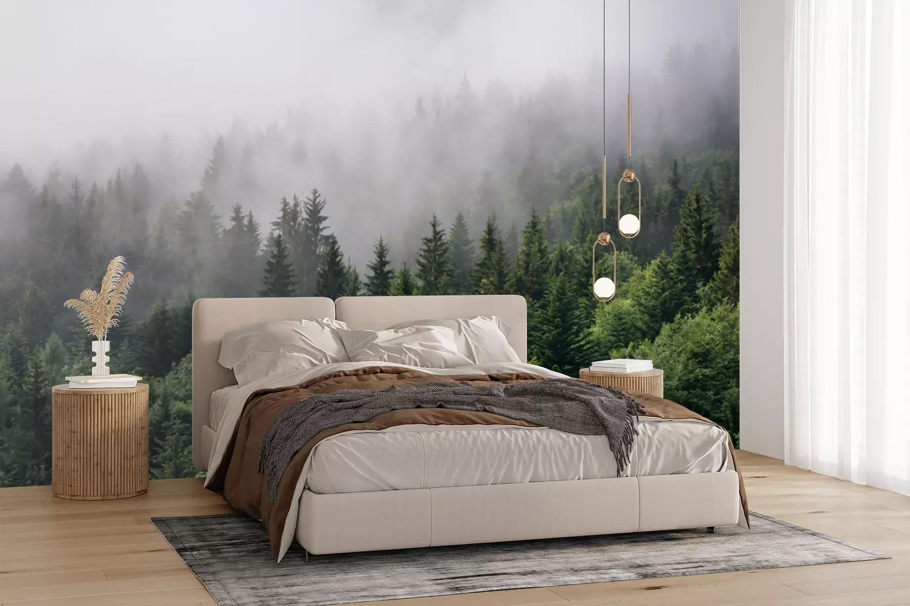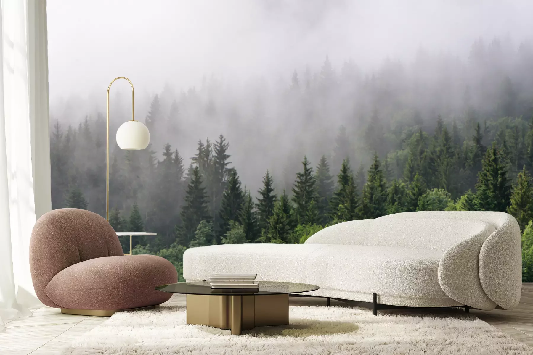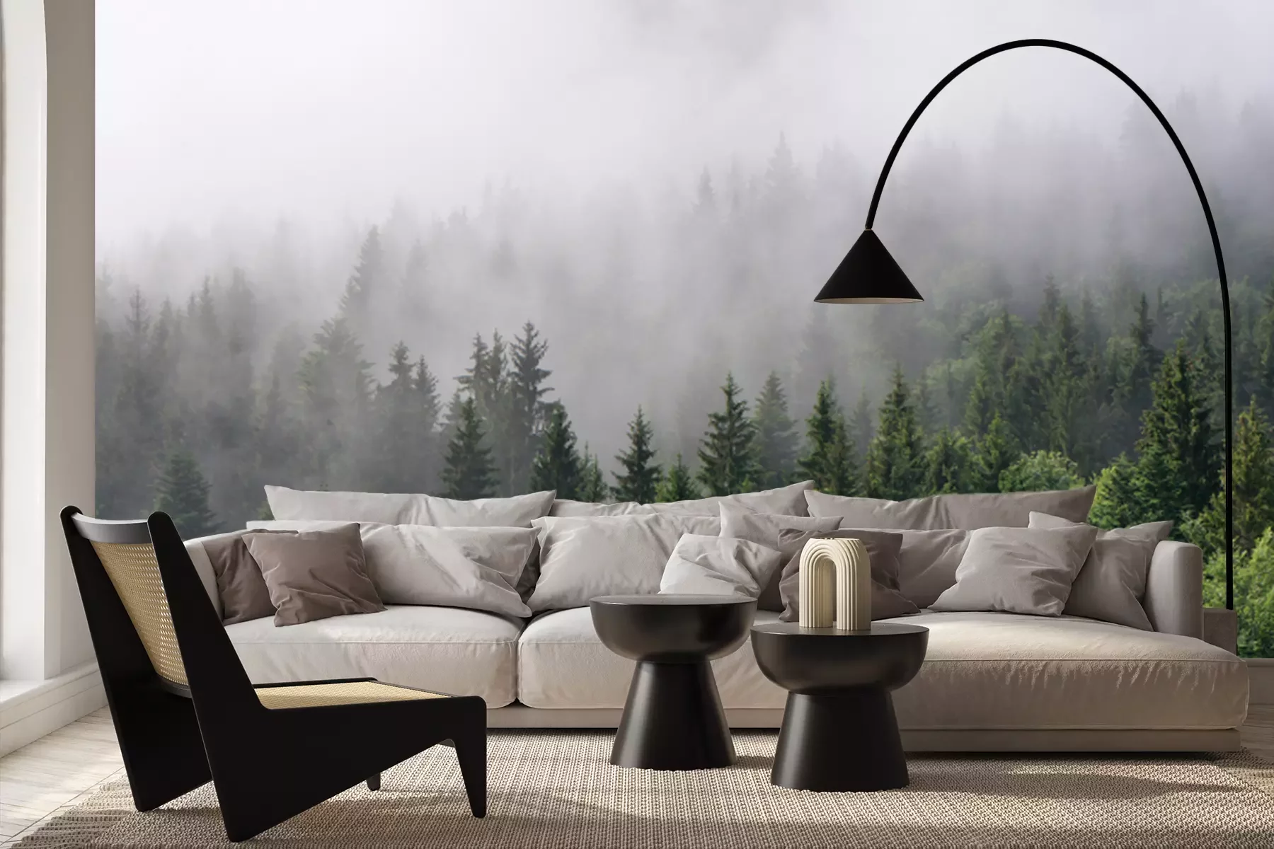 Beboste berghellingen in hoge mistProbleemloze bezorging verzorgd door vertrouwde vervoerders
