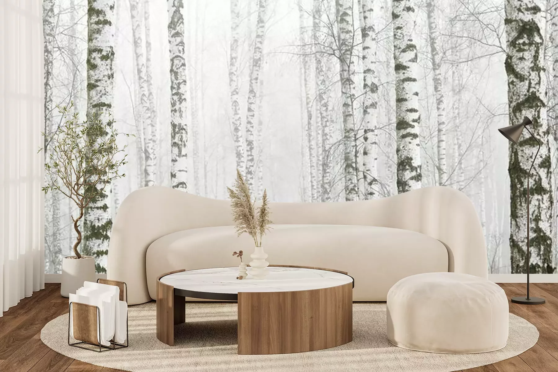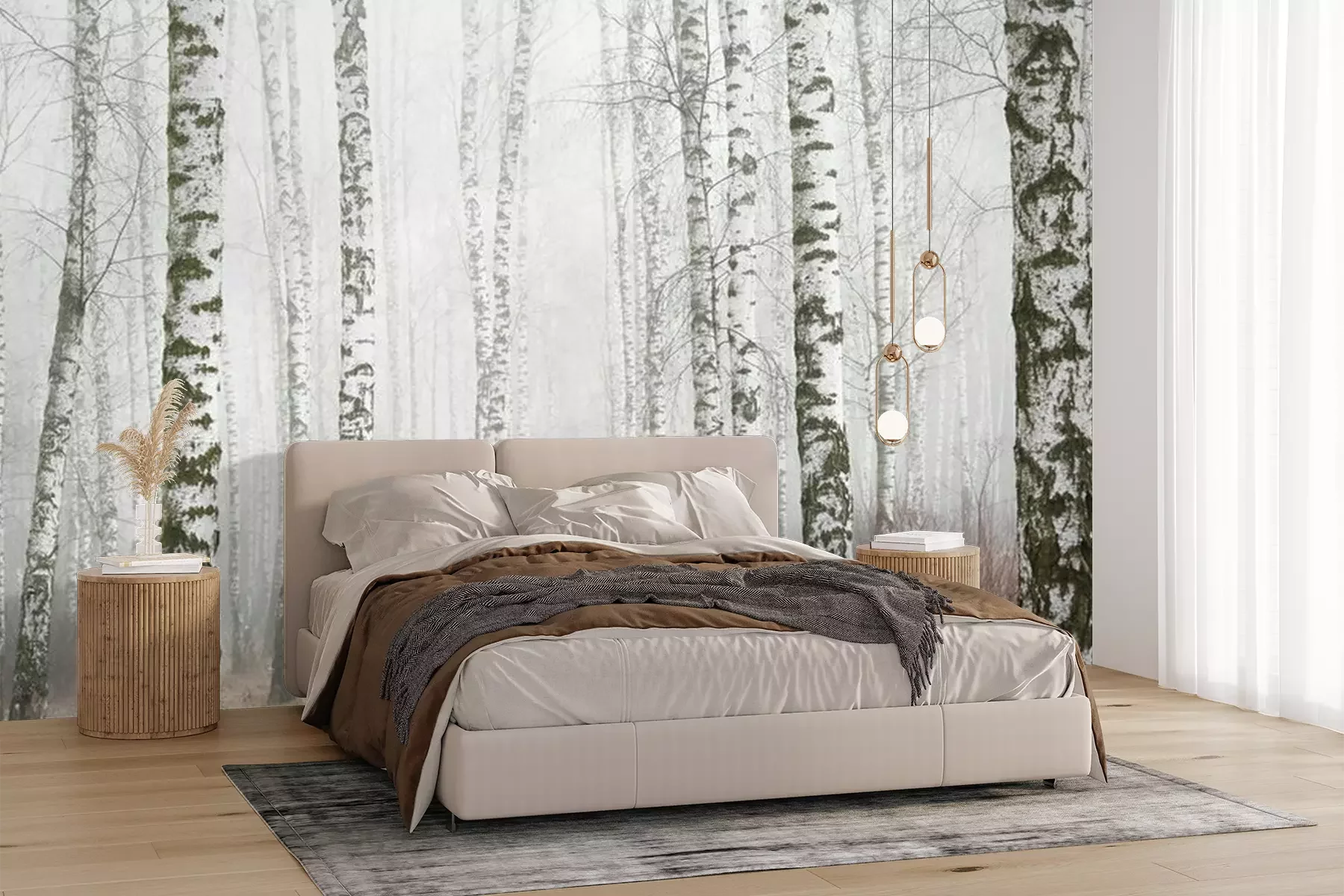 Berkenbosbomen in de ochtendmistFotobehang