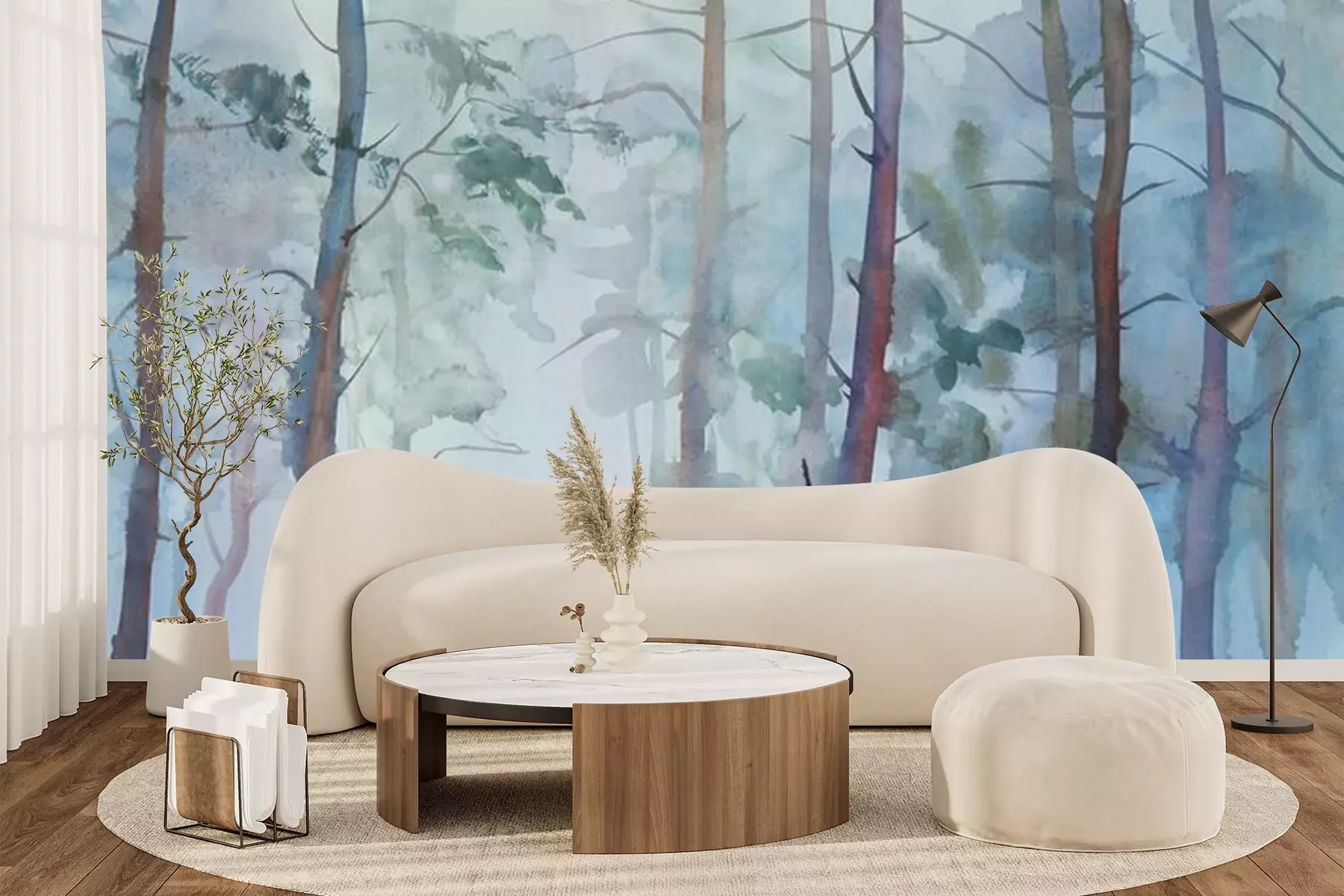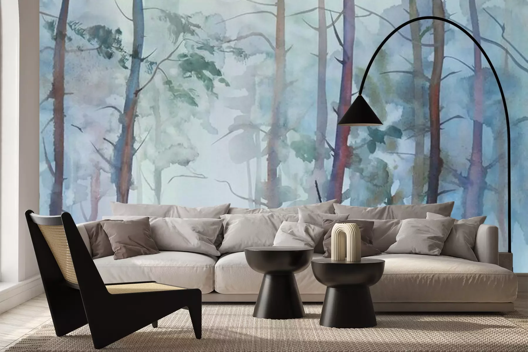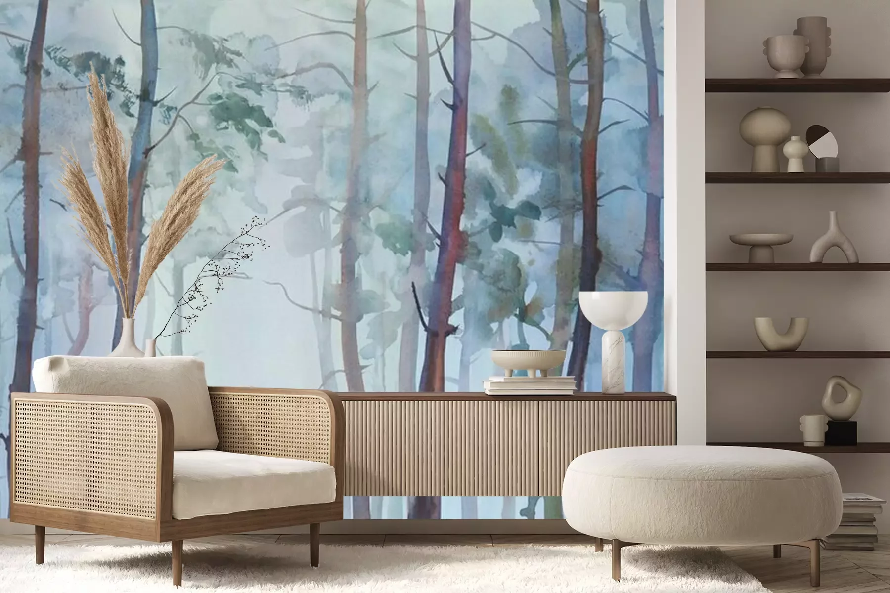 Het materiaal Premium+ is een gestructureerd vinyl op vlies met een gewicht van 255 g/m², dat kleine oneffenheden in de muur effectief camoufleert. De subtiele structuur van fijn zand geeft het oppervlak een exclusieve uitstraling, terwijl de halfmatte afwerking de diepte van de kleuren benadrukt. Het materiaal is dampdoorlatend, waardoor het ook in de keuken en badkamer kan worden gebruikt. De maximale breedte van één baan bedraagt 100 cm – bij grotere afmetingen wordt het fotobehang in meerdere gelijke banen verdeeld. De lijm wordt direct op de muur aangebracht en het behang wordt rand-aan-rand geplakt, wat zorgt voor een esthetisch resultaat zonder zichtbare naden. Het oppervlak kan gemakkelijk worden schoongemaakt door het voorzichtig af te nemen met een vochtige doek.