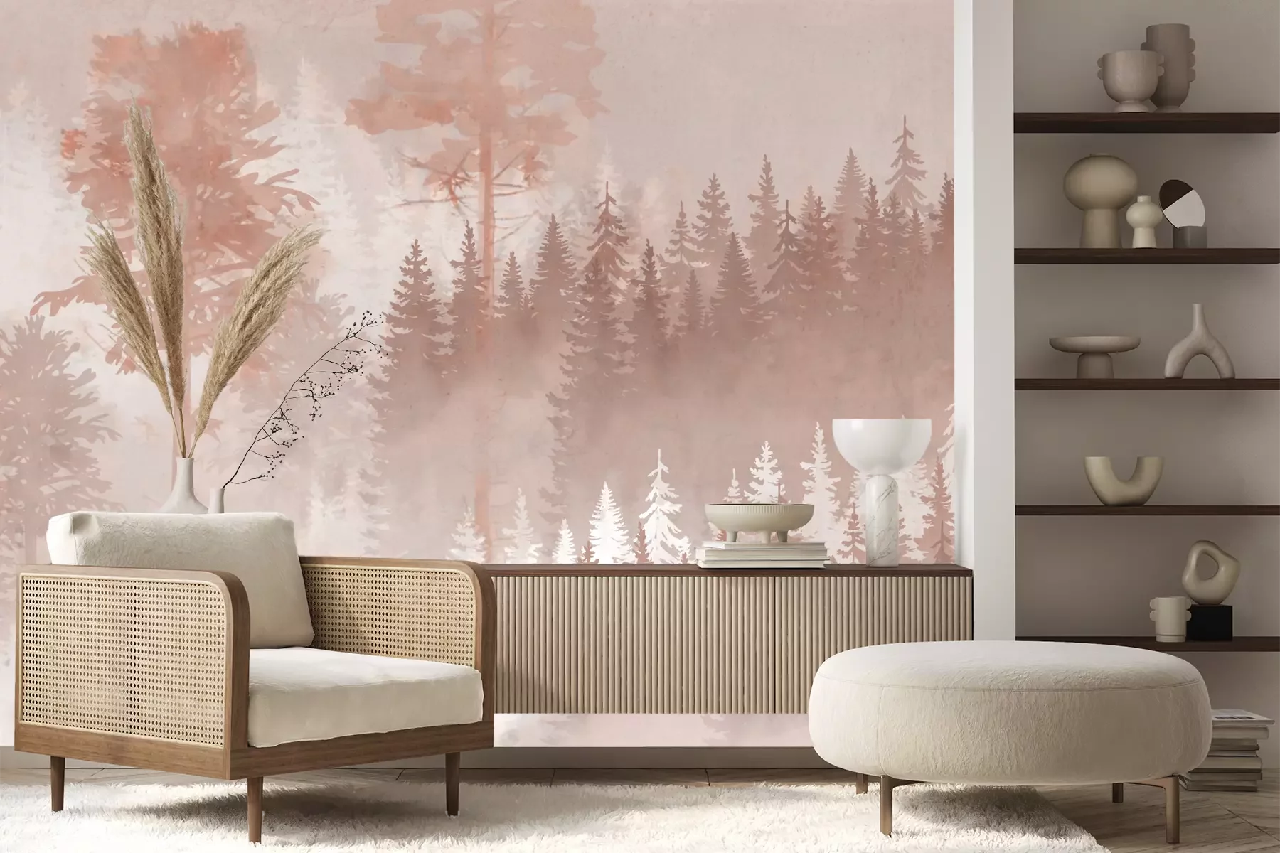 Het materiaal Premium+ is een gestructureerd vinyl op vlies met een gewicht van 255 g/m², dat kleine oneffenheden in de muur effectief camoufleert. De subtiele structuur van fijn zand geeft het oppervlak een exclusieve uitstraling, terwijl de halfmatte afwerking de diepte van de kleuren benadrukt. Het materiaal is dampdoorlatend, waardoor het ook in de keuken en badkamer kan worden gebruikt. De maximale breedte van één baan bedraagt 100 cm – bij grotere afmetingen wordt het fotobehang in meerdere gelijke banen verdeeld. De lijm wordt direct op de muur aangebracht en het behang wordt rand-aan-rand geplakt, wat zorgt voor een esthetisch resultaat zonder zichtbare naden. Het oppervlak kan gemakkelijk worden schoongemaakt door het voorzichtig af te nemen met een vochtige doek.