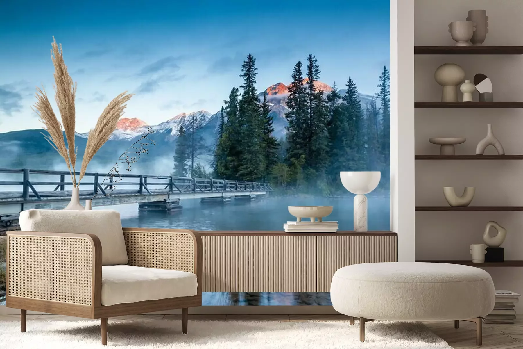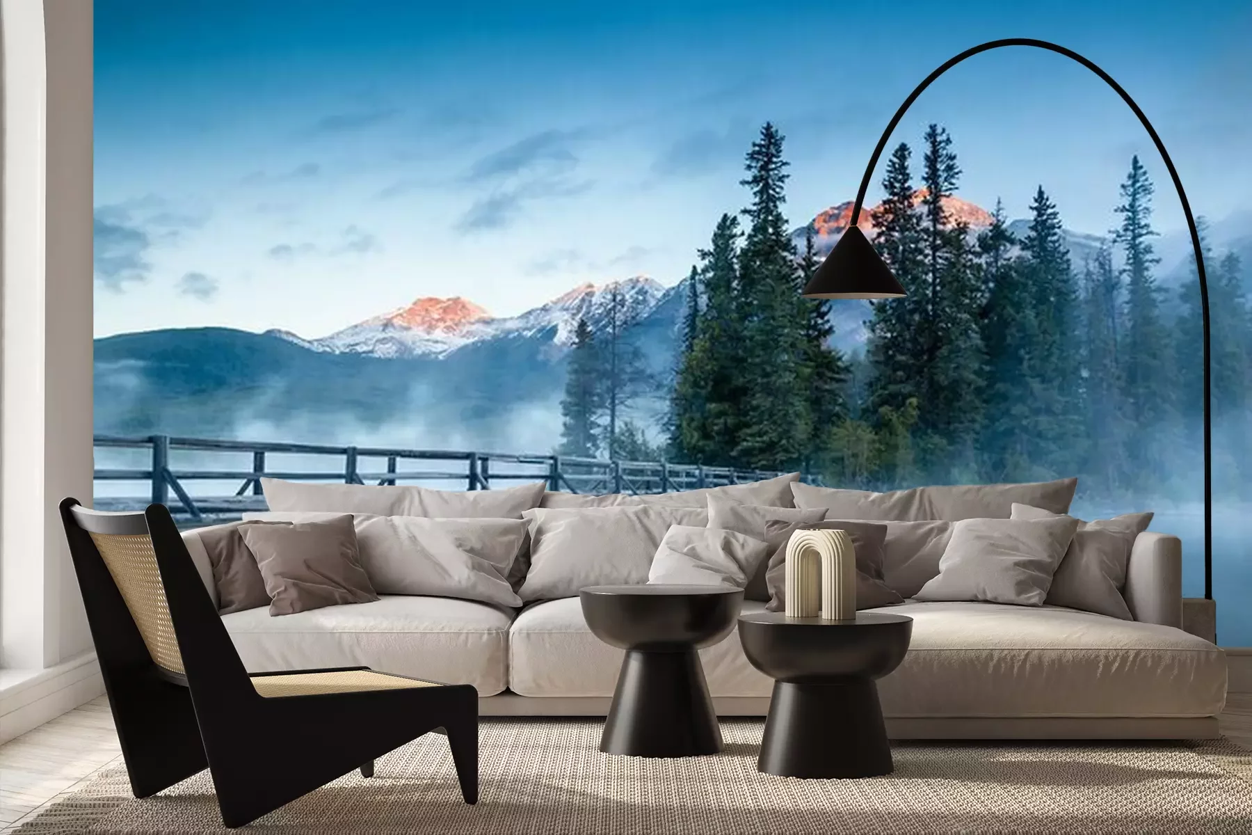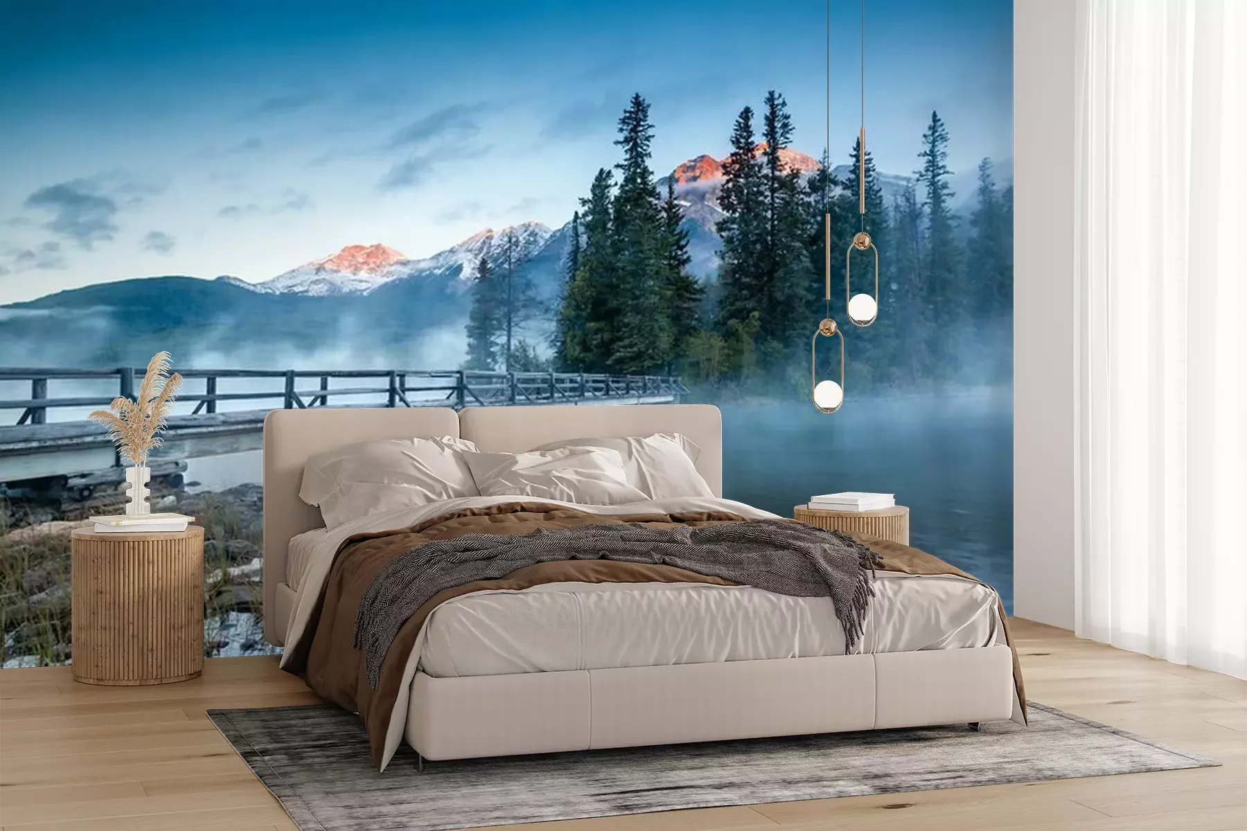 Het materiaal Premium+ is een gestructureerd vinyl op vlies met een gewicht van 255 g/m², dat kleine oneffenheden in de muur effectief camoufleert. De subtiele structuur van fijn zand geeft het oppervlak een exclusieve uitstraling, terwijl de halfmatte afwerking de diepte van de kleuren benadrukt. Het materiaal is dampdoorlatend, waardoor het ook in de keuken en badkamer kan worden gebruikt. De maximale breedte van één baan bedraagt 100 cm – bij grotere afmetingen wordt het fotobehang in meerdere gelijke banen verdeeld. De lijm wordt direct op de muur aangebracht en het behang wordt rand-aan-rand geplakt, wat zorgt voor een esthetisch resultaat zonder zichtbare naden. Het oppervlak kan gemakkelijk worden schoongemaakt door het voorzichtig af te nemen met een vochtige doek.