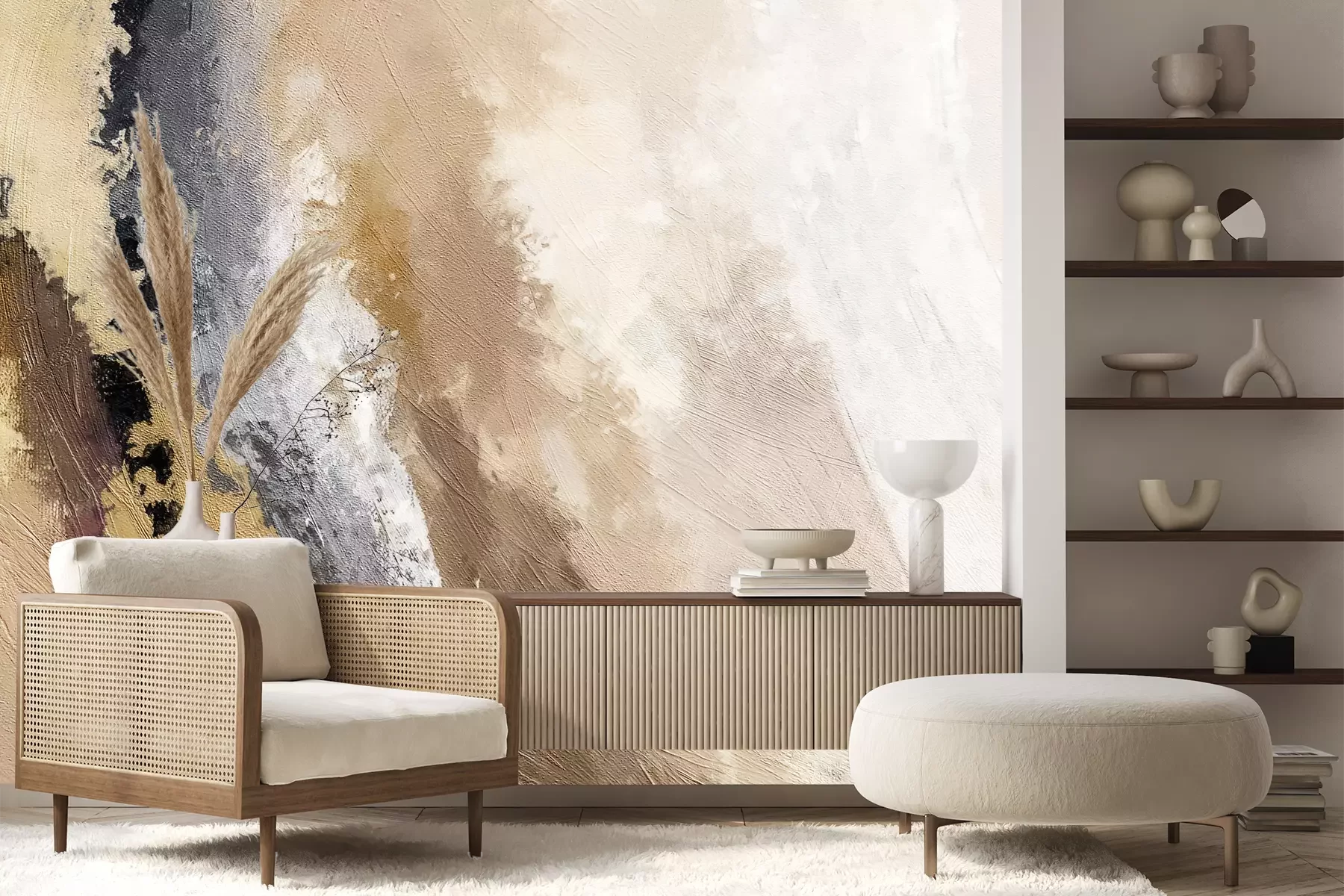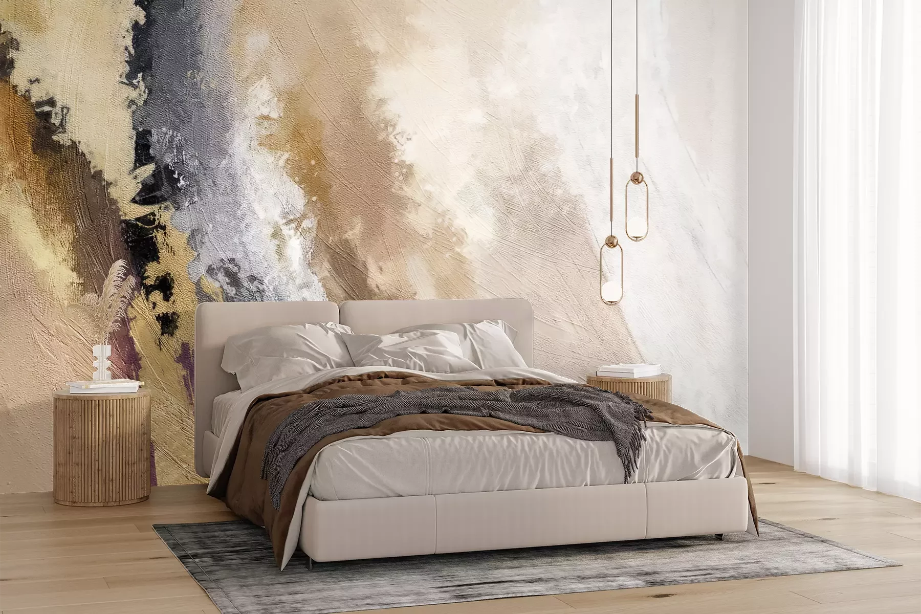 Het materiaal Premium+ is een gestructureerd vinyl op vlies met een gewicht van 255 g/m², dat kleine oneffenheden in de muur effectief camoufleert. De subtiele structuur van fijn zand geeft het oppervlak een exclusieve uitstraling, terwijl de halfmatte afwerking de diepte van de kleuren benadrukt. Het materiaal is dampdoorlatend, waardoor het ook in de keuken en badkamer kan worden gebruikt. De maximale breedte van één baan bedraagt 100 cm – bij grotere afmetingen wordt het fotobehang in meerdere gelijke banen verdeeld. De lijm wordt direct op de muur aangebracht en het behang wordt rand-aan-rand geplakt, wat zorgt voor een esthetisch resultaat zonder zichtbare naden. Het oppervlak kan gemakkelijk worden schoongemaakt door het voorzichtig af te nemen met een vochtige doek.