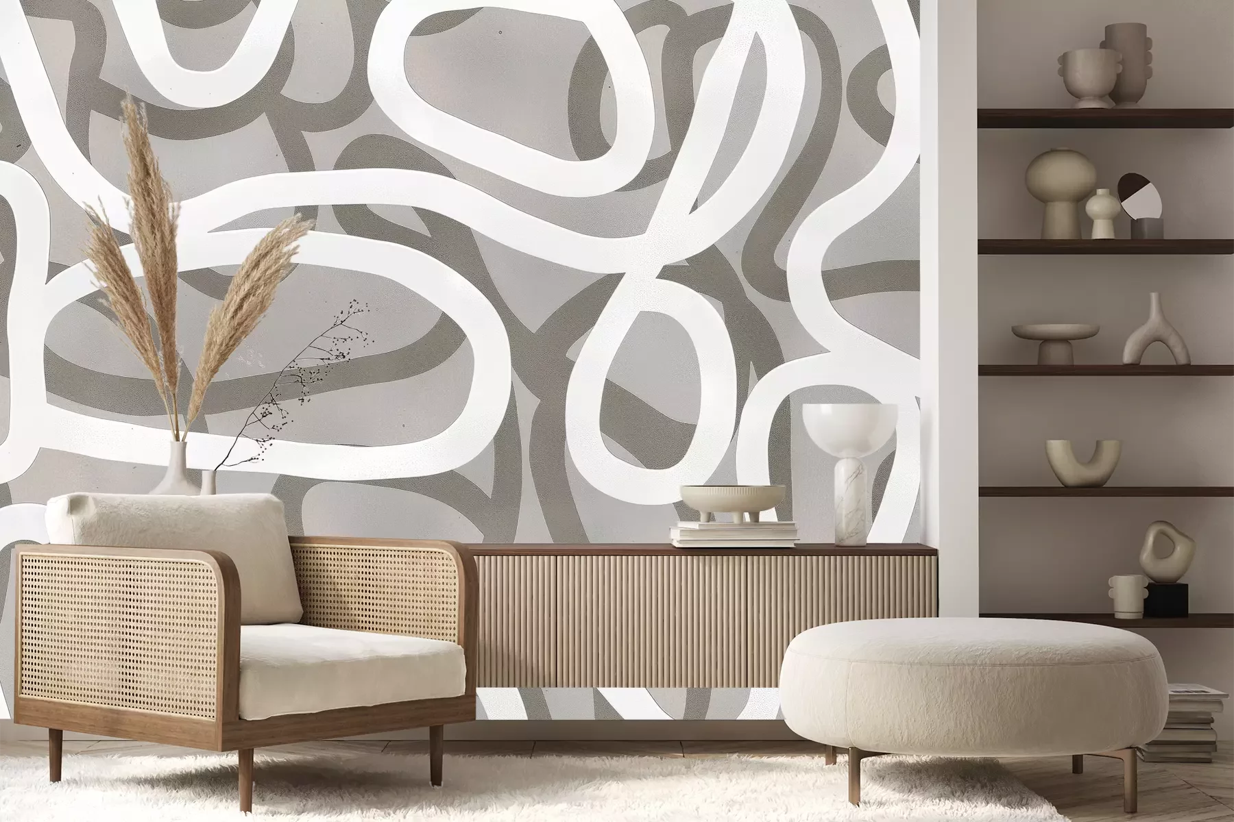 Het materiaal Premium+ is een gestructureerd vinyl op vlies met een gewicht van 255 g/m², dat kleine oneffenheden in de muur effectief camoufleert. De subtiele structuur van fijn zand geeft het oppervlak een exclusieve uitstraling, terwijl de halfmatte afwerking de diepte van de kleuren benadrukt. Het materiaal is dampdoorlatend, waardoor het ook in de keuken en badkamer kan worden gebruikt. De maximale breedte van één baan bedraagt 100 cm – bij grotere afmetingen wordt het fotobehang in meerdere gelijke banen verdeeld. De lijm wordt direct op de muur aangebracht en het behang wordt rand-aan-rand geplakt, wat zorgt voor een esthetisch resultaat zonder zichtbare naden. Het oppervlak kan gemakkelijk worden schoongemaakt door het voorzichtig af te nemen met een vochtige doek.