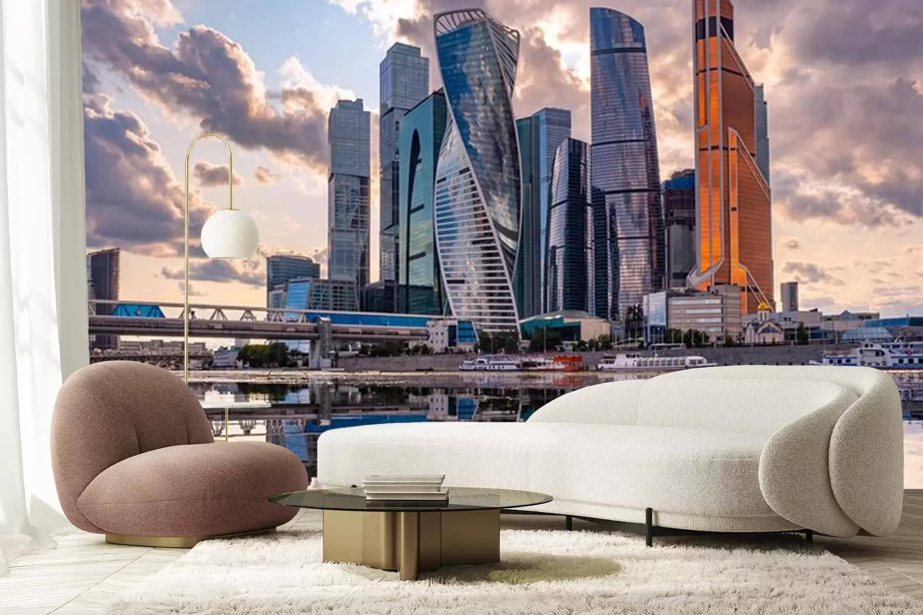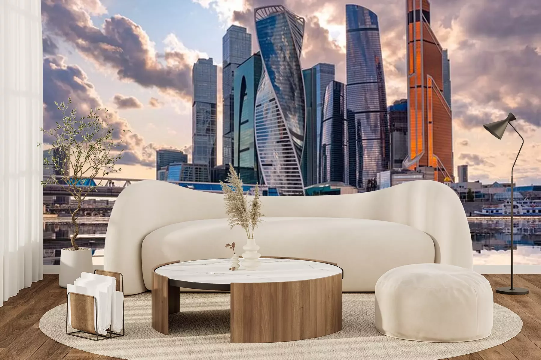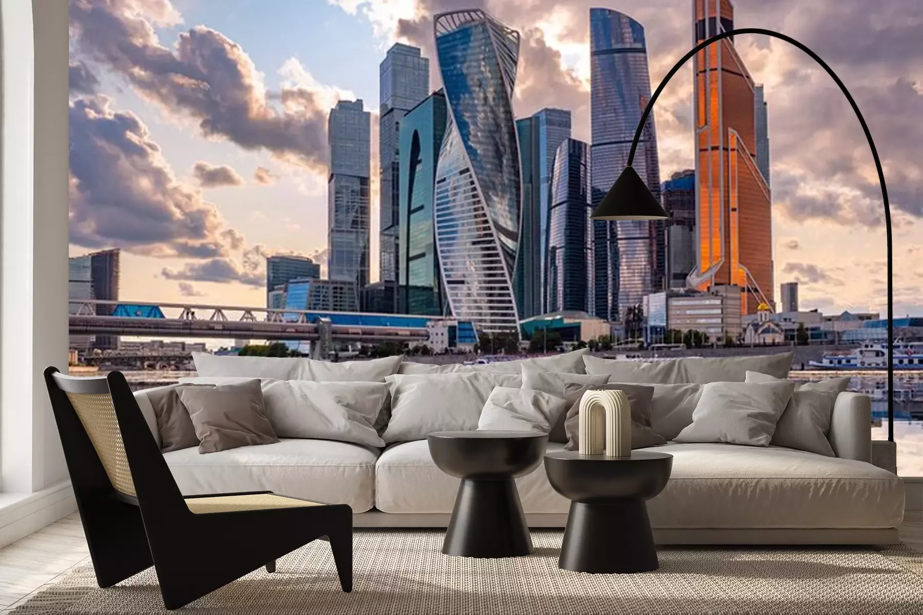 Fotobehang Moderne wolkenkrabbers in Moskou