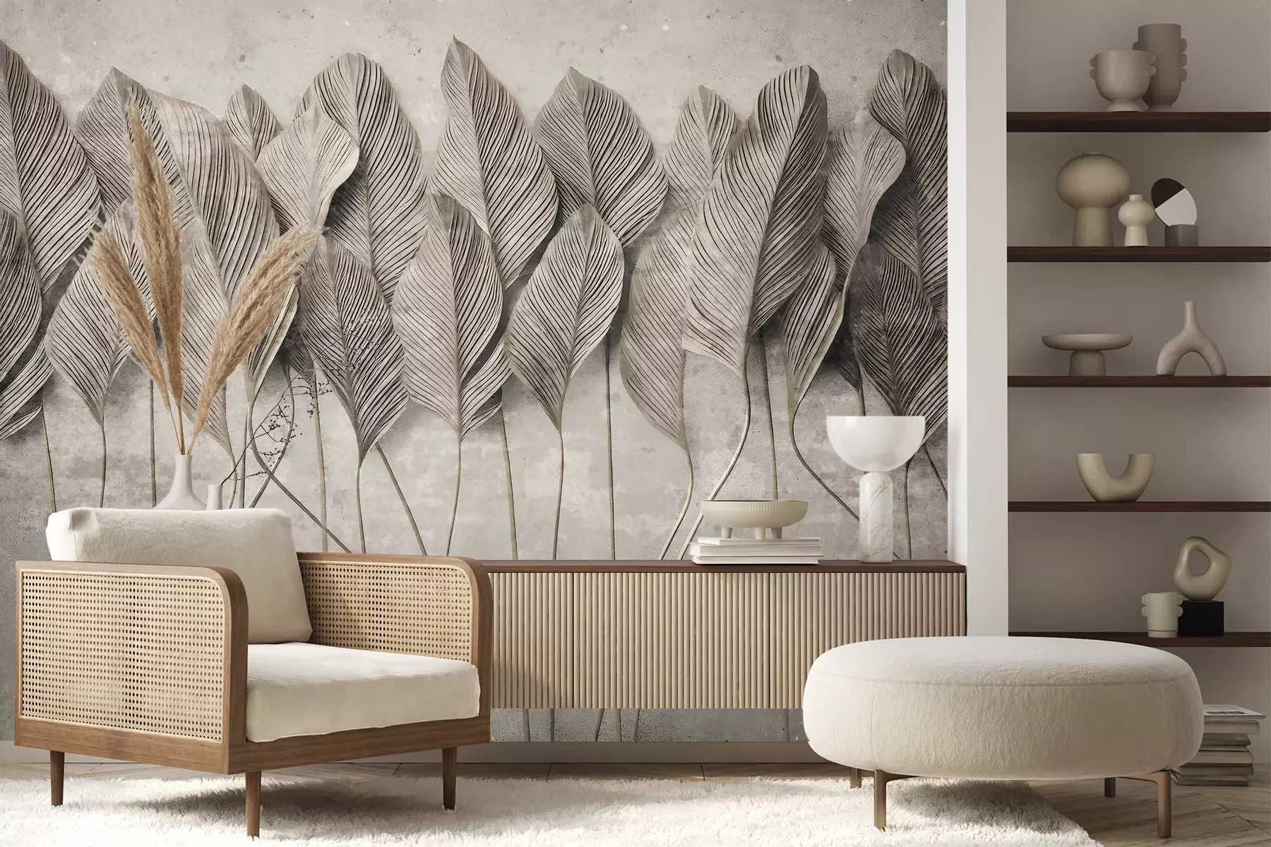 Het materiaal Premium+ is een gestructureerd vinyl op vlies met een gewicht van 255 g/m², dat kleine oneffenheden in de muur effectief camoufleert. De subtiele structuur van fijn zand geeft het oppervlak een exclusieve uitstraling, terwijl de halfmatte afwerking de diepte van de kleuren benadrukt. Het materiaal is dampdoorlatend, waardoor het ook in de keuken en badkamer kan worden gebruikt. De maximale breedte van één baan bedraagt 100 cm – bij grotere afmetingen wordt het fotobehang in meerdere gelijke banen verdeeld. De lijm wordt direct op de muur aangebracht en het behang wordt rand-aan-rand geplakt, wat zorgt voor een esthetisch resultaat zonder zichtbare naden. Het oppervlak kan gemakkelijk worden schoongemaakt door het voorzichtig af te nemen met een vochtige doek.