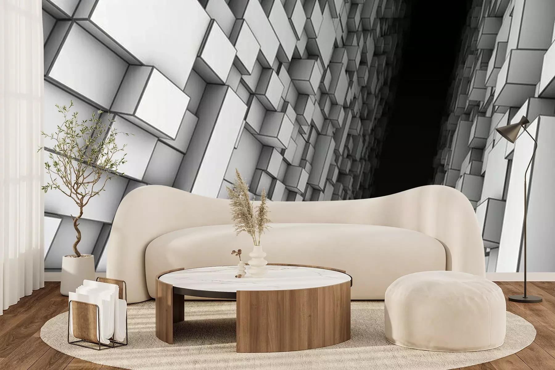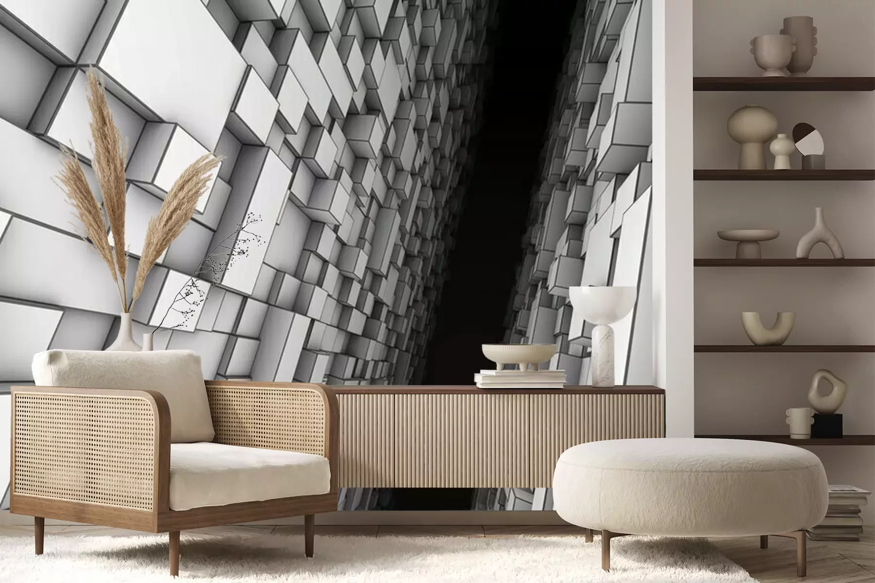 3D vierkante tunnelFotobehang