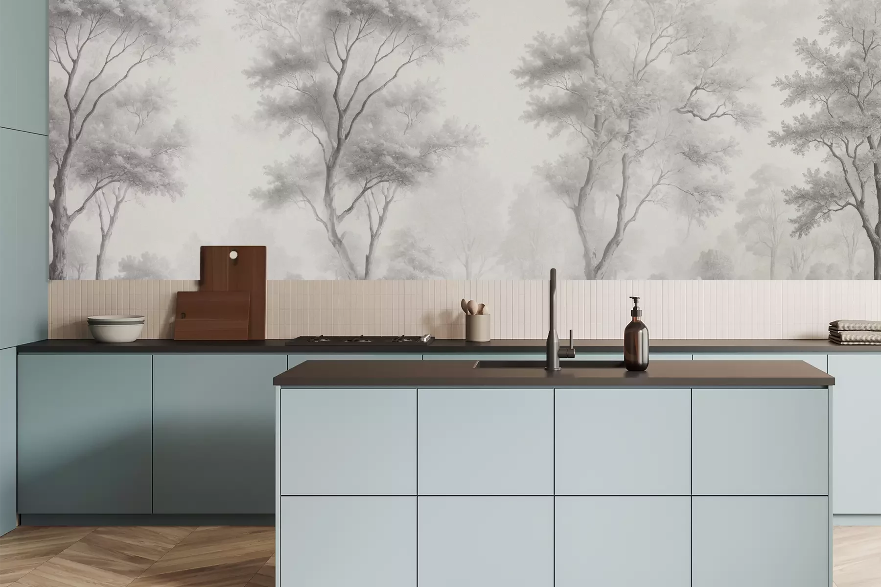 Het materiaal Premium is een glad vinyl op vlies, dat bestand is tegen uitrekken en vervorming. Het is dampdoorlatend – de muren kunnen vrij ademen – waardoor het geschikt is voor gebruik in de keuken en badkamer. Bij vervuiling kan het materiaal worden afgenomen met een vochtige doek. De maximale breedte van één baan bedraagt 95 of 105 cm, afhankelijk van de beschikbaarheid. Montage vindt plaats met de rand-aan-rand methode, wat een esthetisch resultaat zonder zichtbare naden oplevert. Omdat de lijm rechtstreeks op de muur wordt aangebracht, verloopt de installatie van het fotobehang snel en eenvoudig.