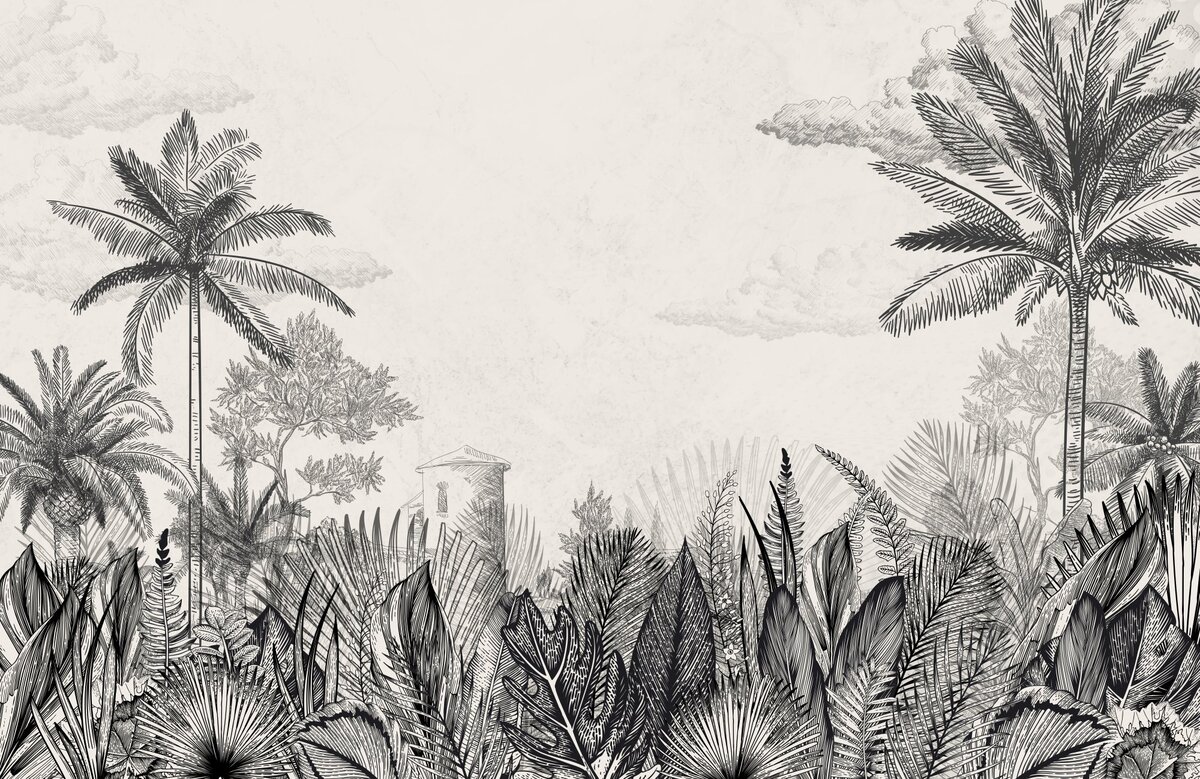 Fotobehang: Monochroom landschap natuur laat vlekken achter