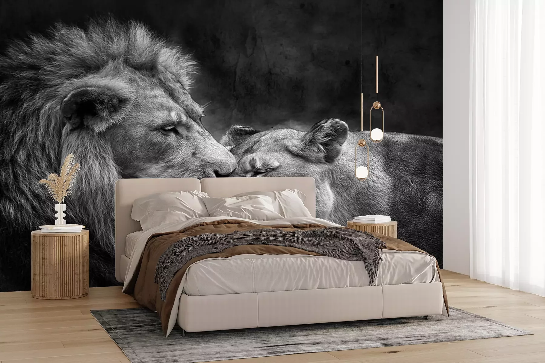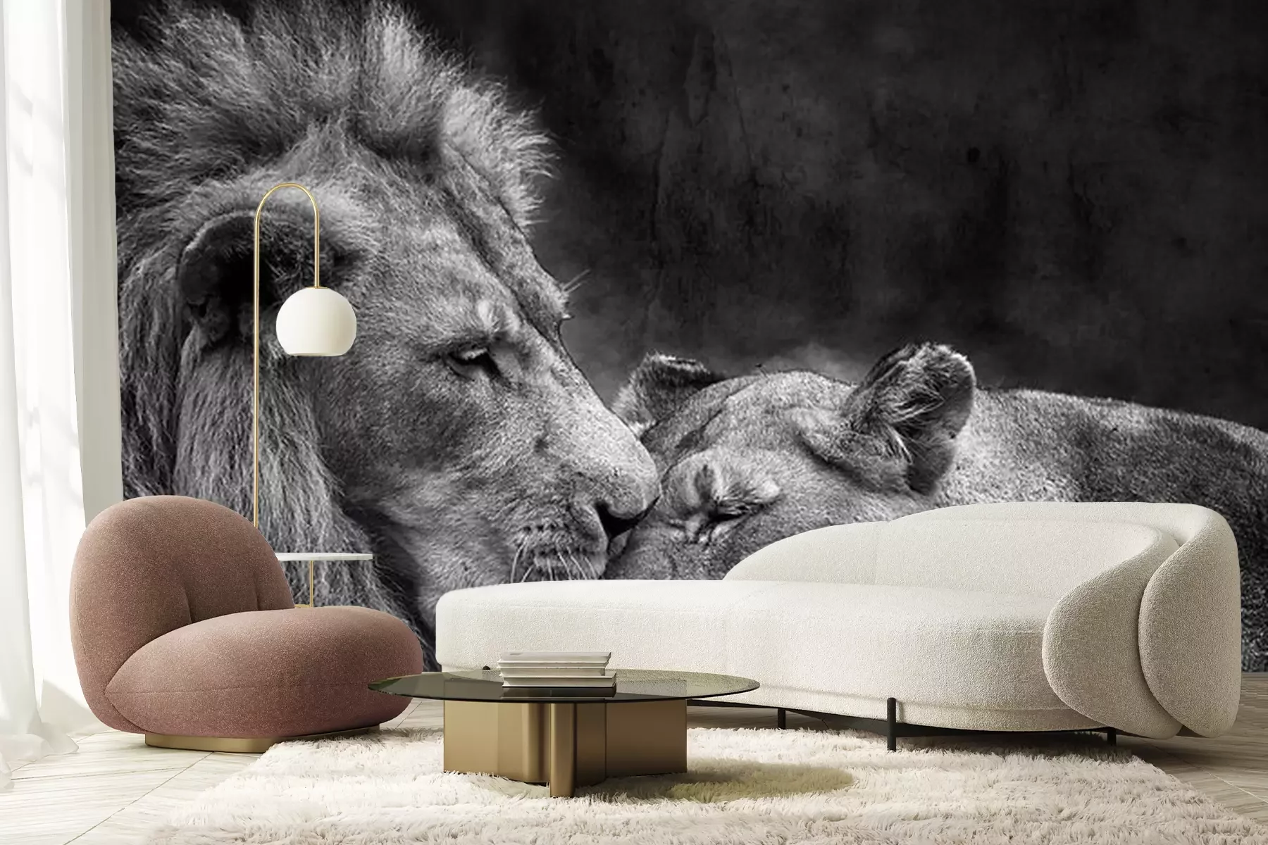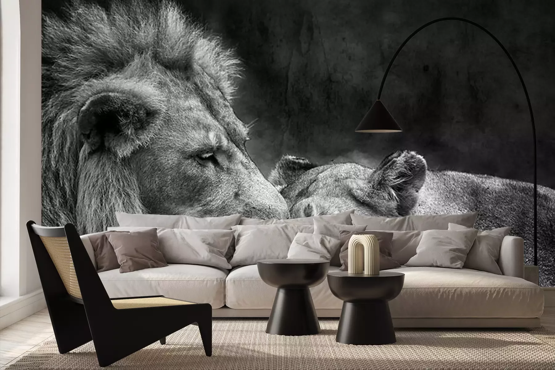 Fotobehang Monochroom portret van verliefde wilde katten