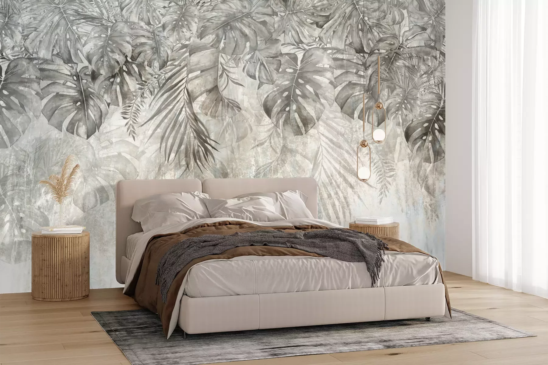 Het materiaal Premium+ is een gestructureerd vinyl op vlies met een gewicht van 255 g/m², dat kleine oneffenheden in de muur effectief camoufleert. De subtiele structuur van fijn zand geeft het oppervlak een exclusieve uitstraling, terwijl de halfmatte afwerking de diepte van de kleuren benadrukt. Het materiaal is dampdoorlatend, waardoor het ook in de keuken en badkamer kan worden gebruikt. De maximale breedte van één baan bedraagt 100 cm – bij grotere afmetingen wordt het fotobehang in meerdere gelijke banen verdeeld. De lijm wordt direct op de muur aangebracht en het behang wordt rand-aan-rand geplakt, wat zorgt voor een esthetisch resultaat zonder zichtbare naden. Het oppervlak kan gemakkelijk worden schoongemaakt door het voorzichtig af te nemen met een vochtige doek.