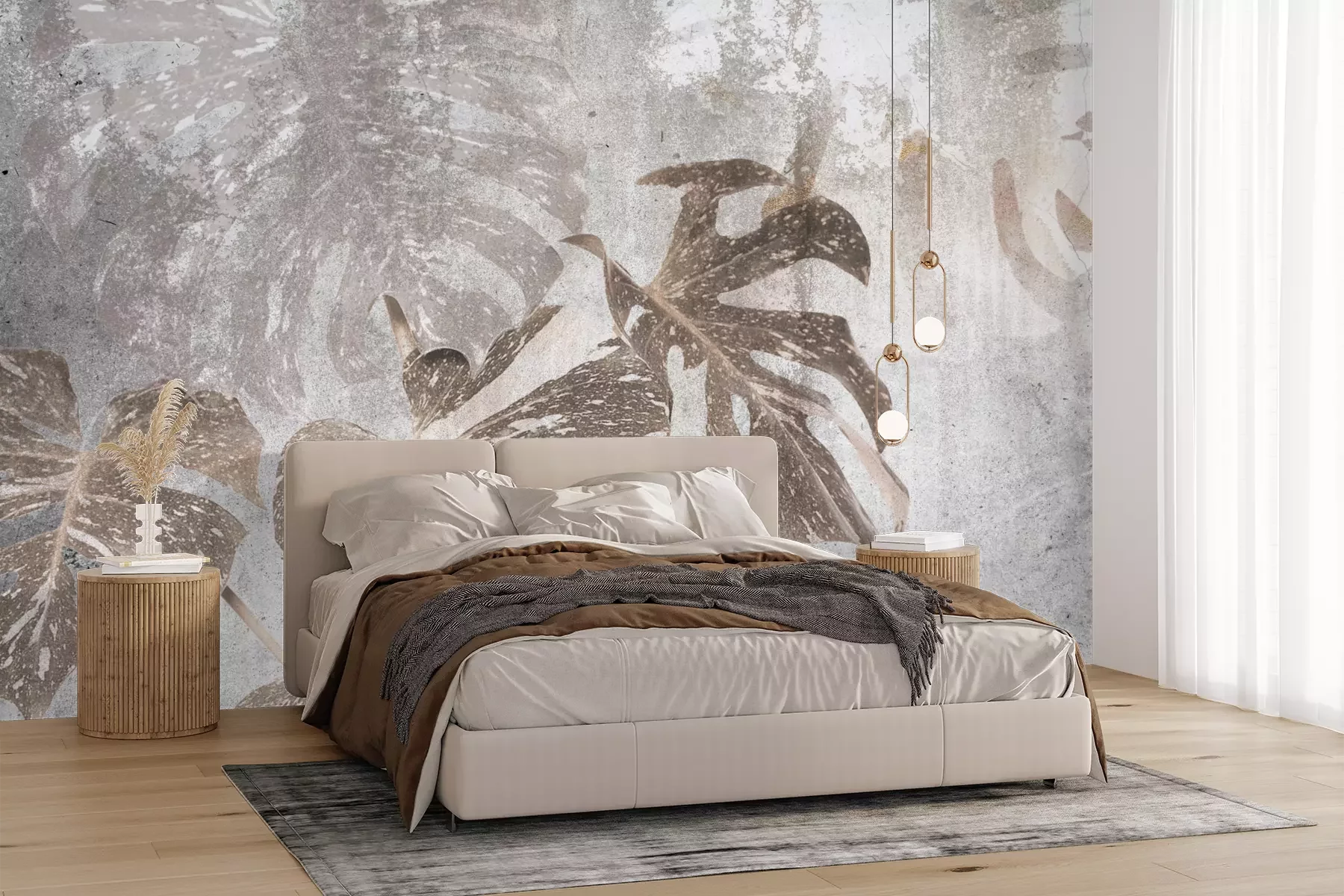 Het materiaal Premium+ is een gestructureerd vinyl op vlies met een gewicht van 255 g/m², dat kleine oneffenheden in de muur effectief camoufleert. De subtiele structuur van fijn zand geeft het oppervlak een exclusieve uitstraling, terwijl de halfmatte afwerking de diepte van de kleuren benadrukt. Het materiaal is dampdoorlatend, waardoor het ook in de keuken en badkamer kan worden gebruikt. De maximale breedte van één baan bedraagt 100 cm – bij grotere afmetingen wordt het fotobehang in meerdere gelijke banen verdeeld. De lijm wordt direct op de muur aangebracht en het behang wordt rand-aan-rand geplakt, wat zorgt voor een esthetisch resultaat zonder zichtbare naden. Het oppervlak kan gemakkelijk worden schoongemaakt door het voorzichtig af te nemen met een vochtige doek.