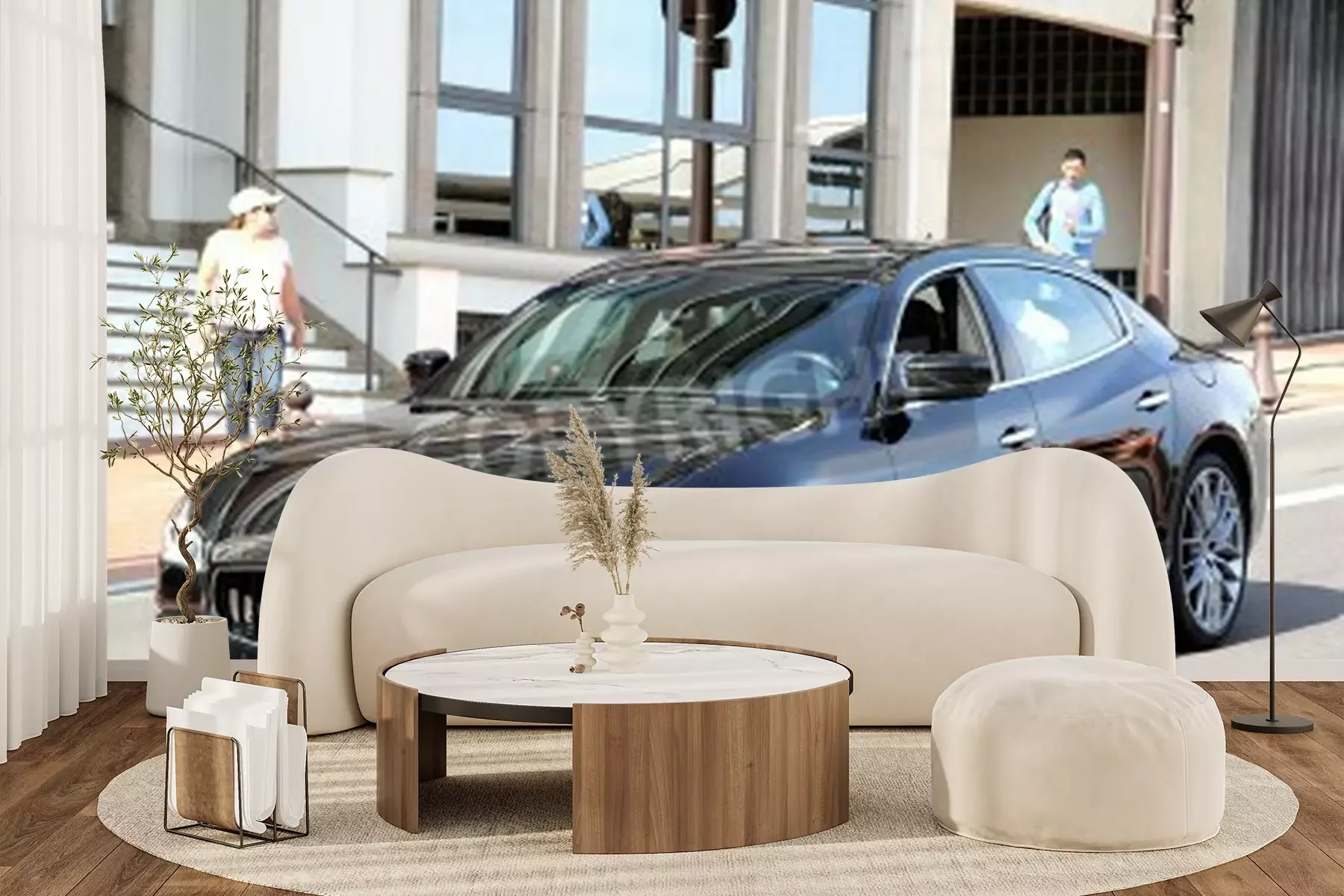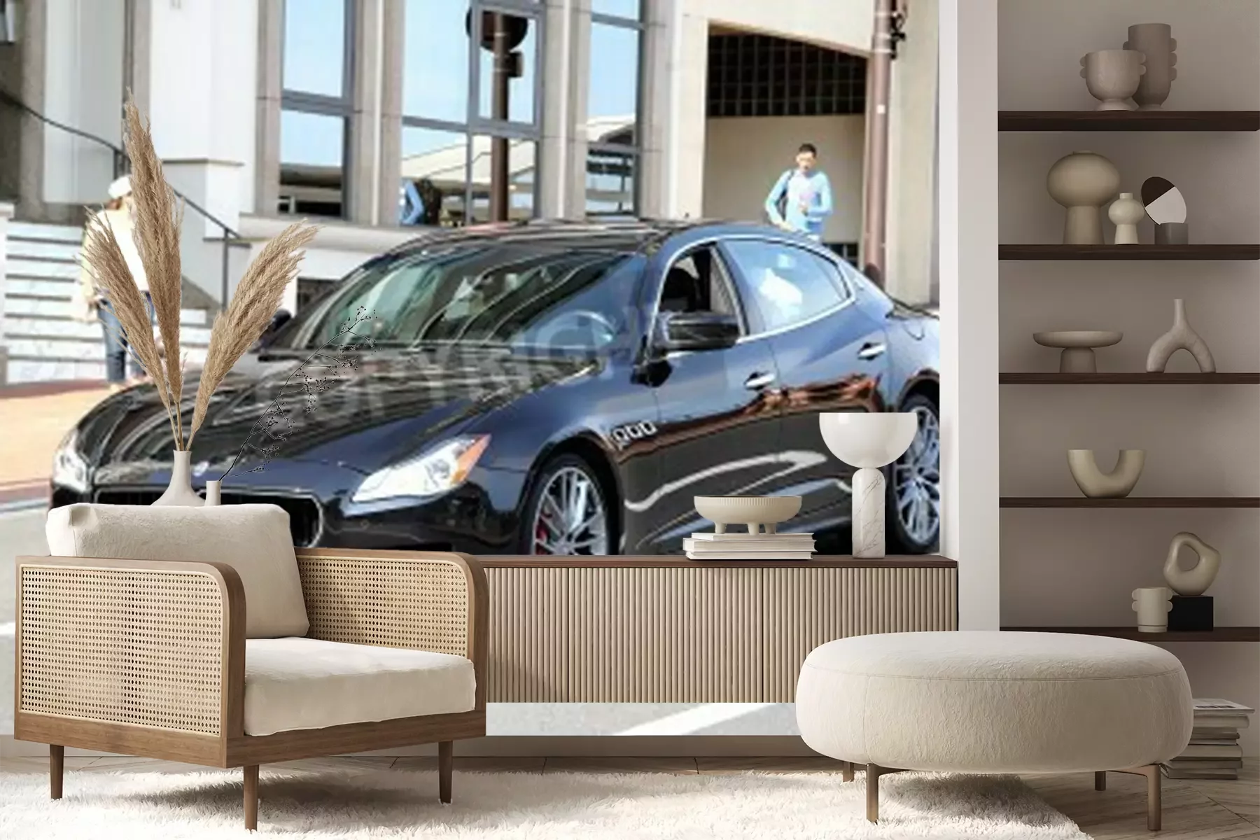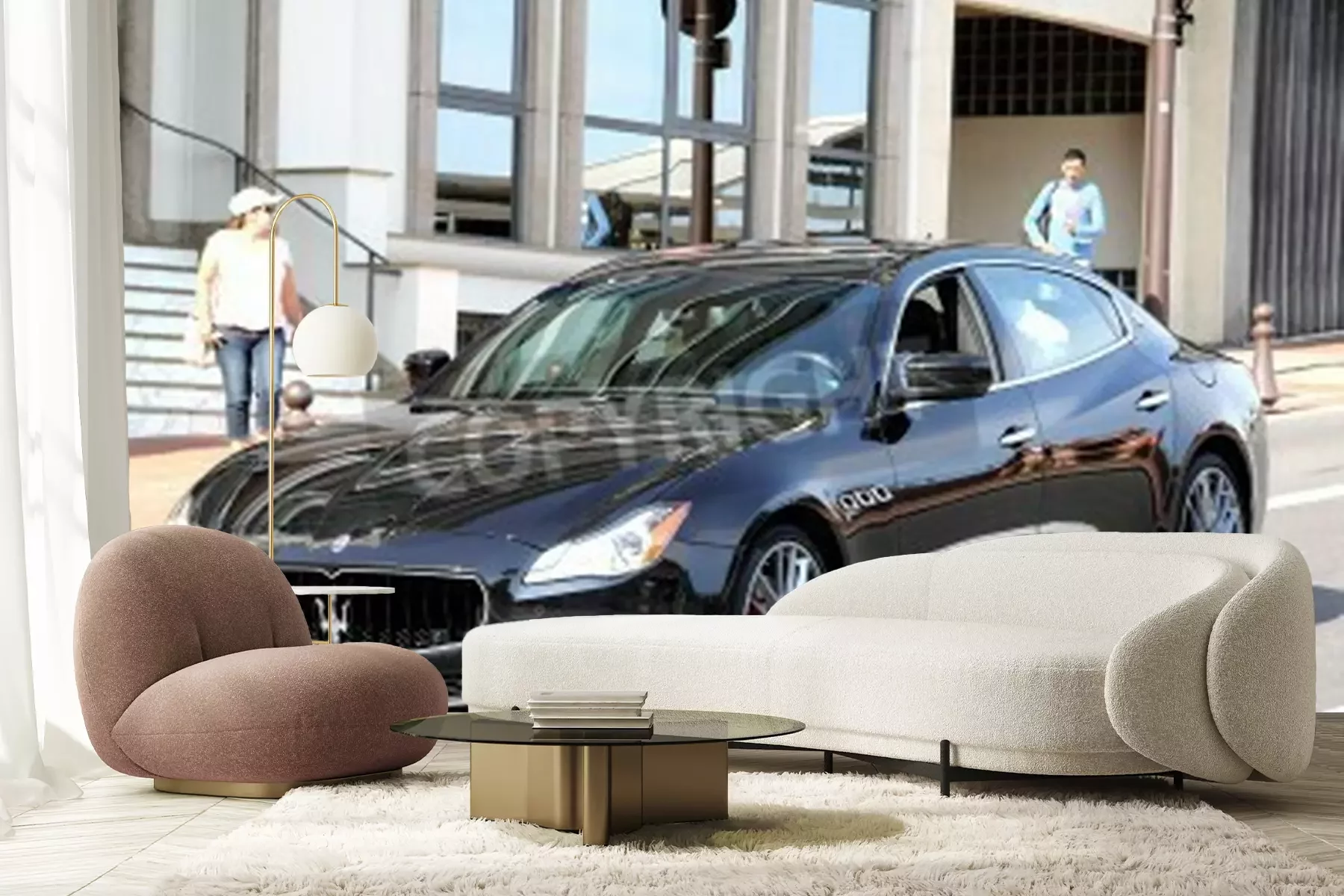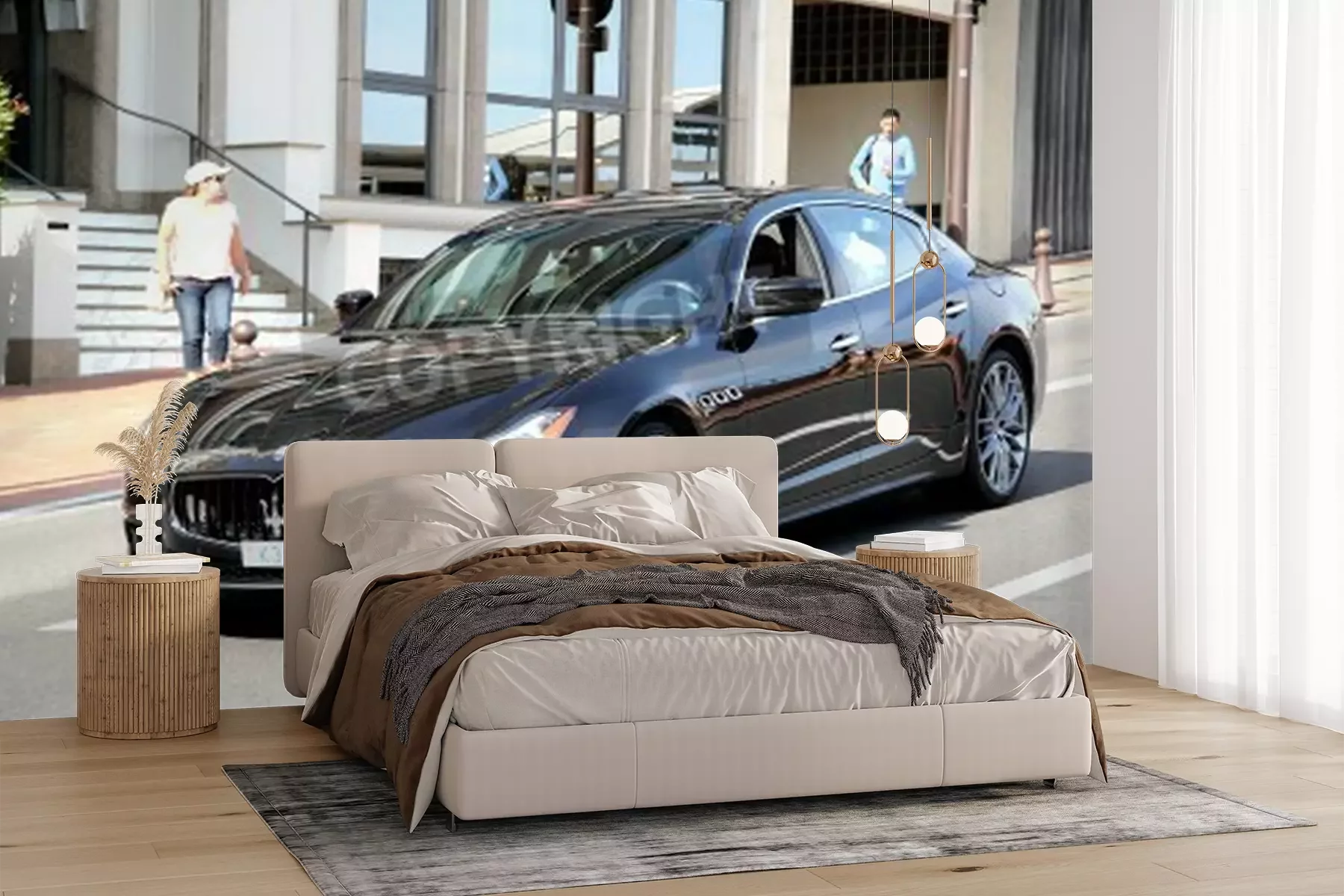 Fotobehang MONTE CARLO, Monaco - 2 augustus 2014: Black luxe sedan Maserati Quattroporte in de stad straat.