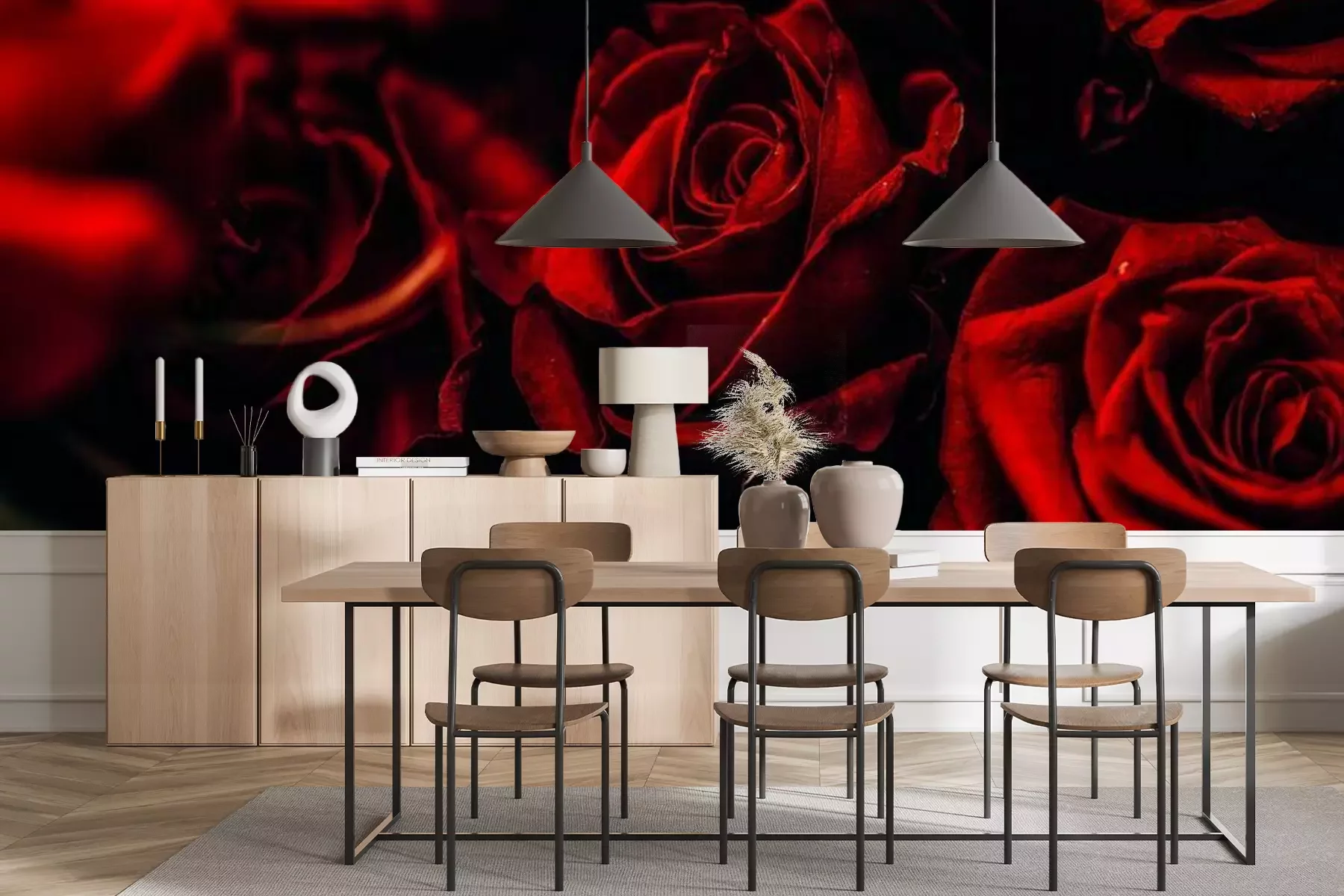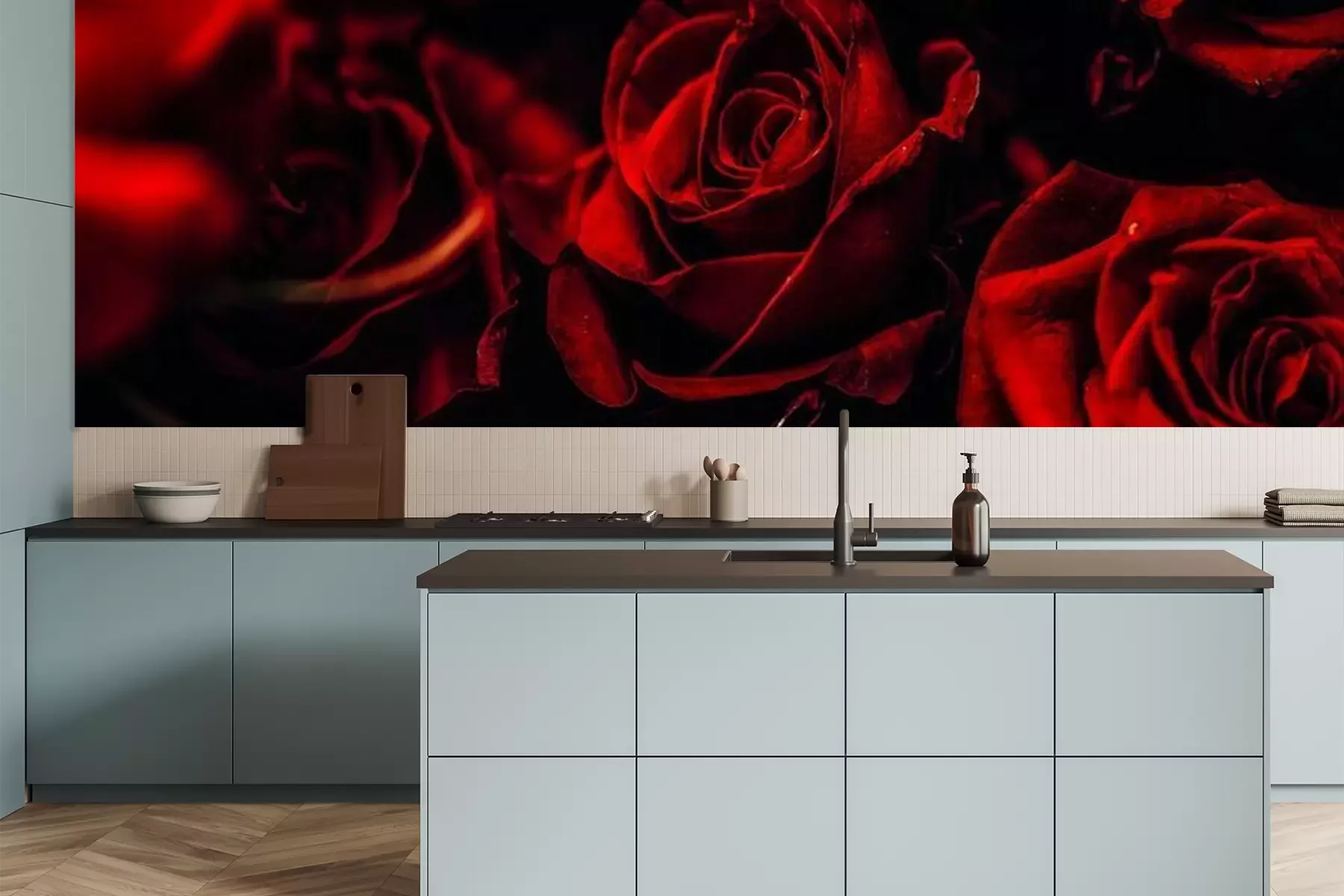 Fotobehang Mooie rode rozen op een zwarte achtergrond