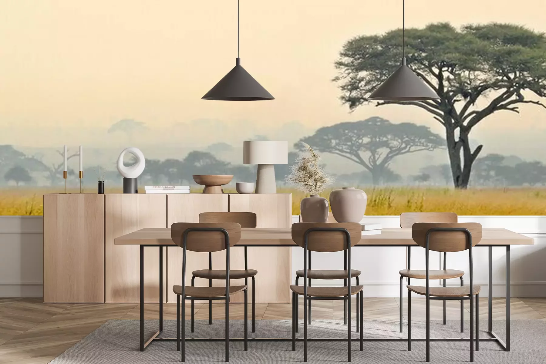 Het materiaal Standard is een hoogwaardig latexmateriaal met een glad, mat oppervlak. Dankzij de HP Latex-printtechnologie zijn de kleuren intens, duurzaam en UV-bestendig, waardoor het patroon jarenlang een onberispelijke uitstraling behoudt. Vervuilde oppervlakken kunnen voorzichtig worden afgeveegd met een droge doek. De maximale breedte van één baan bedraagt 95 cm of 105 cm – afhankelijk van de bestelde fotobehangbreedte. Bij grotere afmetingen wordt het patroon verdeeld over meerdere gelijkmatige banen. Het fotobehang wordt rand-aan-randaangebracht, wat vrijwel onzichtbare naden mogelijk maakt.