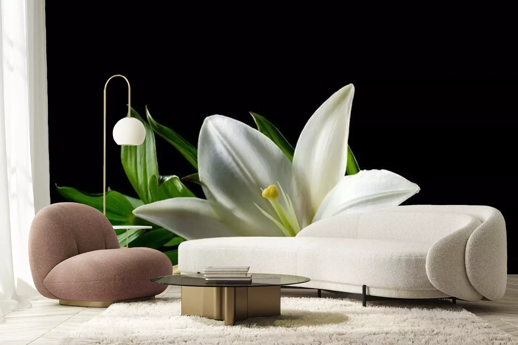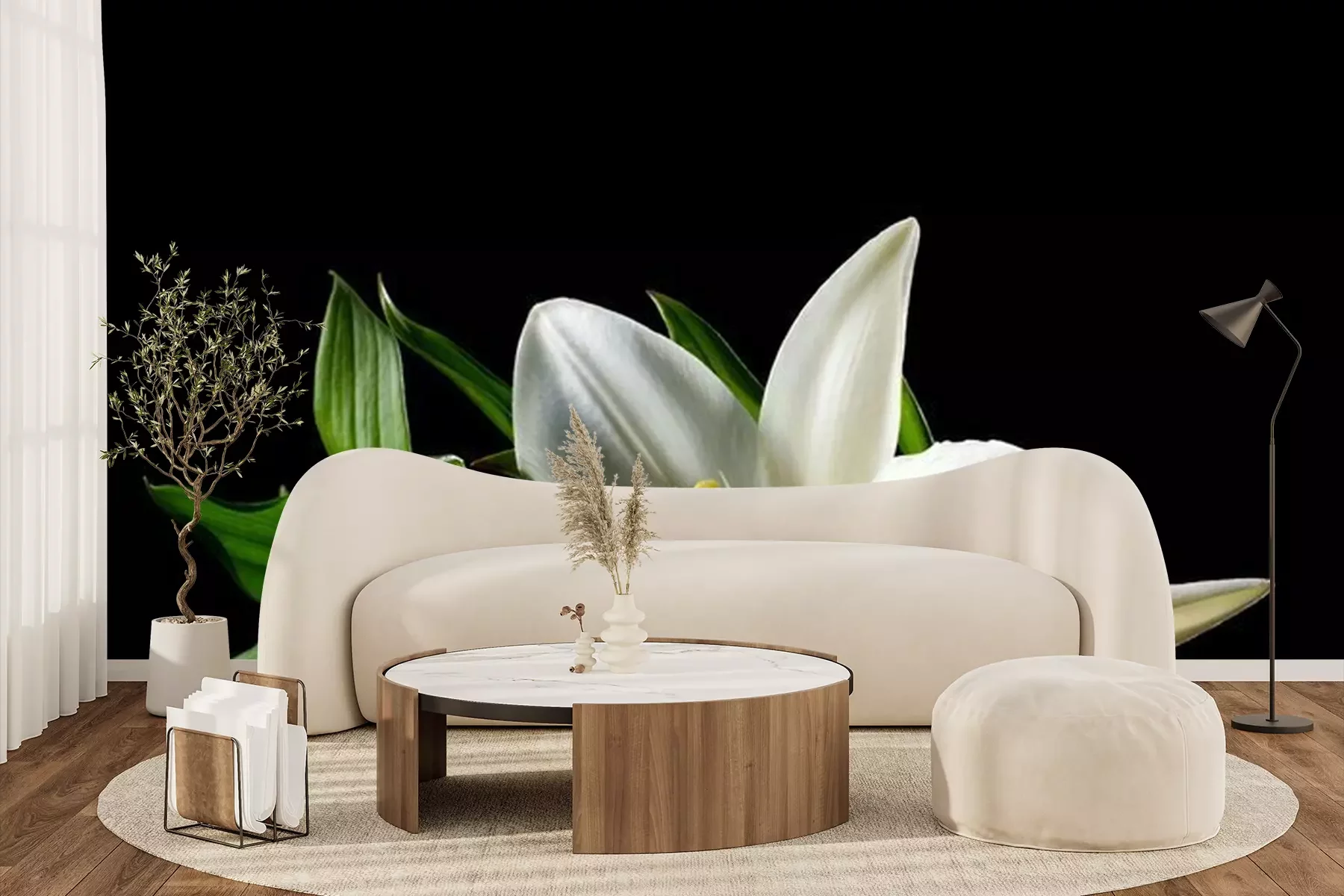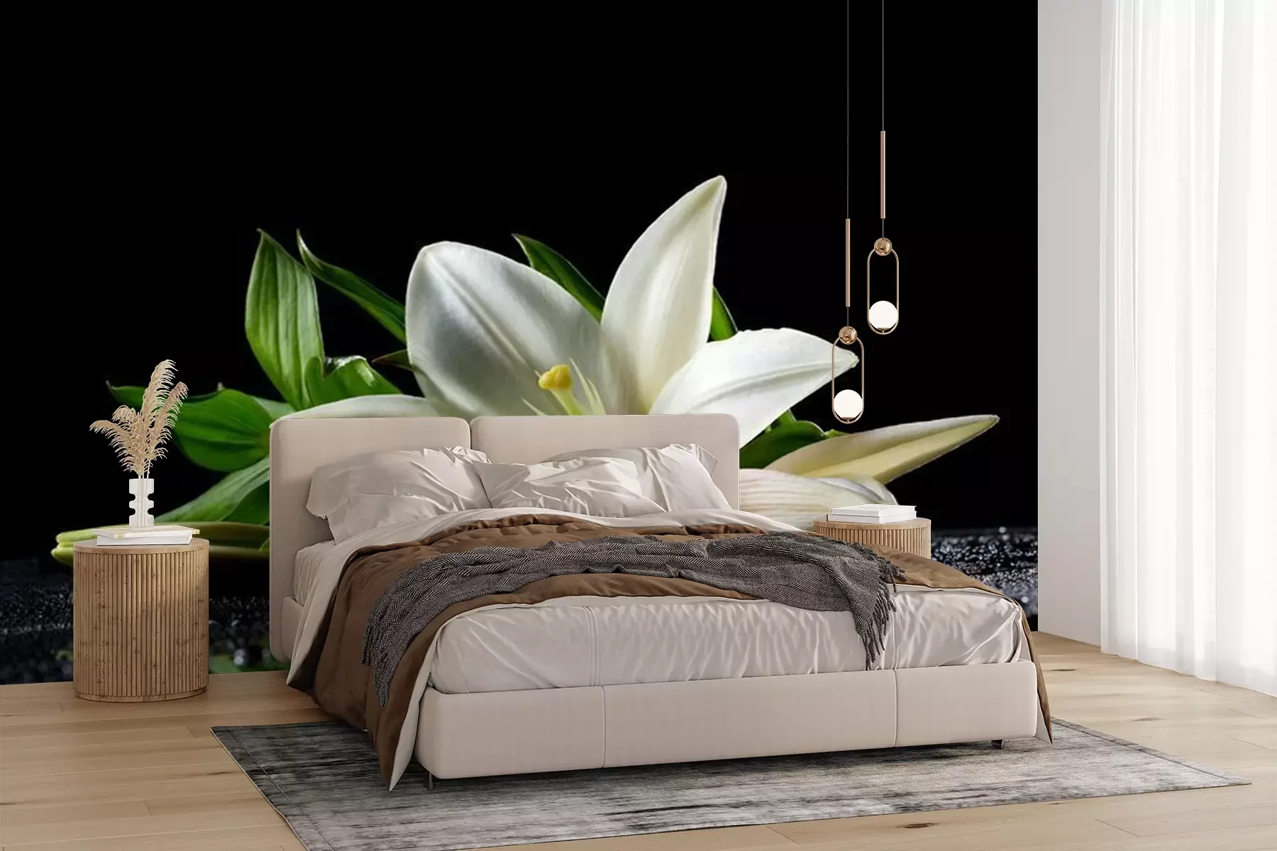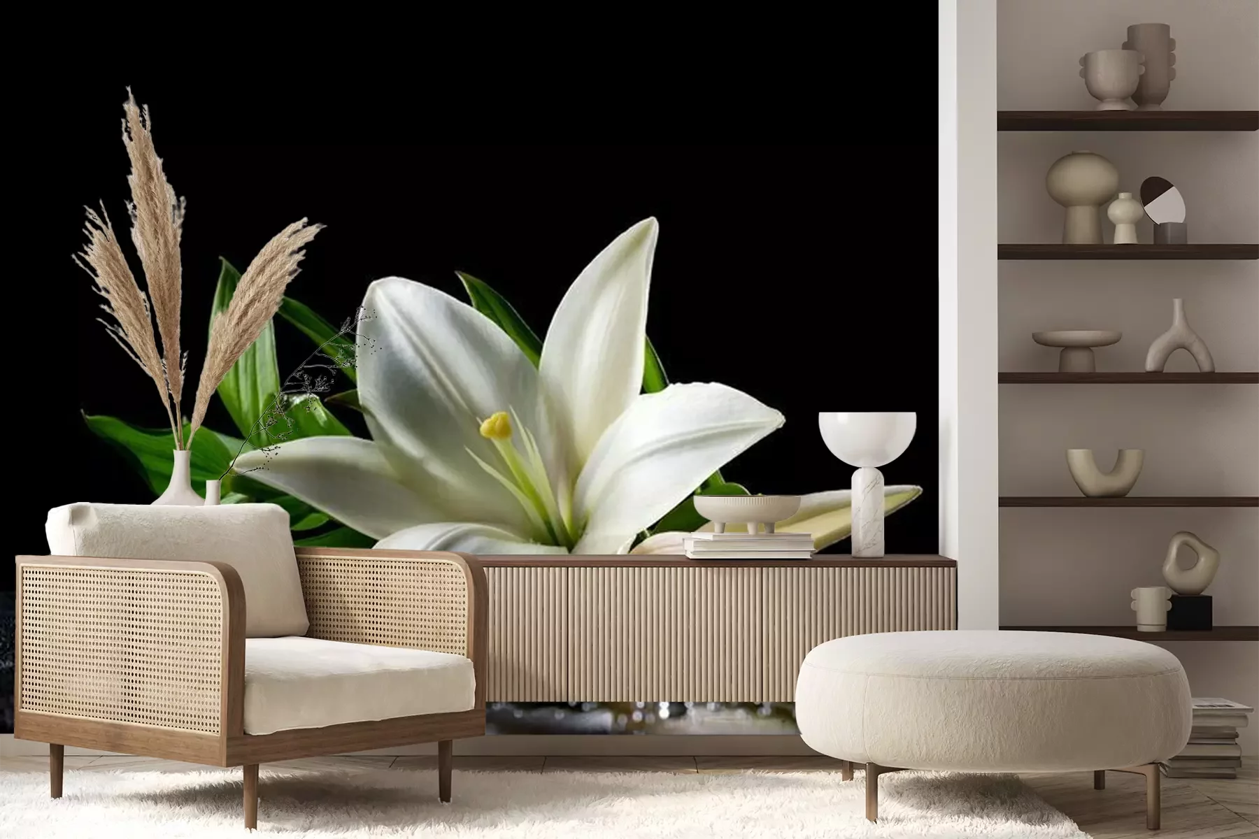 Fotobehang Mooie witte lelie op een zwarte achtergrond
