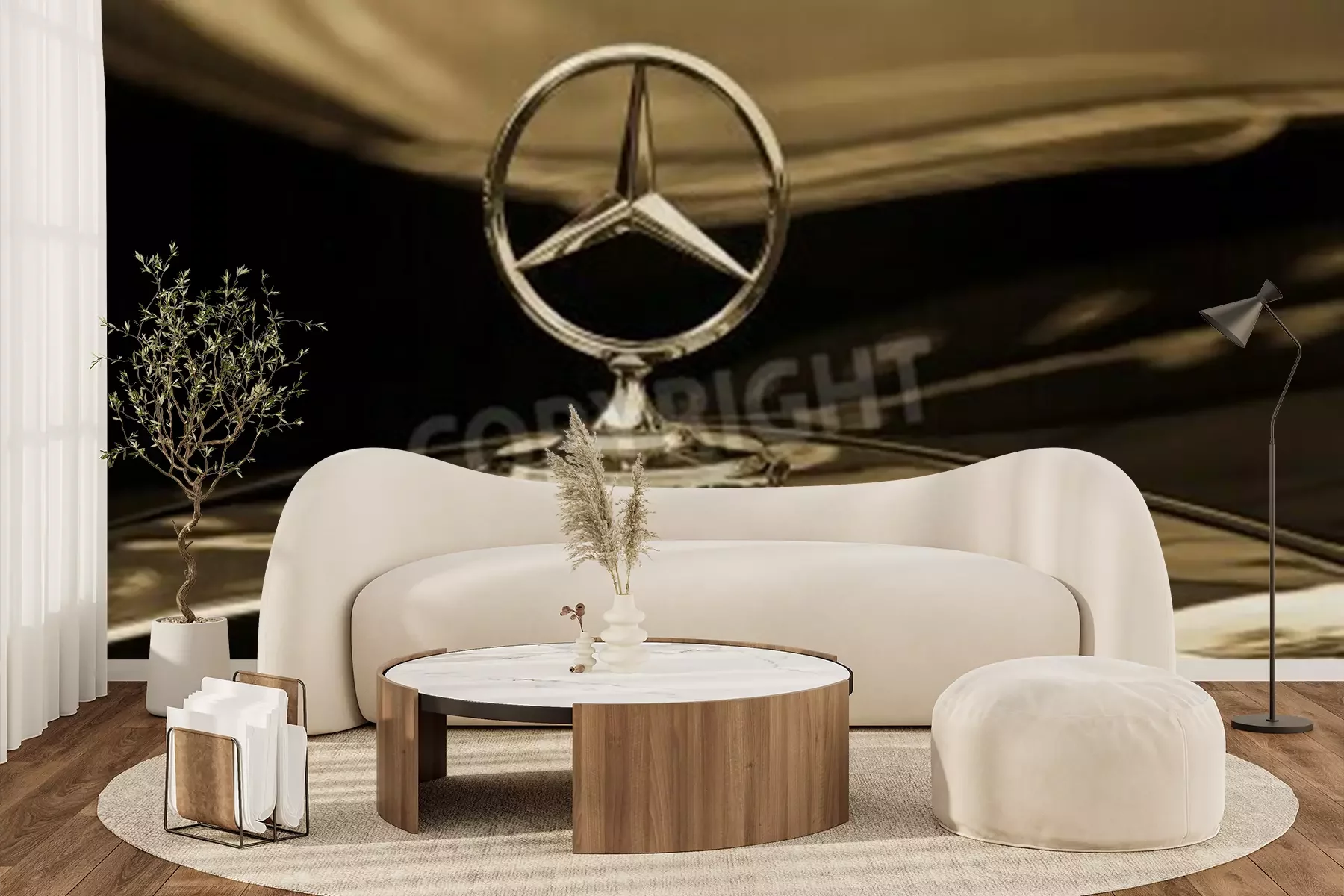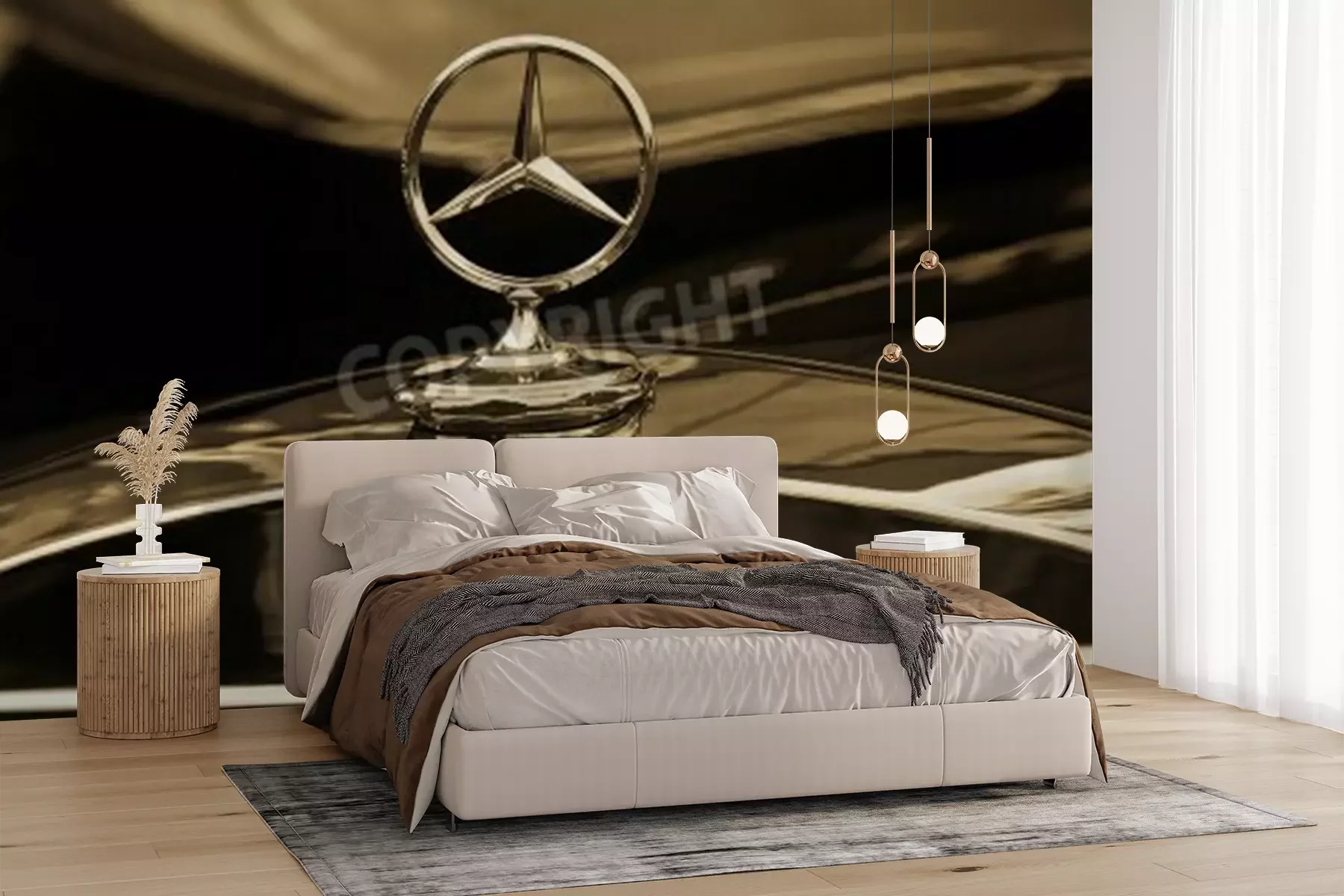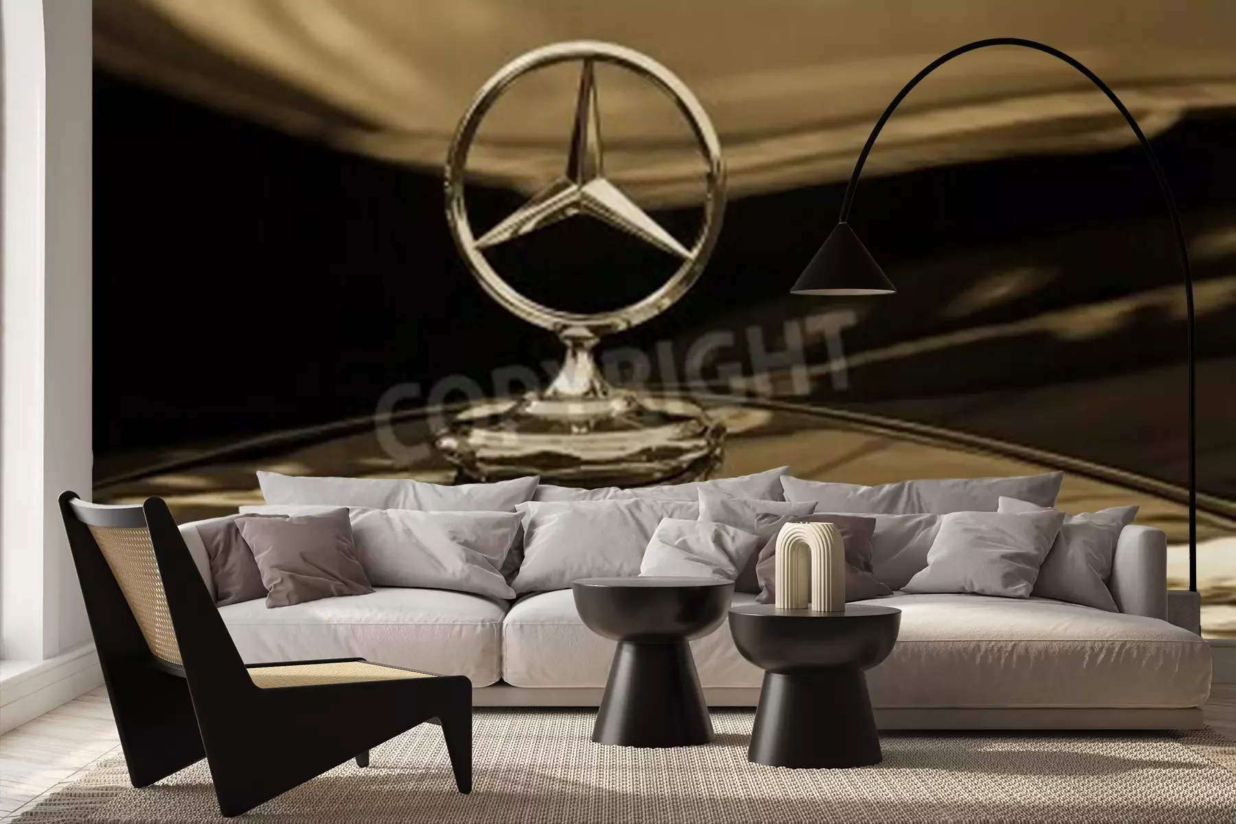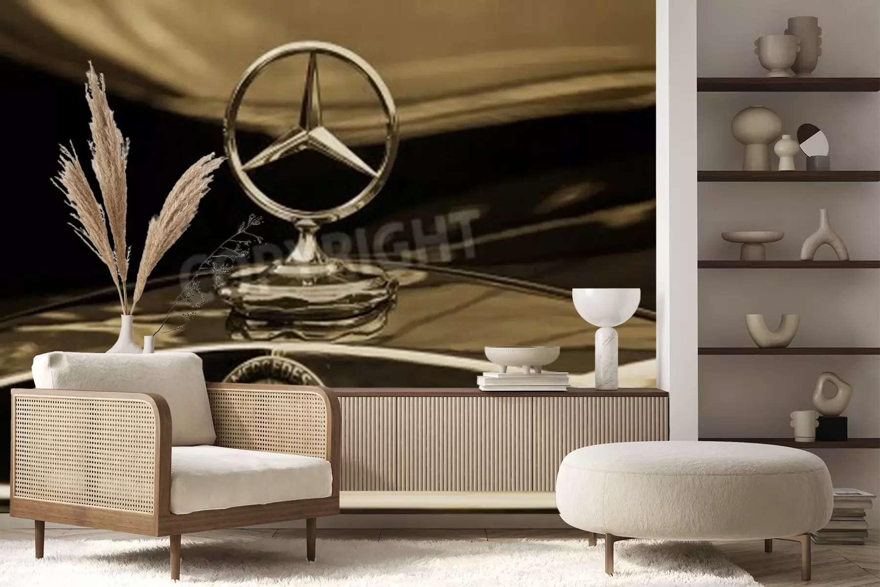 Fotobehang MOSKOU - 15 mei: Mercedes-Benz emblem logo sepia op tentoonstelling in  «Mercedes-Benz Classic Day-2010», enorme oldtimer rally, Moskou, Rusland, op 15 mei 2010