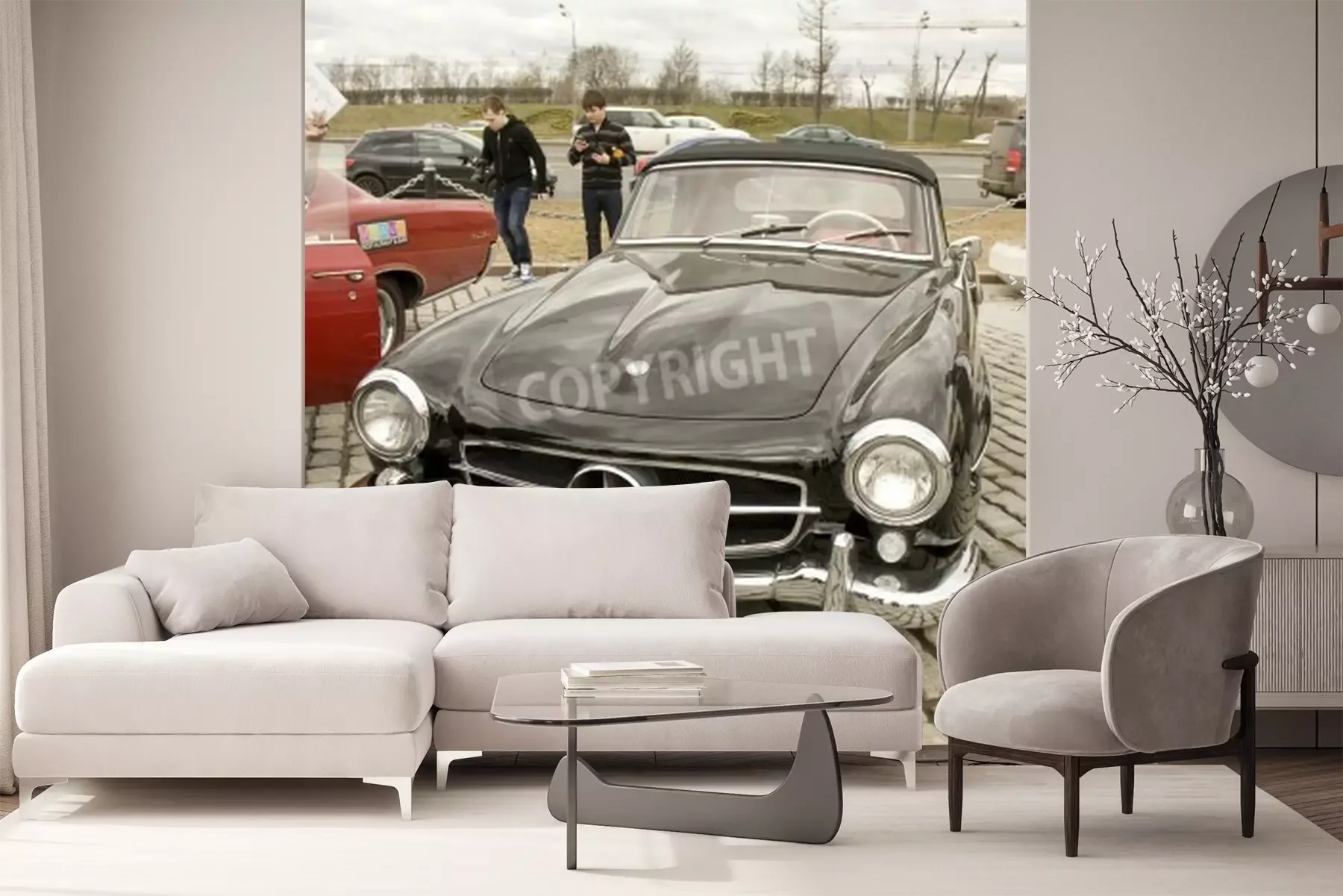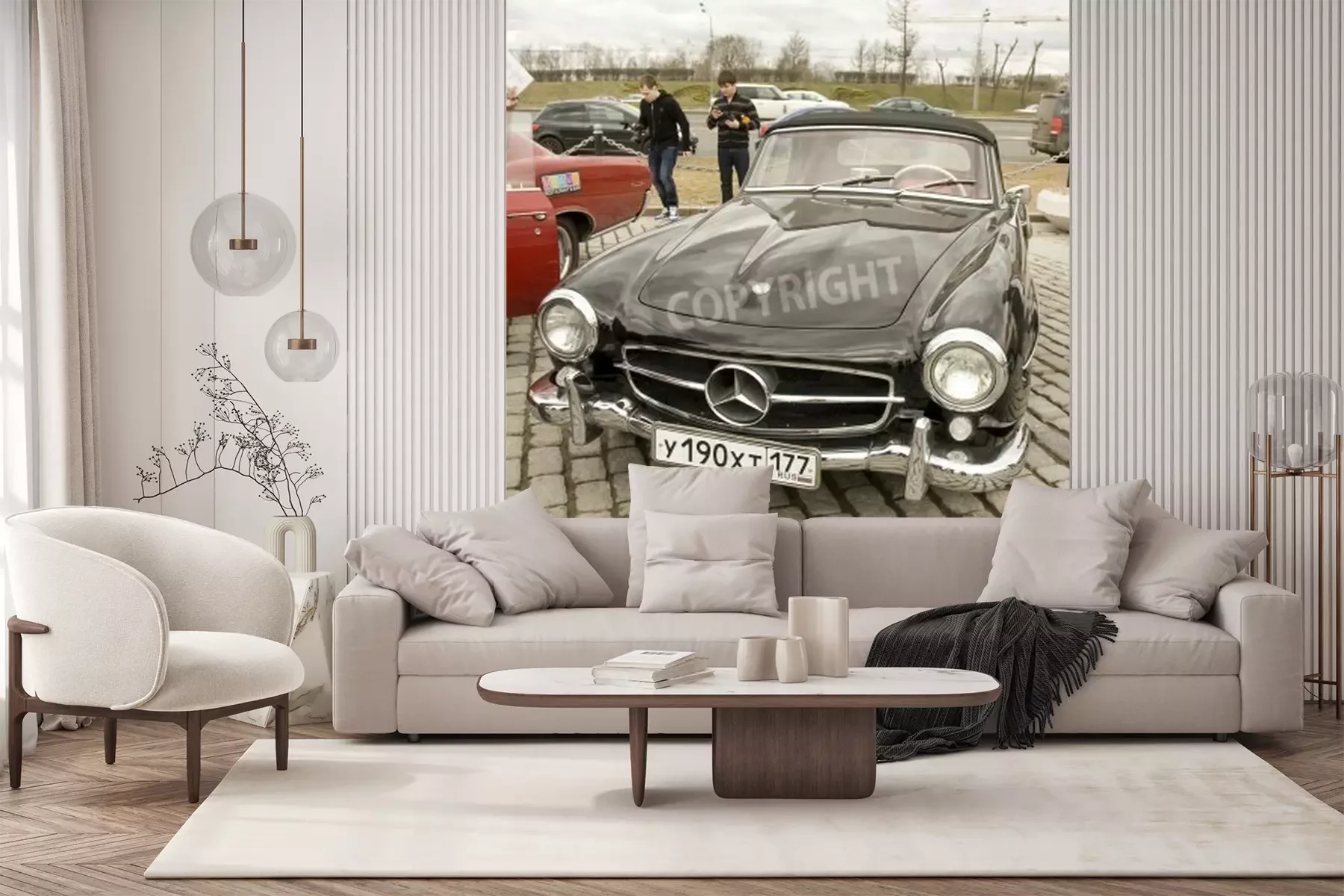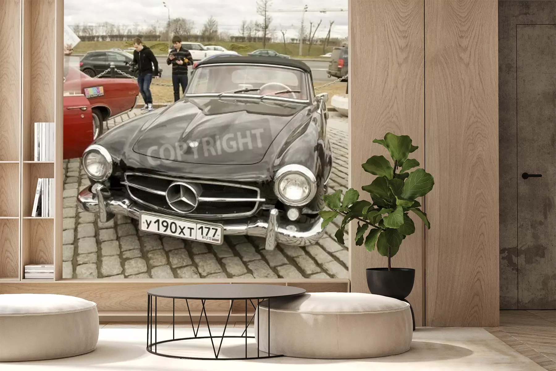Fotobehang MOSKOU 2013 april 21: retro auto mercedes benz op rally van klassieke auto's op Poklonnaya heuvel, 21 april 2013, in de stad Moskou, Rusland.