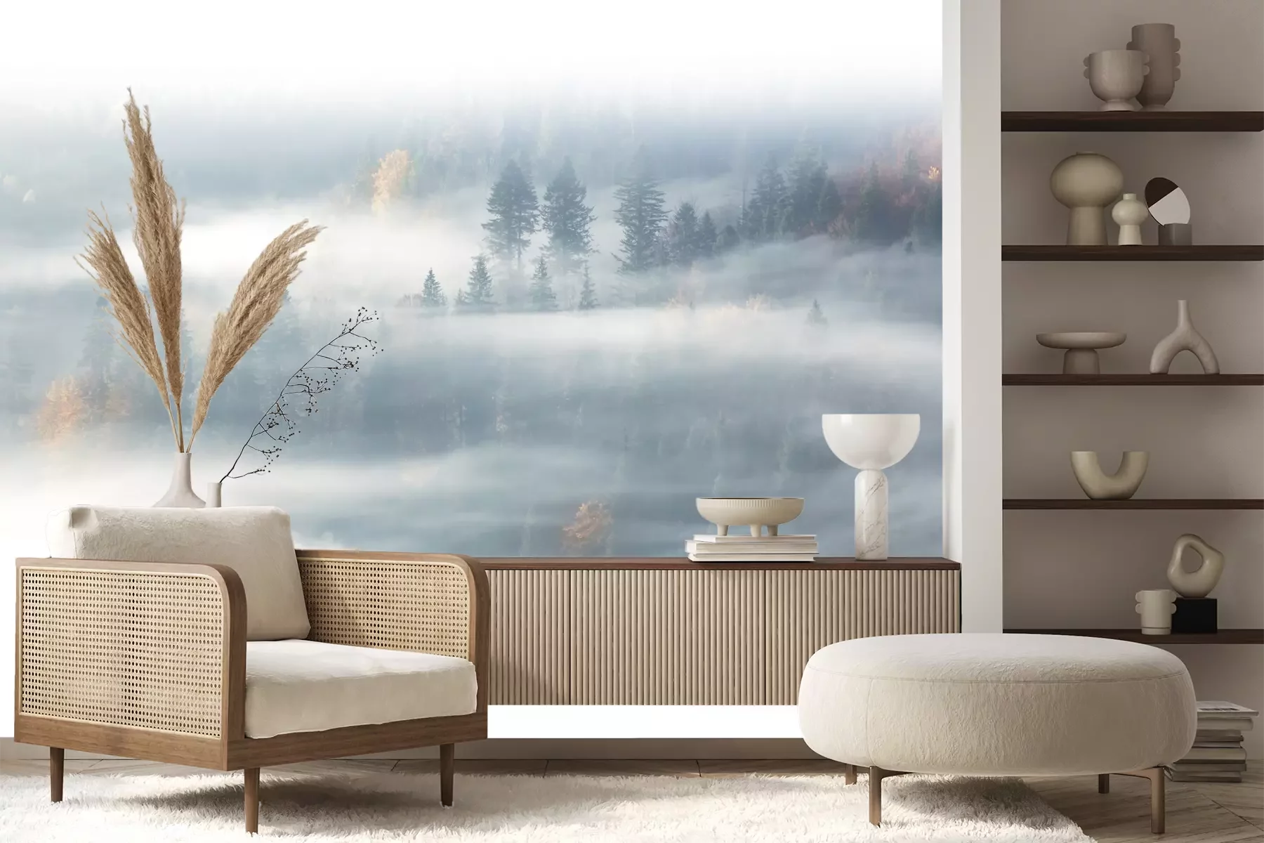 Het materiaal Premium+ is een gestructureerd vinyl op vlies met een gewicht van 255 g/m², dat kleine oneffenheden in de muur effectief camoufleert. De subtiele structuur van fijn zand geeft het oppervlak een exclusieve uitstraling, terwijl de halfmatte afwerking de diepte van de kleuren benadrukt. Het materiaal is dampdoorlatend, waardoor het ook in de keuken en badkamer kan worden gebruikt. De maximale breedte van één baan bedraagt 100 cm – bij grotere afmetingen wordt het fotobehang in meerdere gelijke banen verdeeld. De lijm wordt direct op de muur aangebracht en het behang wordt rand-aan-rand geplakt, wat zorgt voor een esthetisch resultaat zonder zichtbare naden. Het oppervlak kan gemakkelijk worden schoongemaakt door het voorzichtig af te nemen met een vochtige doek.