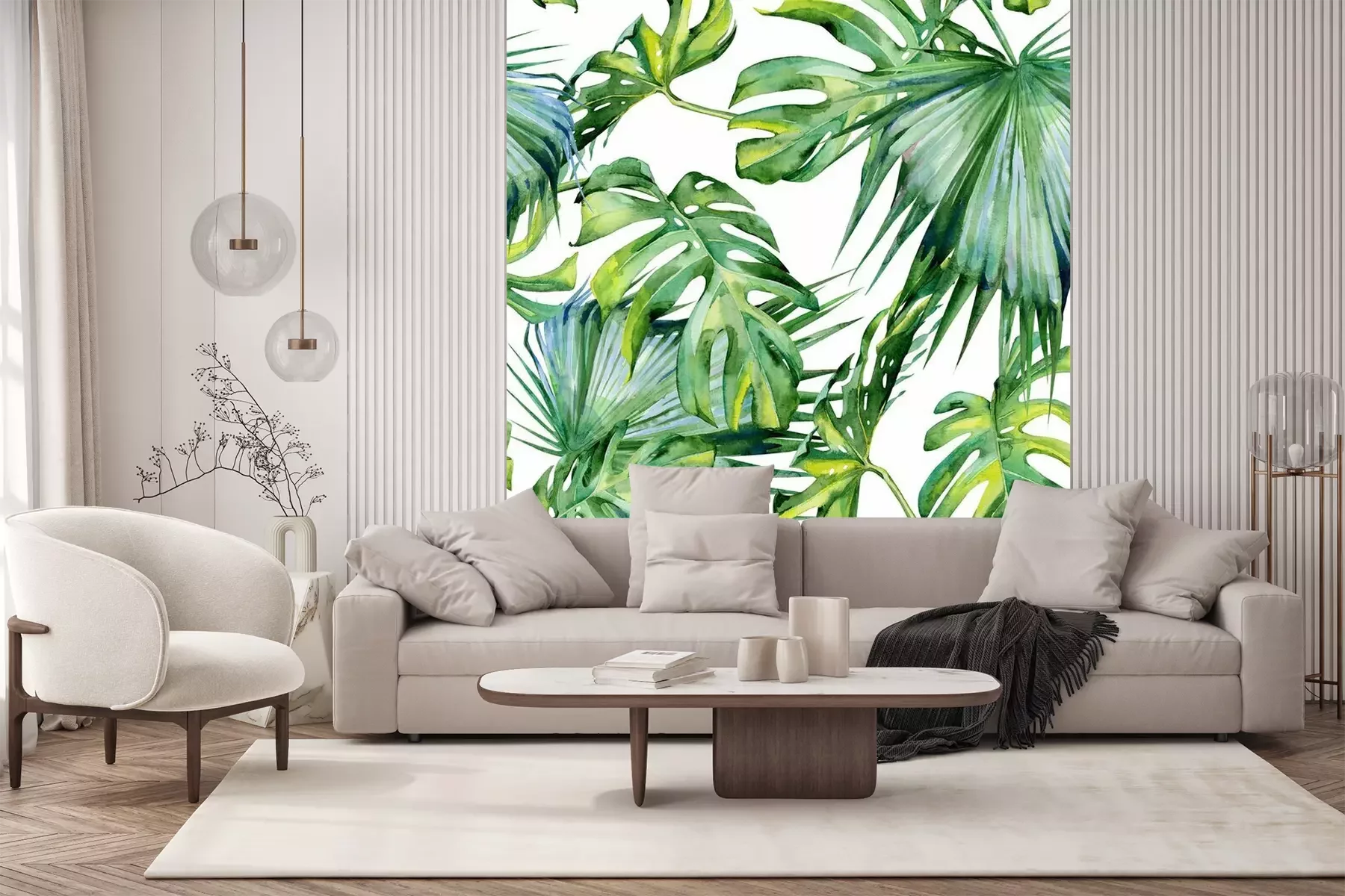 Het fotobehang wordt geleverd in banen. De afmetingen en het aantal banen waaruit het volledige fotobehang bestaat, zijn afhankelijk van het gekozen materiaal. Wanneer het formaat de maximale materiaalbreedte overschrijdt, bestaat de print uit meerdere gelijkmatige banen.
