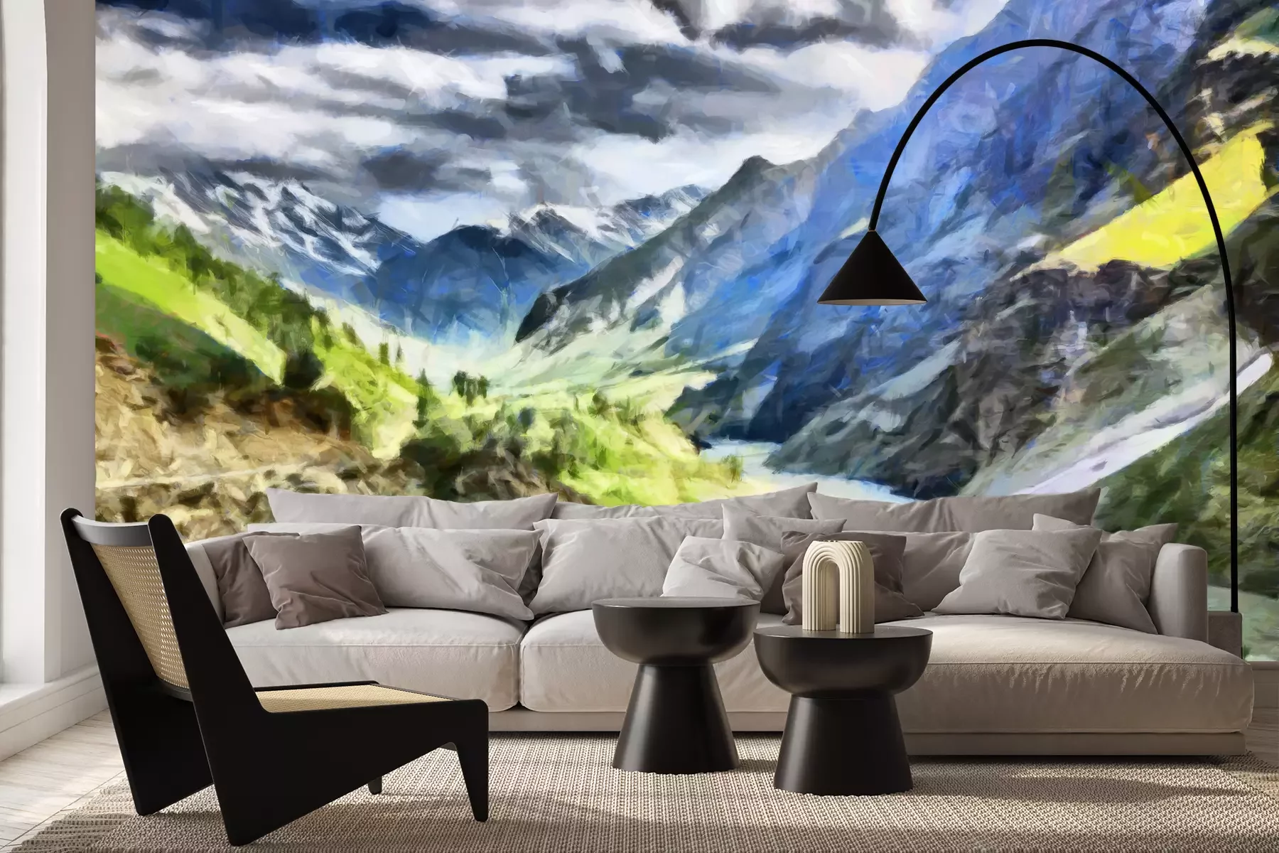 Het materiaal Premium+ is een gestructureerd vinyl op vlies met een gewicht van 255 g/m², dat kleine oneffenheden in de muur effectief camoufleert. De subtiele structuur van fijn zand geeft het oppervlak een exclusieve uitstraling, terwijl de halfmatte afwerking de diepte van de kleuren benadrukt. Het materiaal is dampdoorlatend, waardoor het ook in de keuken en badkamer kan worden gebruikt. De maximale breedte van één baan bedraagt 100 cm – bij grotere afmetingen wordt het fotobehang in meerdere gelijke banen verdeeld. De lijm wordt direct op de muur aangebracht en het behang wordt rand-aan-rand geplakt, wat zorgt voor een esthetisch resultaat zonder zichtbare naden. Het oppervlak kan gemakkelijk worden schoongemaakt door het voorzichtig af te nemen met een vochtige doek.