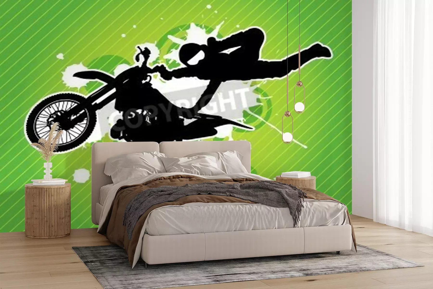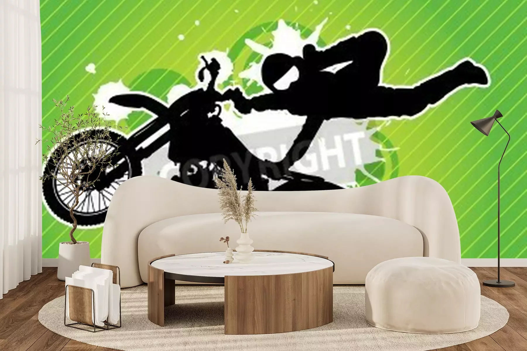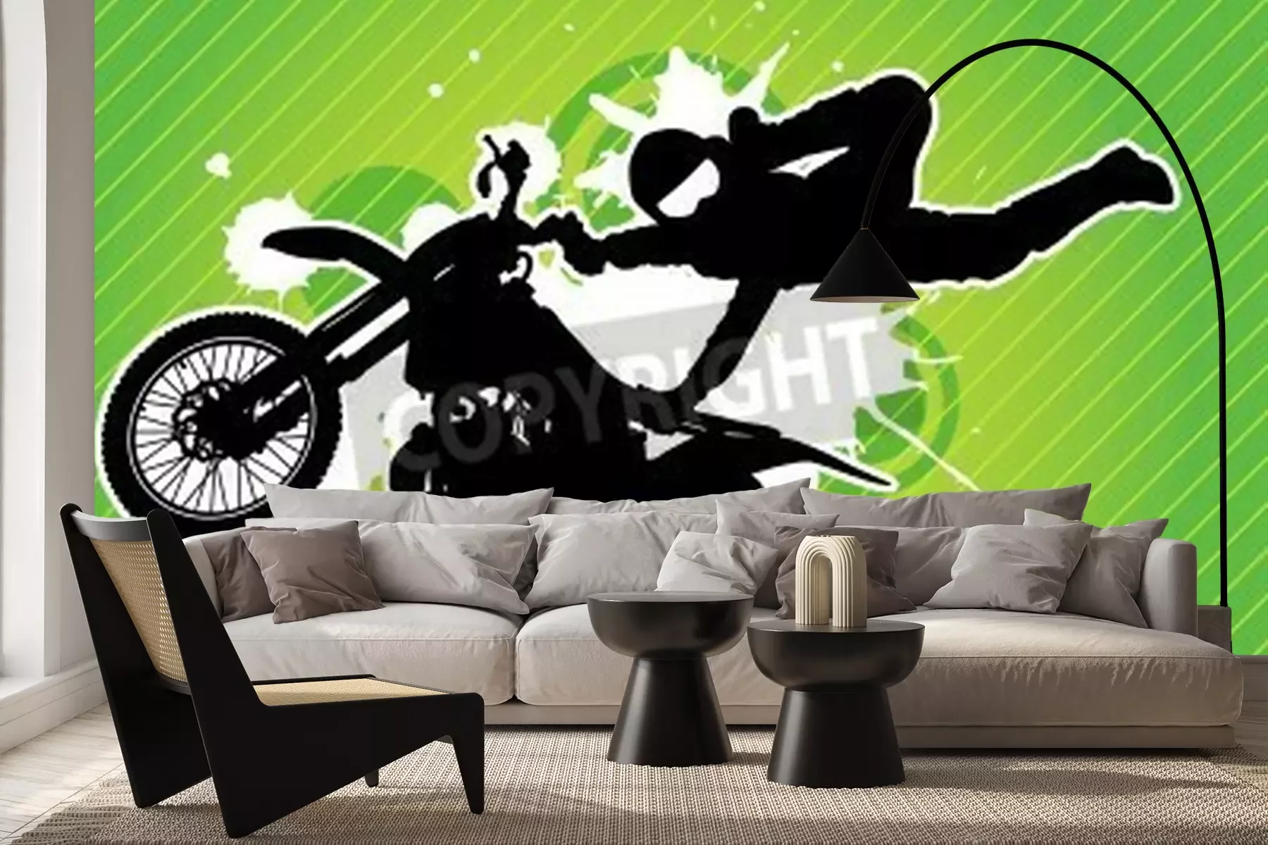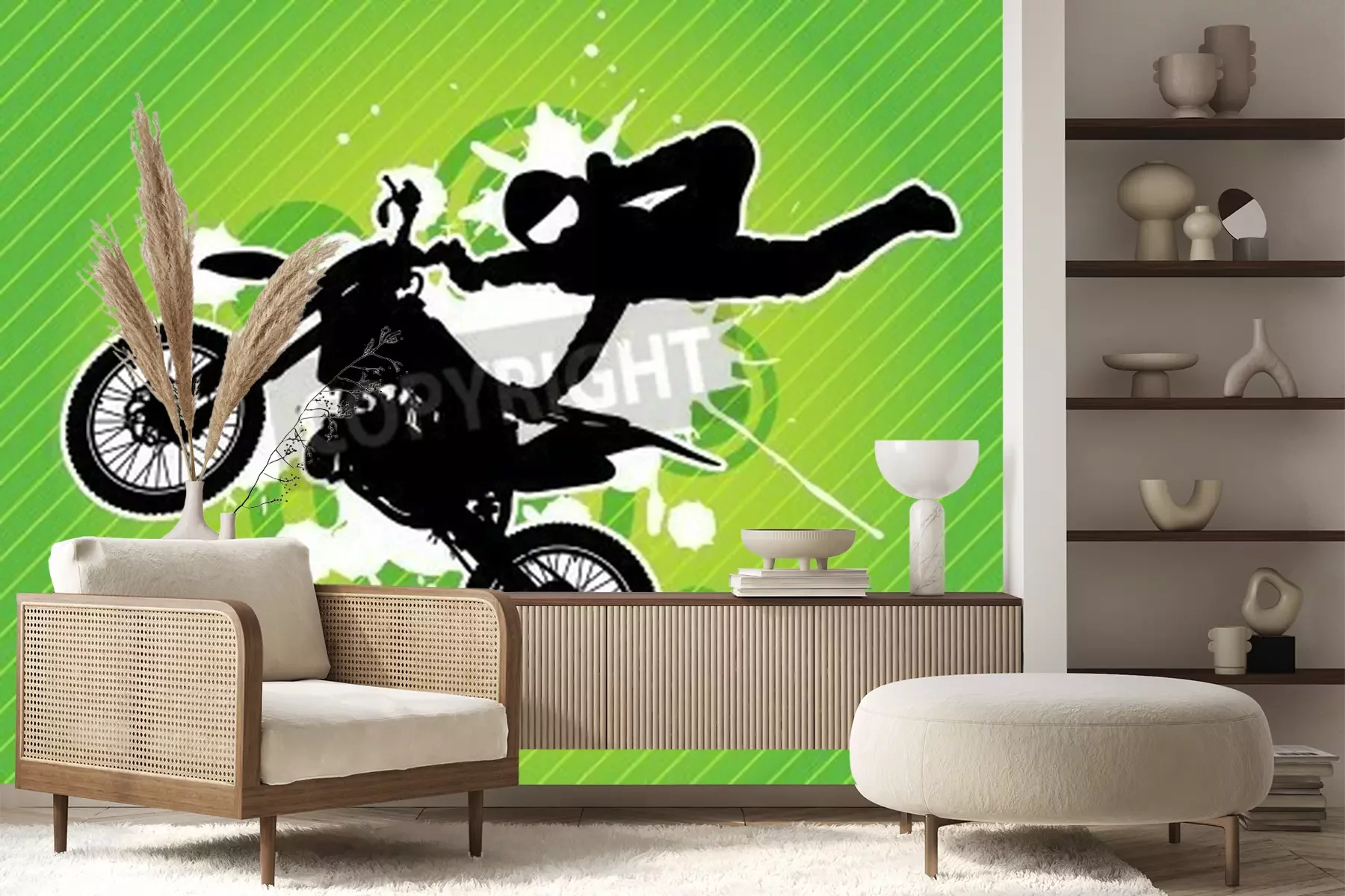Fotobehang Motorfiets en de ruiter silhouet op de grunge groene achtergrond