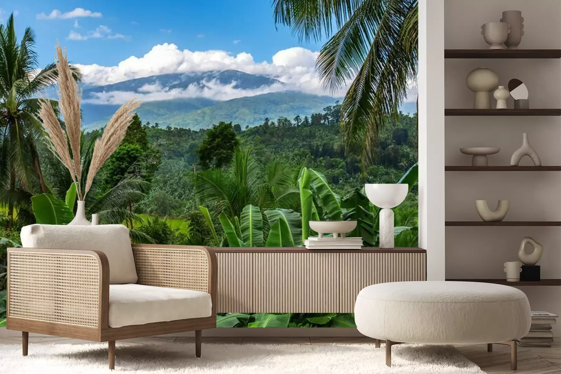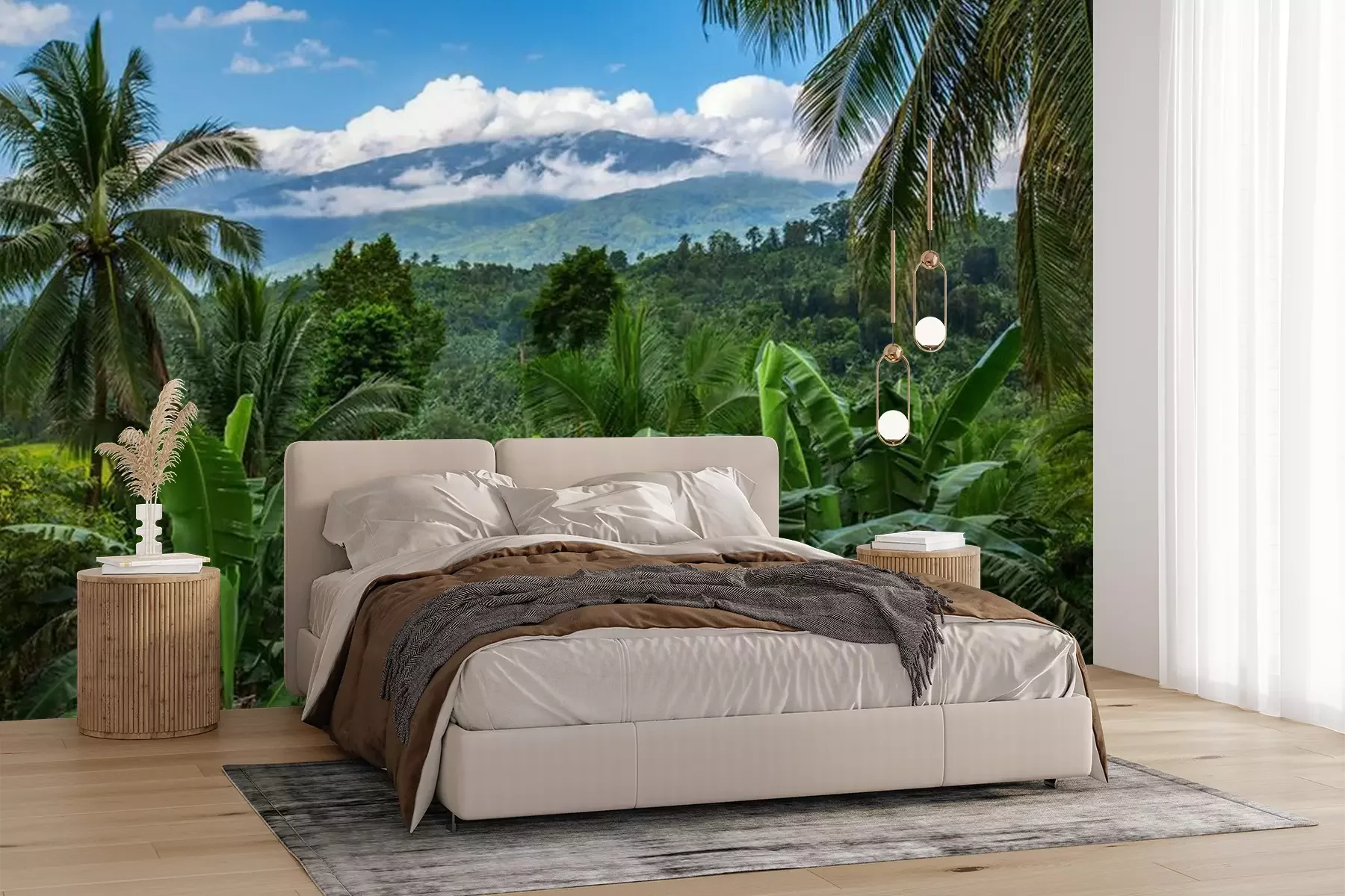 Het materiaal Premium+ is een gestructureerd vinyl op vlies met een gewicht van 255 g/m², dat kleine oneffenheden in de muur effectief camoufleert. De subtiele structuur van fijn zand geeft het oppervlak een exclusieve uitstraling, terwijl de halfmatte afwerking de diepte van de kleuren benadrukt. Het materiaal is dampdoorlatend, waardoor het ook in de keuken en badkamer kan worden gebruikt. De maximale breedte van één baan bedraagt 100 cm – bij grotere afmetingen wordt het fotobehang in meerdere gelijke banen verdeeld. De lijm wordt direct op de muur aangebracht en het behang wordt rand-aan-rand geplakt, wat zorgt voor een esthetisch resultaat zonder zichtbare naden. Het oppervlak kan gemakkelijk worden schoongemaakt door het voorzichtig af te nemen met een vochtige doek.