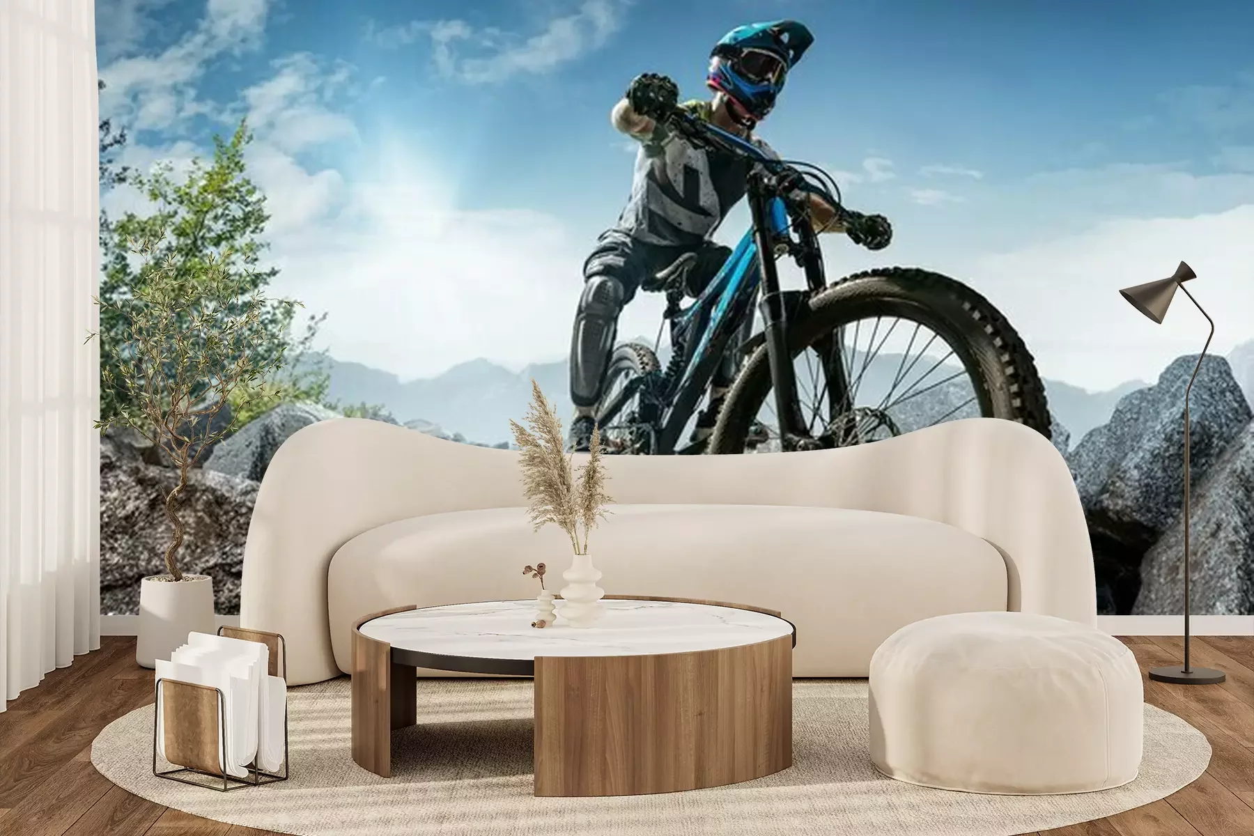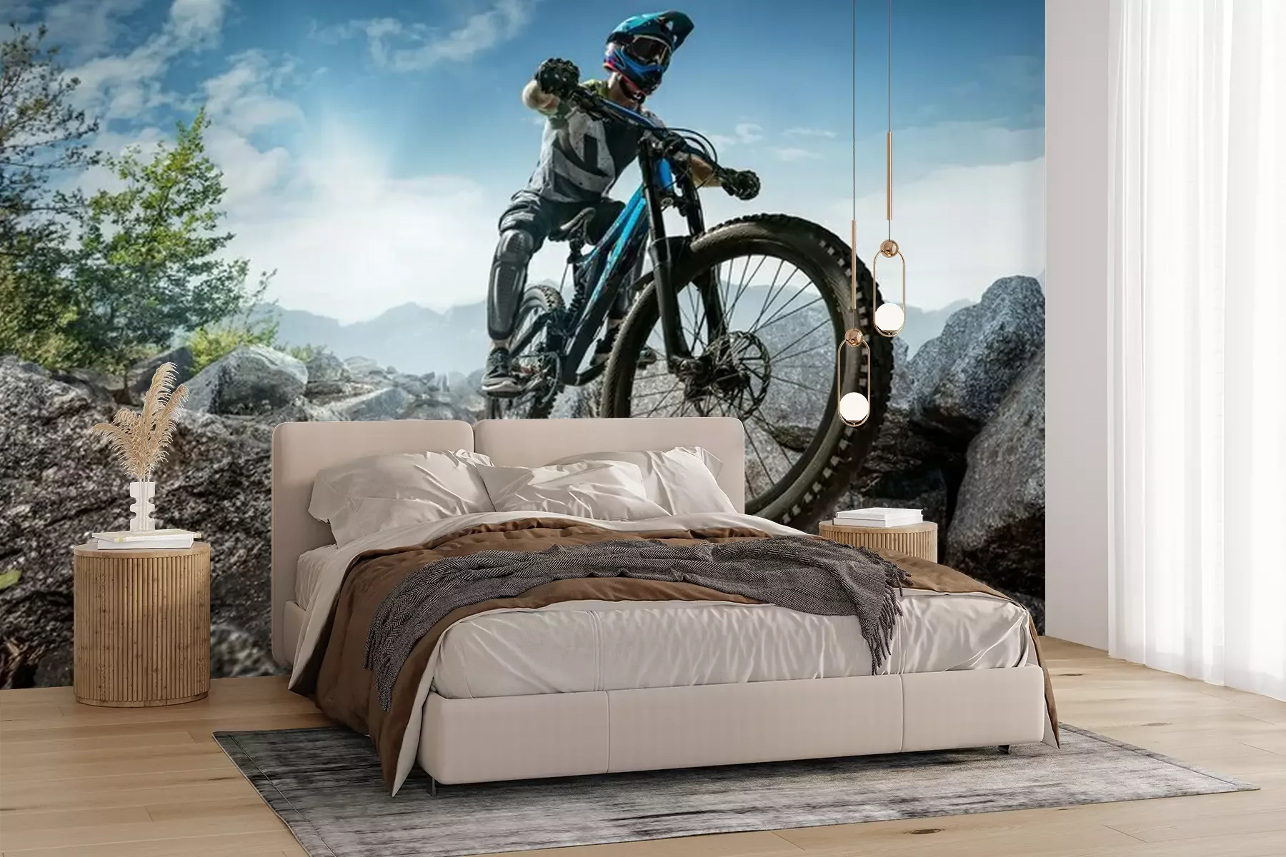 Het materiaal Premium+ is een gestructureerd vinyl op vlies met een gewicht van 255 g/m², dat kleine oneffenheden in de muur effectief camoufleert. De subtiele structuur van fijn zand geeft het oppervlak een exclusieve uitstraling, terwijl de halfmatte afwerking de diepte van de kleuren benadrukt. Het materiaal is dampdoorlatend, waardoor het ook in de keuken en badkamer kan worden gebruikt. De maximale breedte van één baan bedraagt 100 cm – bij grotere afmetingen wordt het fotobehang in meerdere gelijke banen verdeeld. De lijm wordt direct op de muur aangebracht en het behang wordt rand-aan-rand geplakt, wat zorgt voor een esthetisch resultaat zonder zichtbare naden. Het oppervlak kan gemakkelijk worden schoongemaakt door het voorzichtig af te nemen met een vochtige doek.