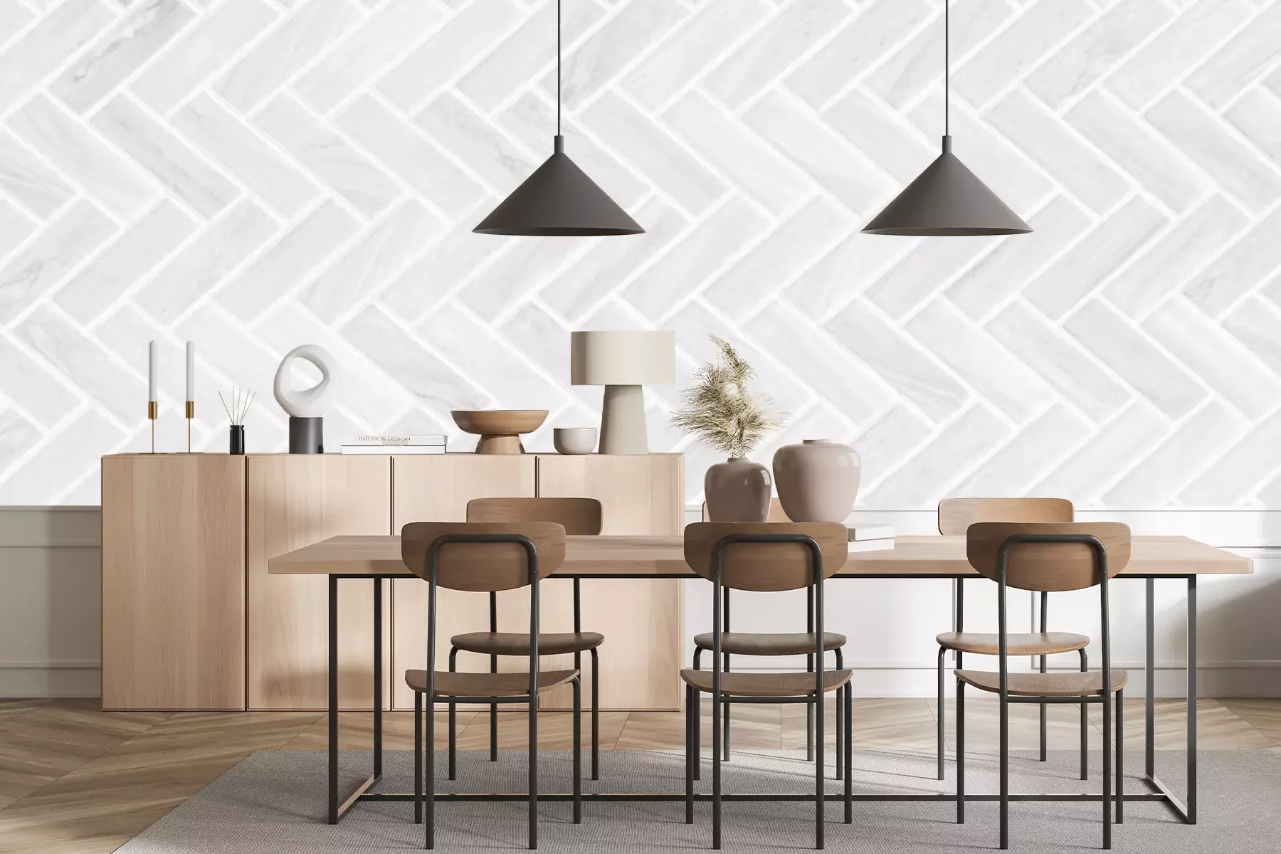 Het materiaal Premium is een glad vinyl op vlies, dat bestand is tegen uitrekken en vervorming. Het is dampdoorlatend – de muren kunnen vrij ademen – waardoor het geschikt is voor gebruik in de keuken en badkamer. Bij vervuiling kan het materiaal worden afgenomen met een vochtige doek. De maximale breedte van één baan bedraagt 95 of 105 cm, afhankelijk van de beschikbaarheid. Montage vindt plaats met de rand-aan-rand methode, wat een esthetisch resultaat zonder zichtbare naden oplevert. Omdat de lijm rechtstreeks op de muur wordt aangebracht, verloopt de installatie van het fotobehang snel en eenvoudig.