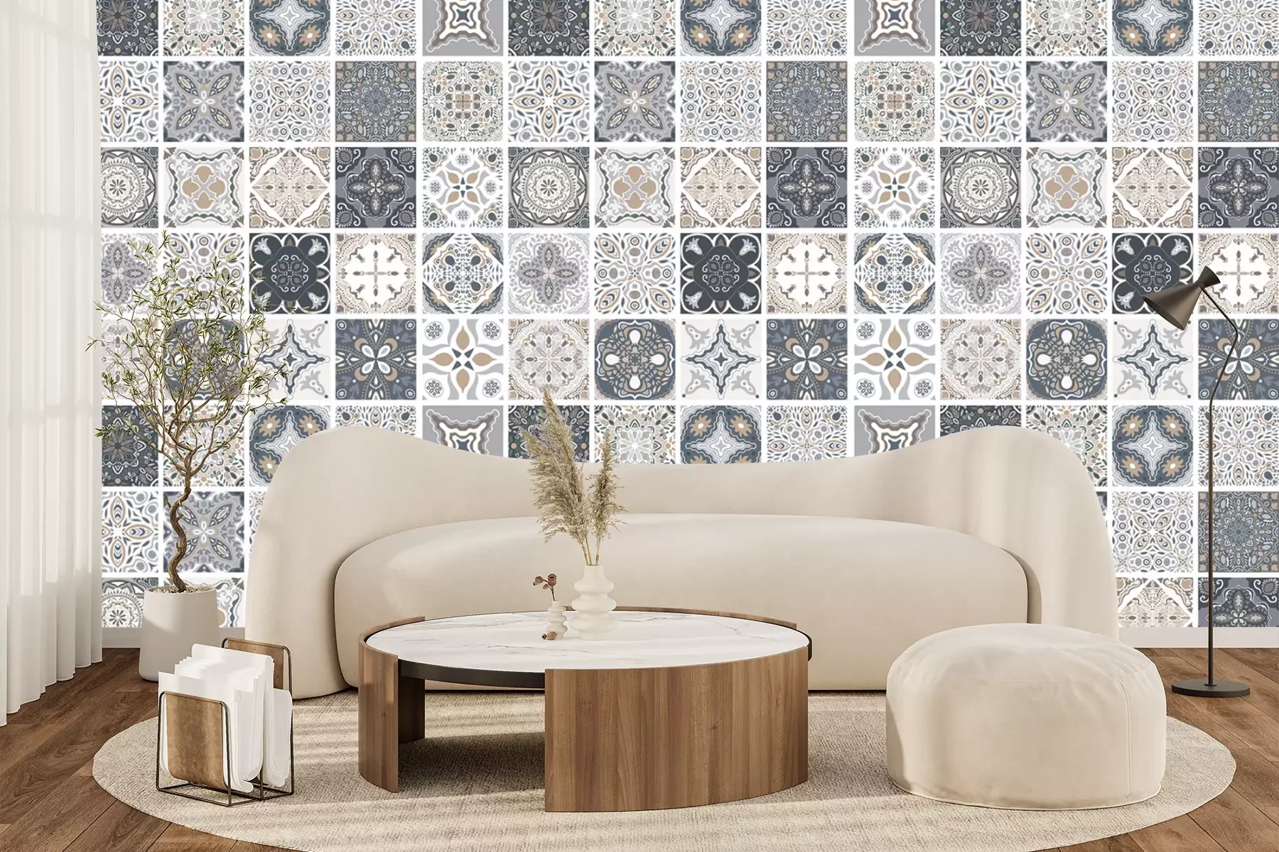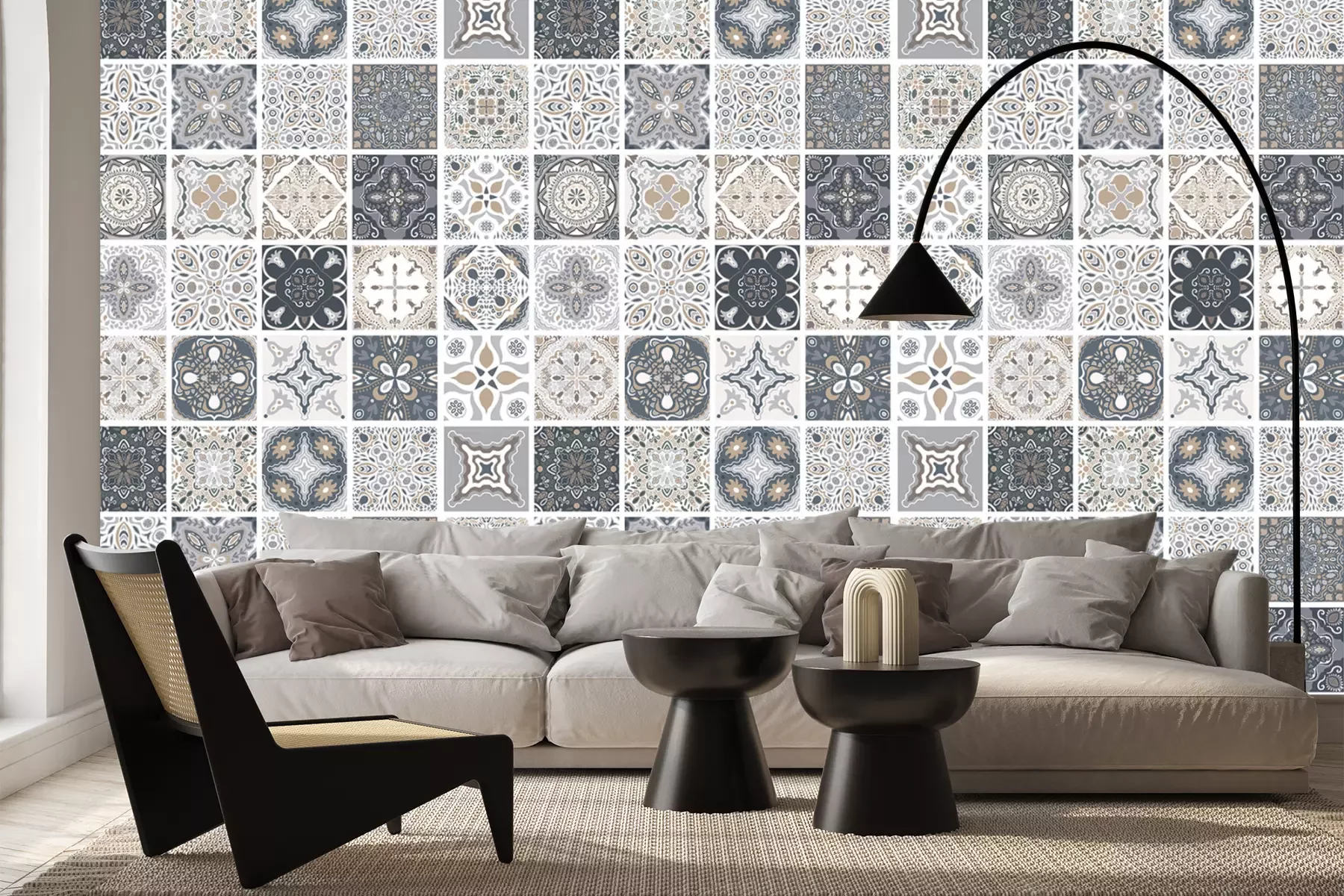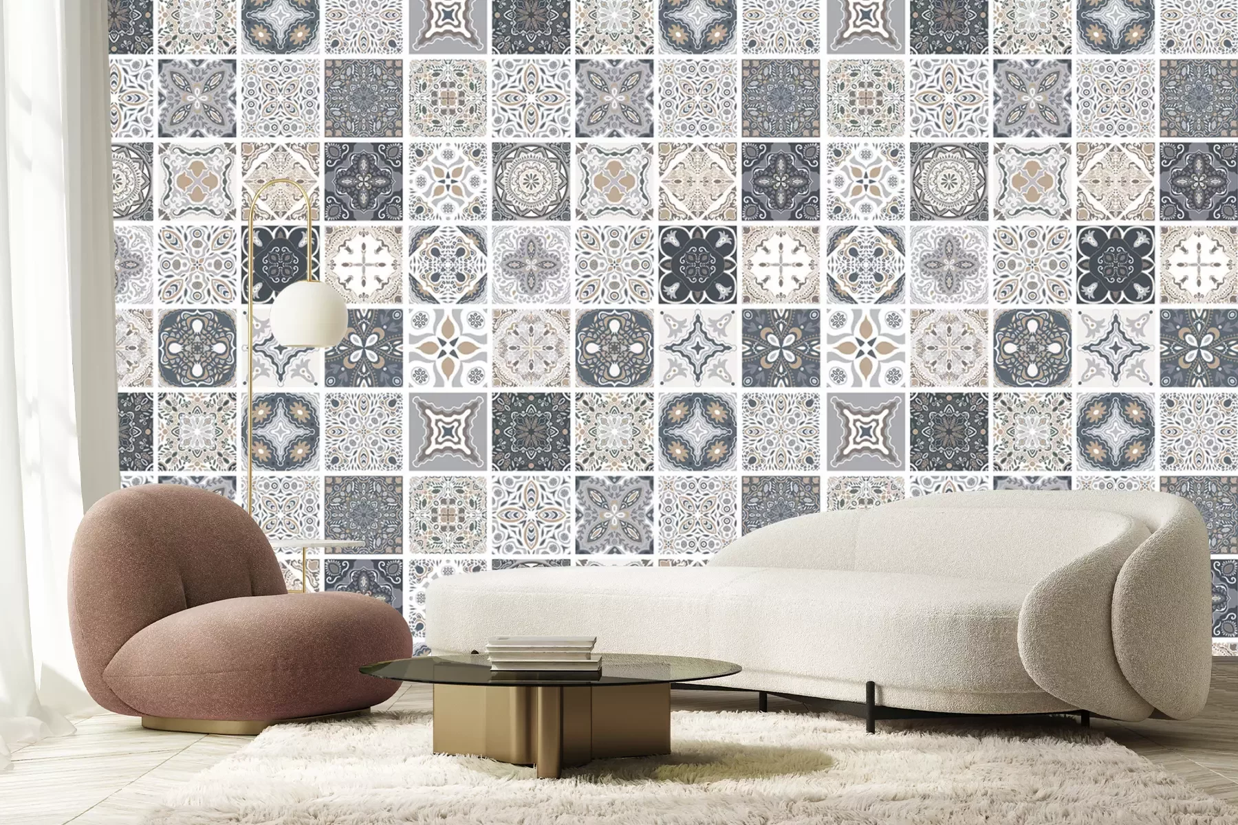 Het materiaal Standard is een hoogwaardig latexmateriaal met een glad, mat oppervlak. Dankzij de HP Latex-printtechnologie zijn de kleuren intens, duurzaam en UV-bestendig, waardoor het patroon jarenlang een onberispelijke uitstraling behoudt. Vervuilde oppervlakken kunnen voorzichtig worden afgeveegd met een droge doek. De maximale breedte van één baan bedraagt 95 cm of 105 cm – afhankelijk van de bestelde fotobehangbreedte. Bij grotere afmetingen wordt het patroon verdeeld over meerdere gelijkmatige banen. Het fotobehang wordt rand-aan-randaangebracht, wat vrijwel onzichtbare naden mogelijk maakt.