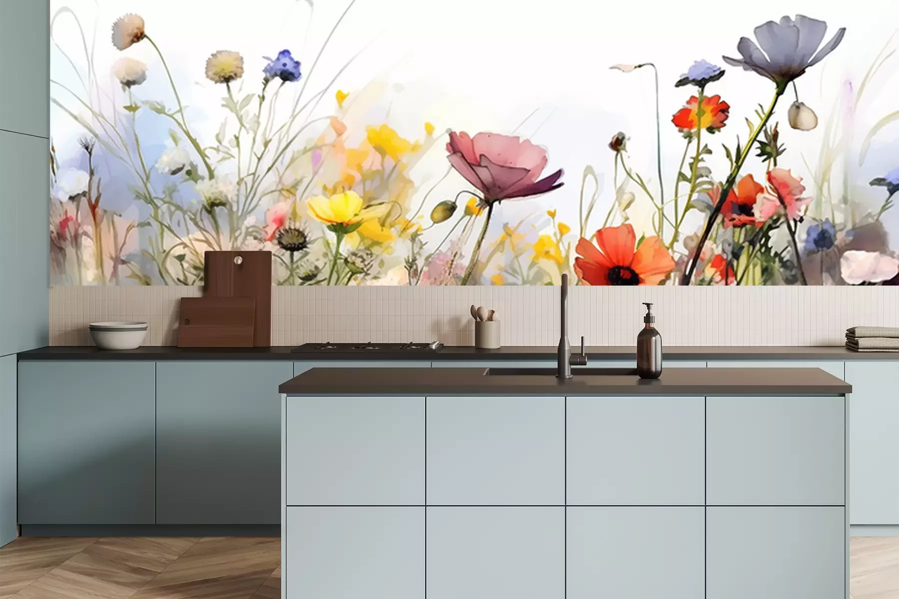 Het materiaal Premium is een glad vinyl op vlies, dat bestand is tegen uitrekken en vervorming. Het is dampdoorlatend – de muren kunnen vrij ademen – waardoor het geschikt is voor gebruik in de keuken en badkamer. Bij vervuiling kan het materiaal worden afgenomen met een vochtige doek. De maximale breedte van één baan bedraagt 95 of 105 cm, afhankelijk van de beschikbaarheid. Montage vindt plaats met de rand-aan-rand methode, wat een esthetisch resultaat zonder zichtbare naden oplevert. Omdat de lijm rechtstreeks op de muur wordt aangebracht, verloopt de installatie van het fotobehang snel en eenvoudig.