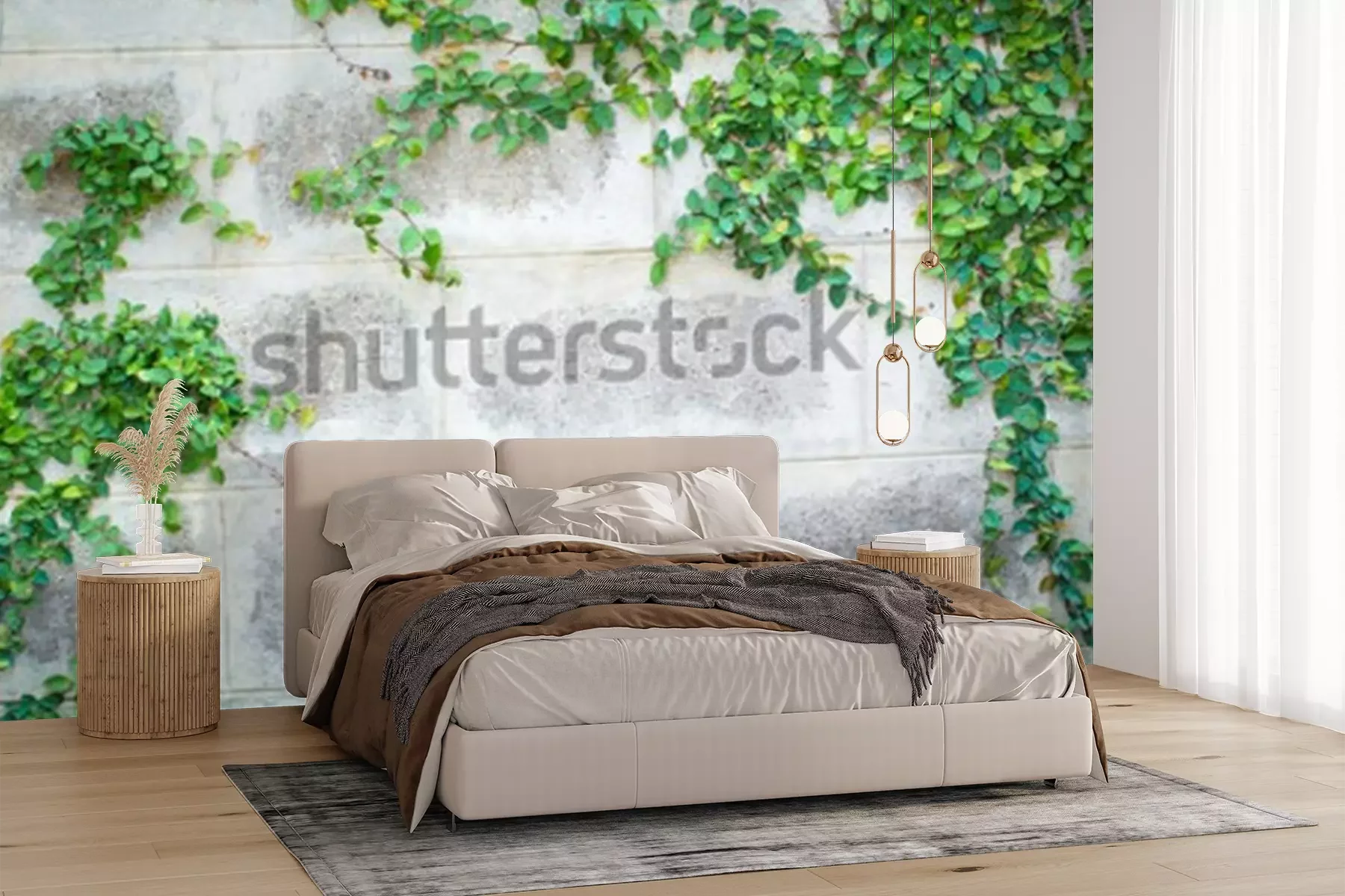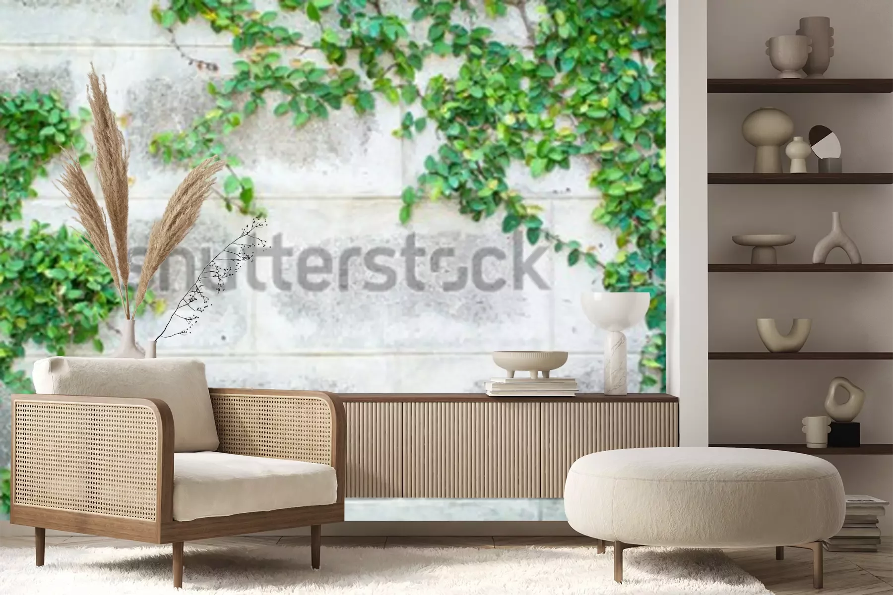 Fotobehang Muur met klimop in de tuin