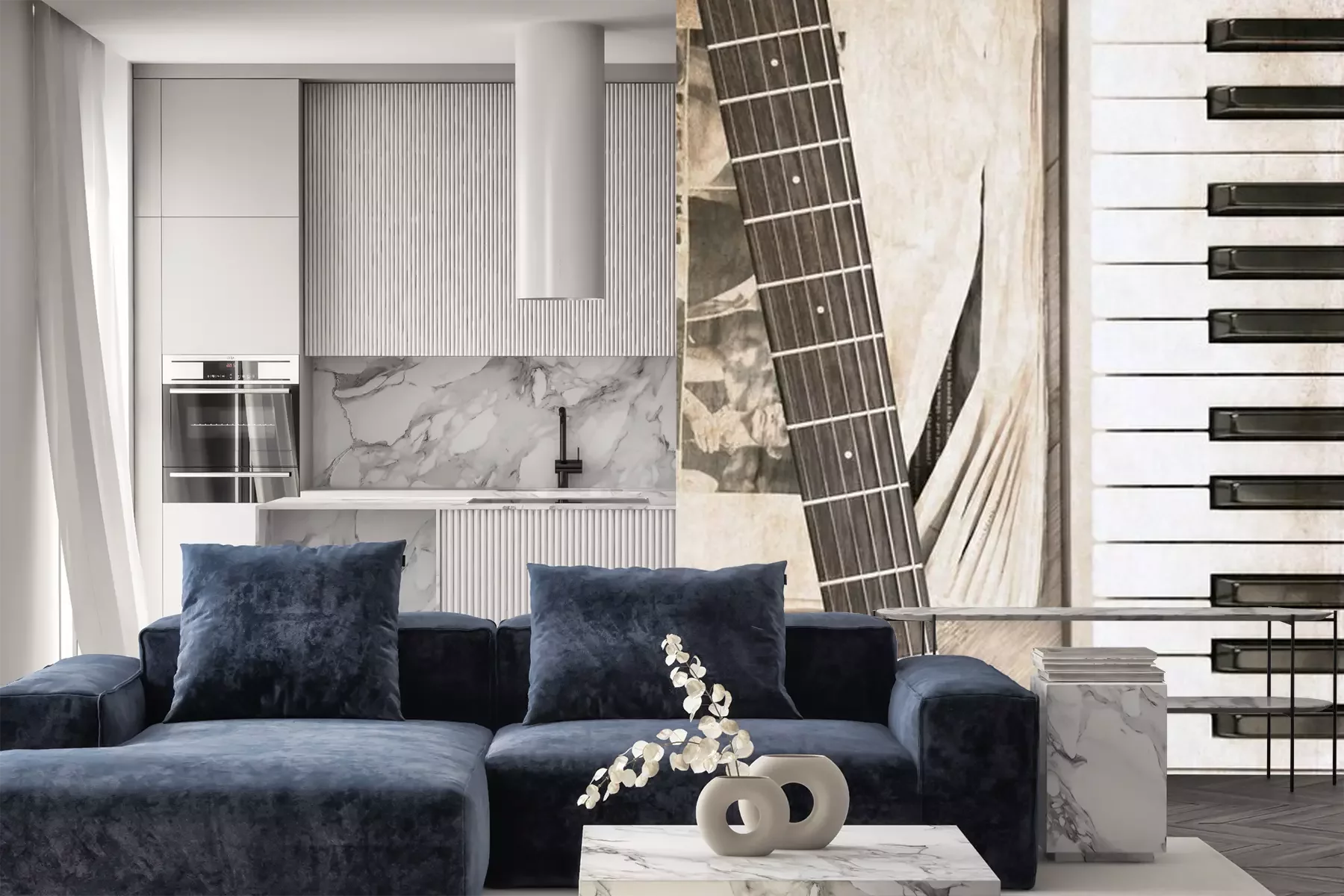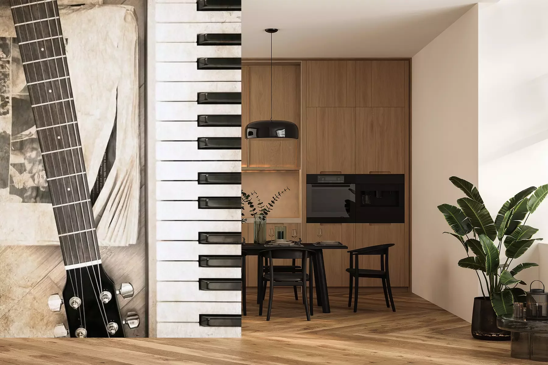 Fotobehang Muziek gitaar en piano