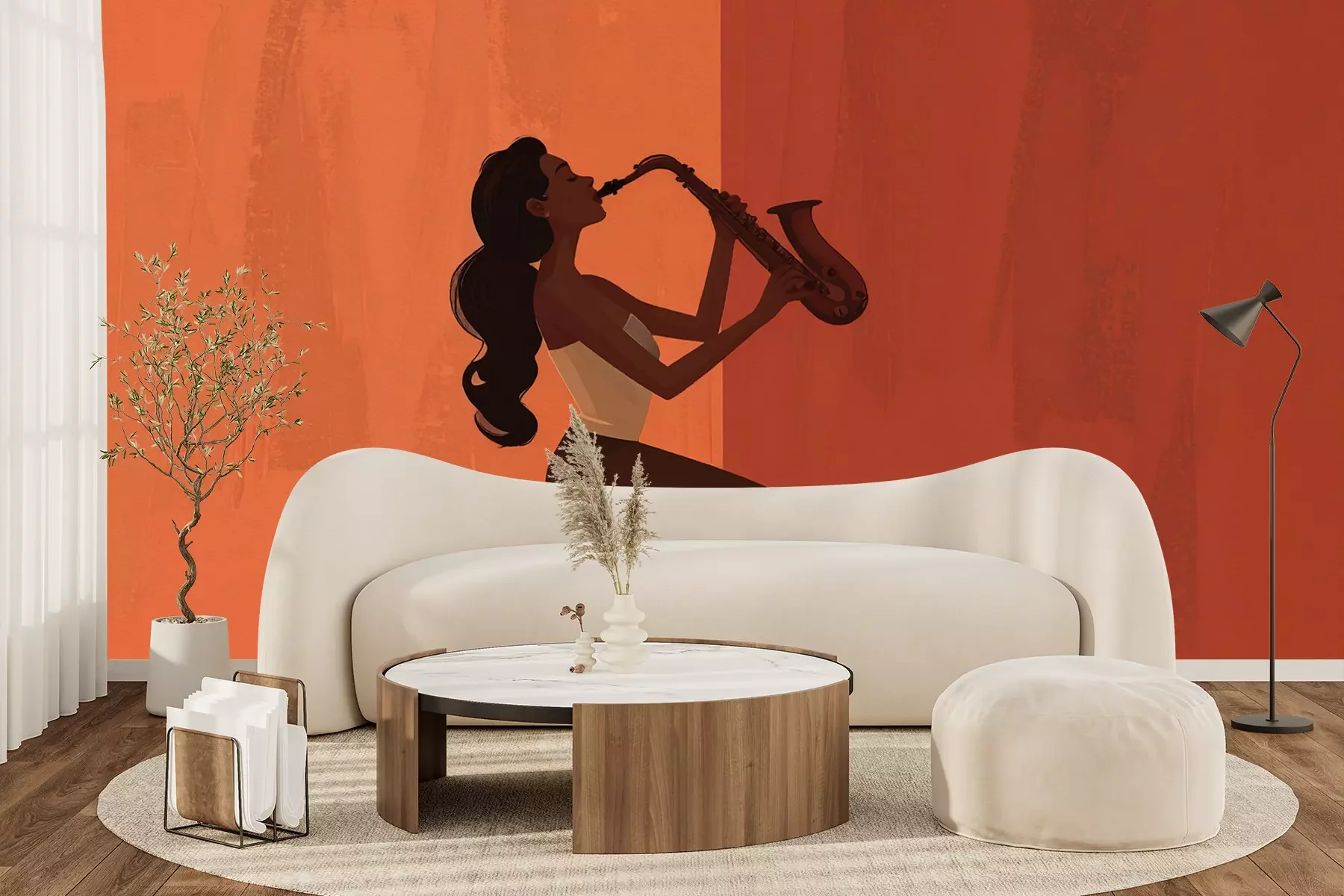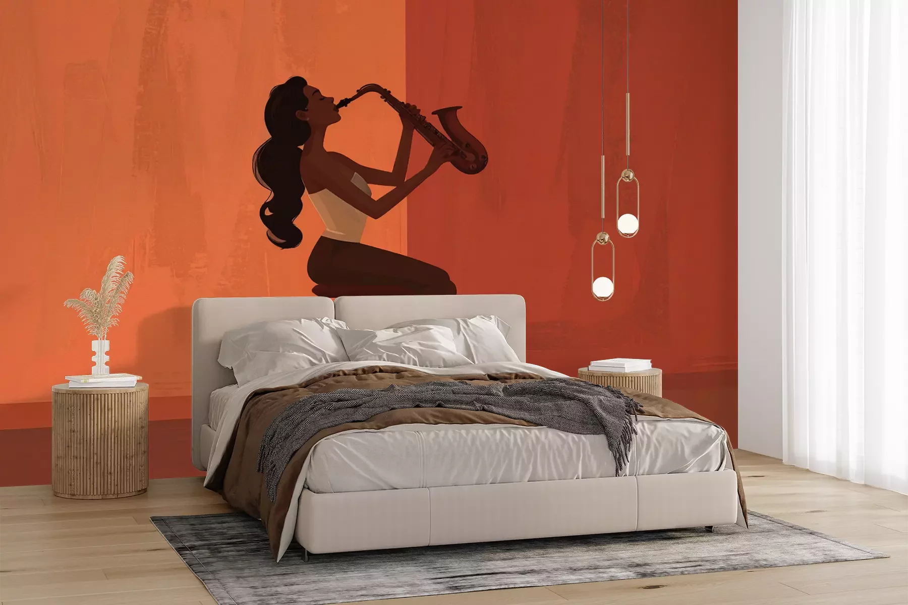 Het materiaal Premium+ is een gestructureerd vinyl op vlies met een gewicht van 255 g/m², dat kleine oneffenheden in de muur effectief camoufleert. De subtiele structuur van fijn zand geeft het oppervlak een exclusieve uitstraling, terwijl de halfmatte afwerking de diepte van de kleuren benadrukt. Het materiaal is dampdoorlatend, waardoor het ook in de keuken en badkamer kan worden gebruikt. De maximale breedte van één baan bedraagt 100 cm – bij grotere afmetingen wordt het fotobehang in meerdere gelijke banen verdeeld. De lijm wordt direct op de muur aangebracht en het behang wordt rand-aan-rand geplakt, wat zorgt voor een esthetisch resultaat zonder zichtbare naden. Het oppervlak kan gemakkelijk worden schoongemaakt door het voorzichtig af te nemen met een vochtige doek.