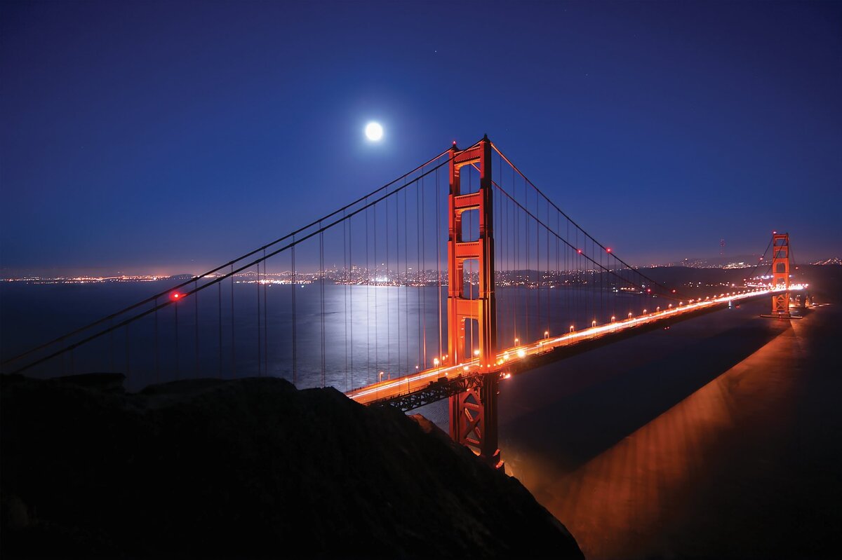 Fotobehang: Nachtelijk landschap van de Golden Gate Bridge
