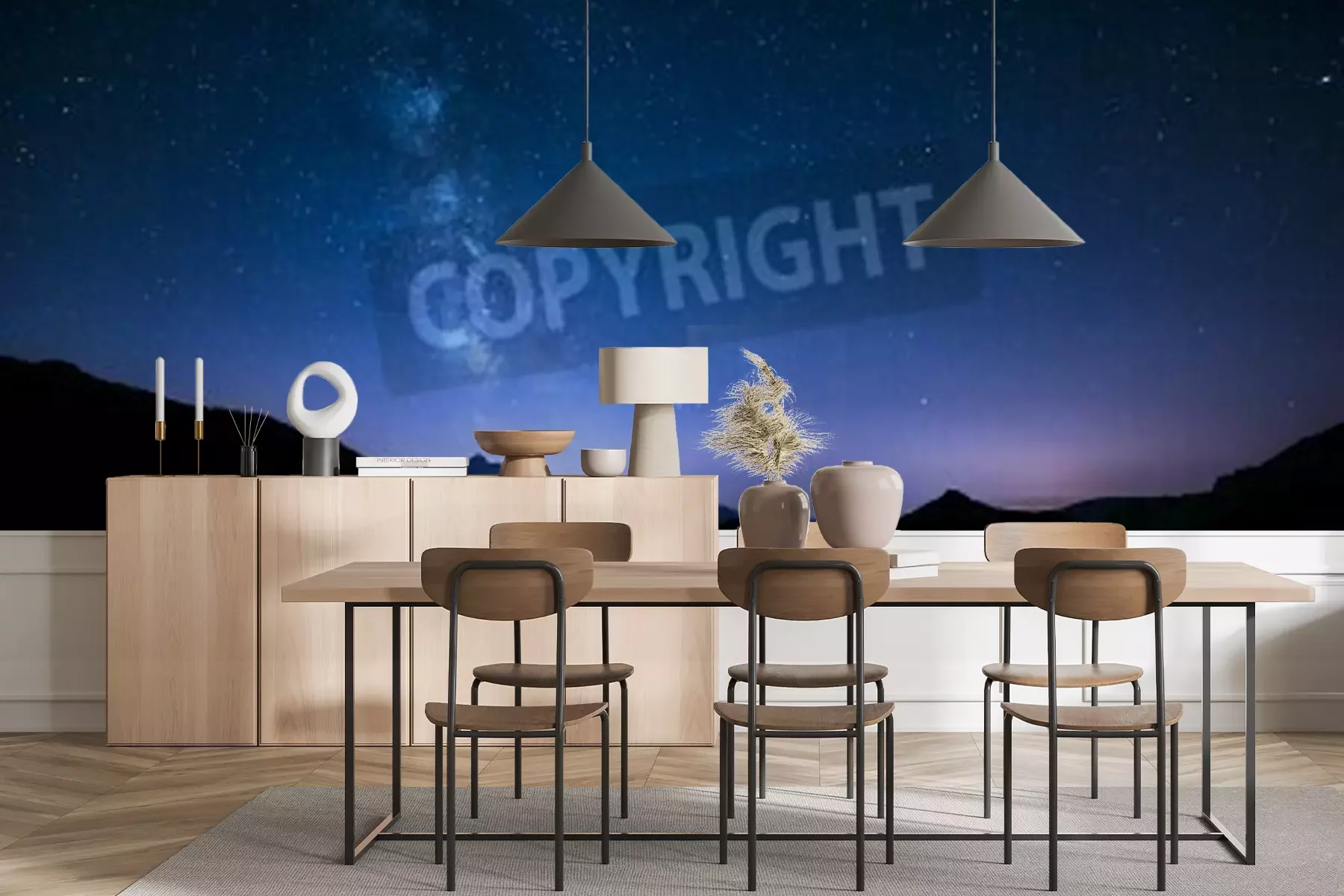 Fotobehang Nachtelijk panorama met sterren