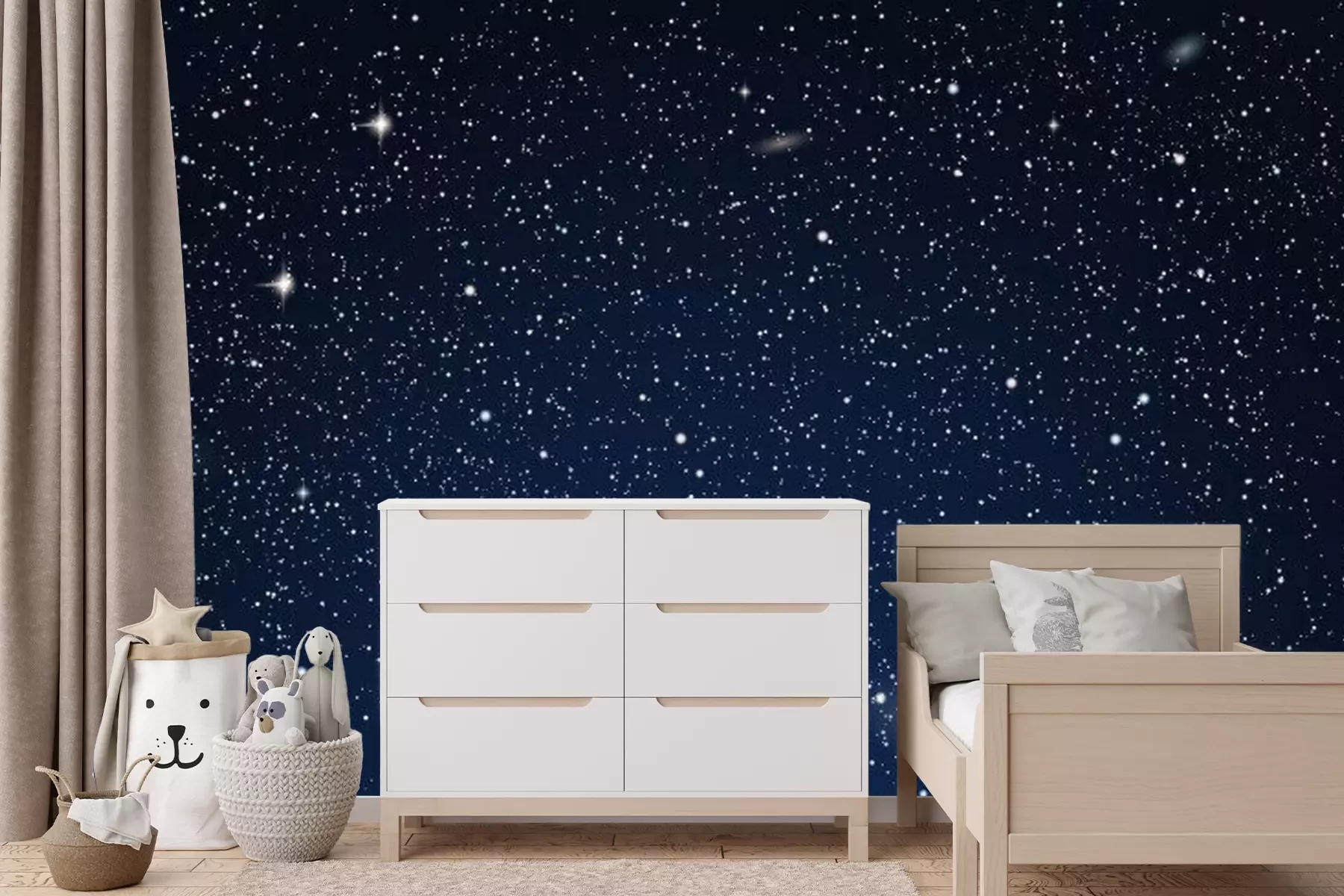 Het materiaal Standard is een hoogwaardig latexmateriaal met een glad, mat oppervlak. Dankzij de HP Latex-printtechnologie zijn de kleuren intens, duurzaam en UV-bestendig, waardoor het patroon jarenlang een onberispelijke uitstraling behoudt. Vervuilde oppervlakken kunnen voorzichtig worden afgeveegd met een droge doek. De maximale breedte van één baan bedraagt 95 cm of 105 cm – afhankelijk van de bestelde fotobehangbreedte. Bij grotere afmetingen wordt het patroon verdeeld over meerdere gelijkmatige banen. Het fotobehang wordt rand-aan-randaangebracht, wat vrijwel onzichtbare naden mogelijk maakt.