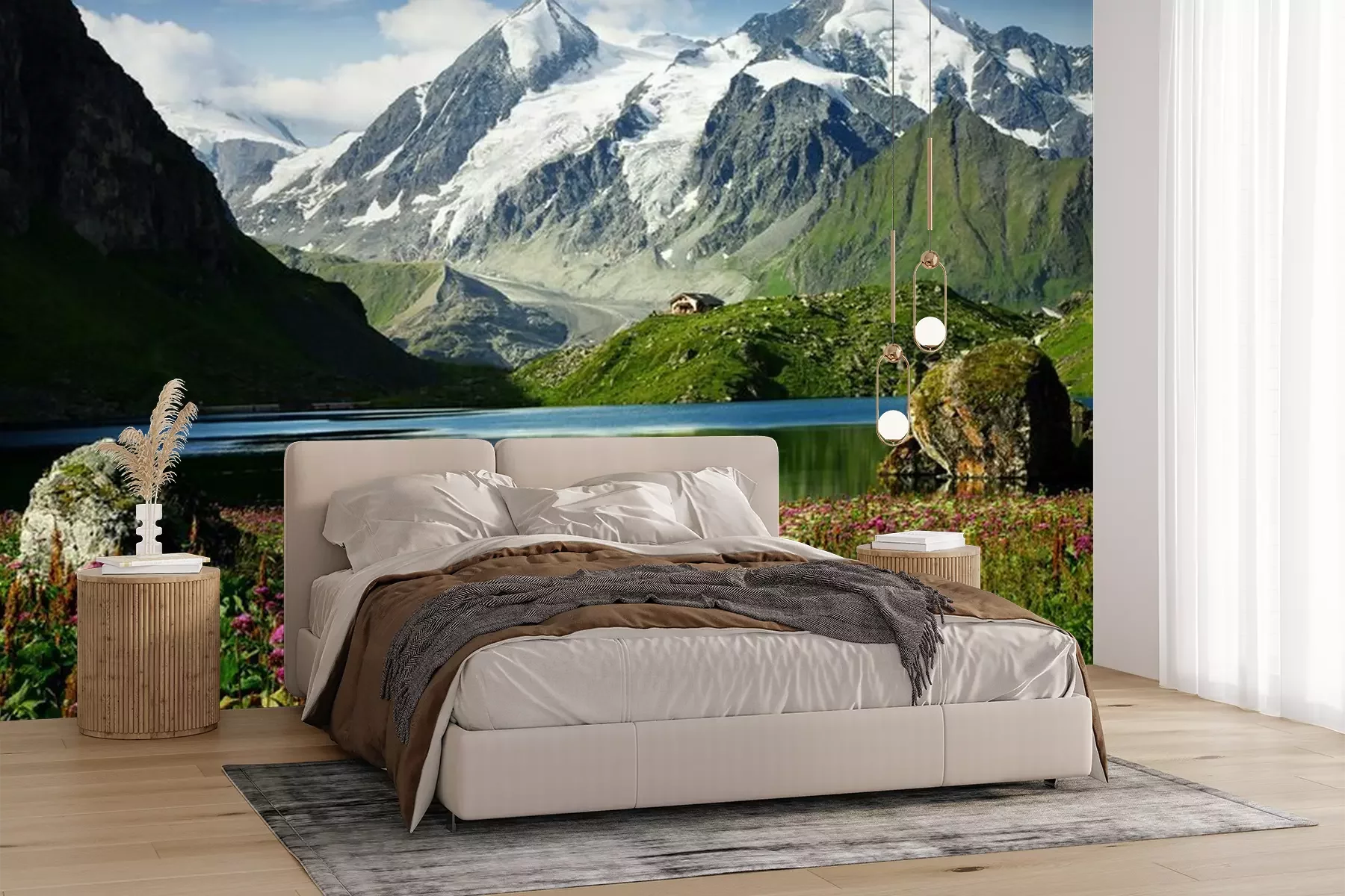 Fotobehang Natuur en meer aan de voet van de bergen