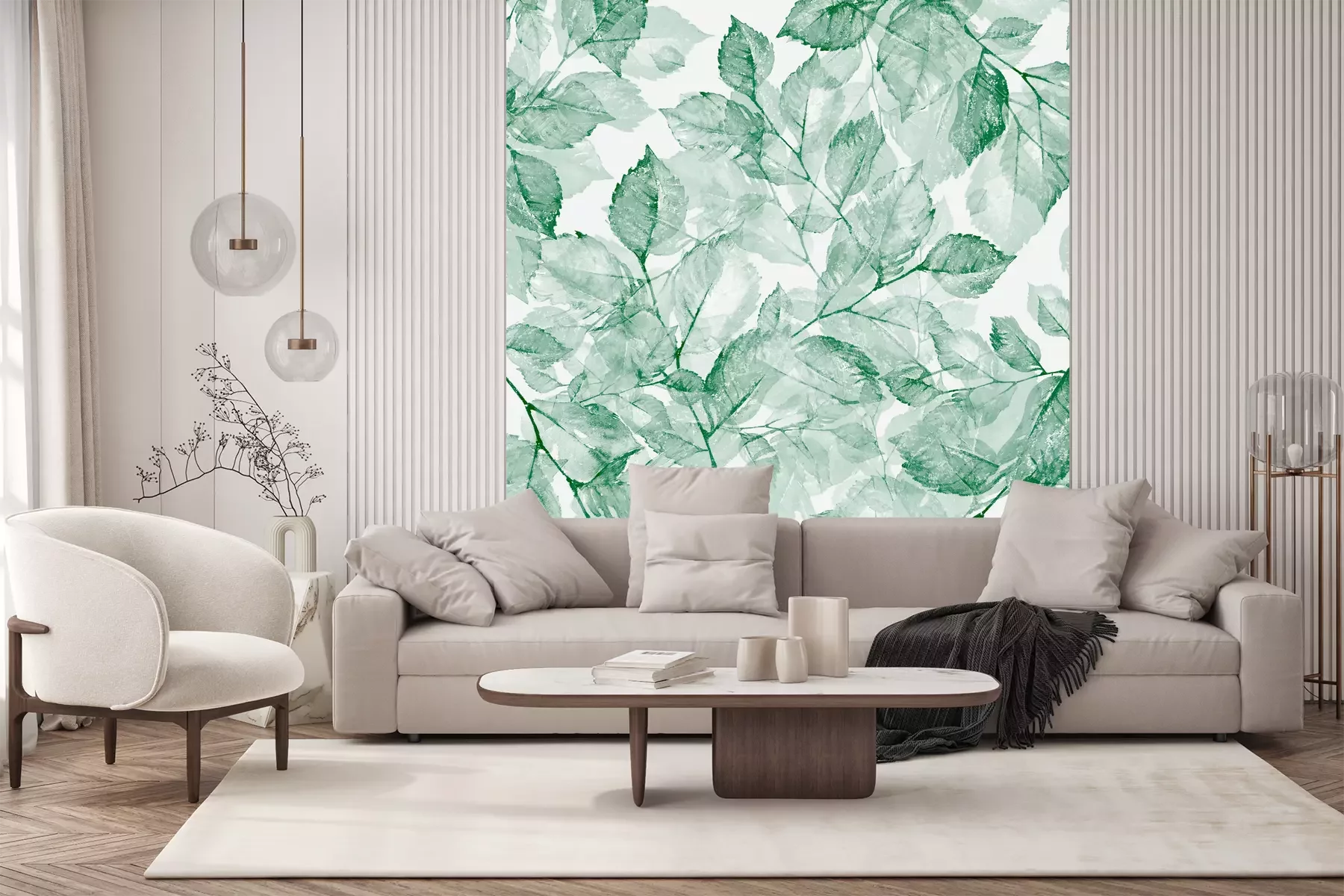 Het materiaal Premium+ is een gestructureerd vinyl op vlies met een gewicht van 255 g/m², dat kleine oneffenheden in de muur effectief camoufleert. De subtiele structuur van fijn zand geeft het oppervlak een exclusieve uitstraling, terwijl de halfmatte afwerking de diepte van de kleuren benadrukt. Het materiaal is dampdoorlatend, waardoor het ook in de keuken en badkamer kan worden gebruikt. De maximale breedte van één baan bedraagt 100 cm – bij grotere afmetingen wordt het fotobehang in meerdere gelijke banen verdeeld. De lijm wordt direct op de muur aangebracht en het behang wordt rand-aan-rand geplakt, wat zorgt voor een esthetisch resultaat zonder zichtbare naden. Het oppervlak kan gemakkelijk worden schoongemaakt door het voorzichtig af te nemen met een vochtige doek.