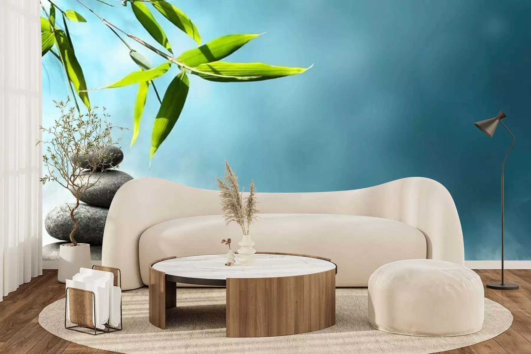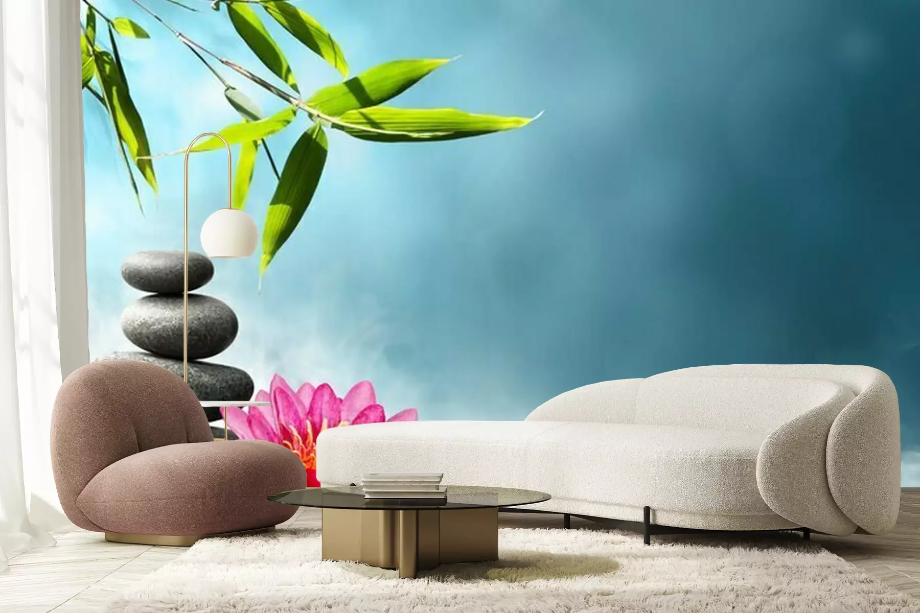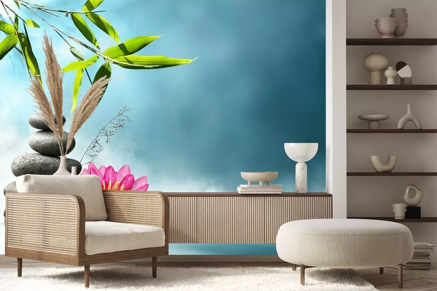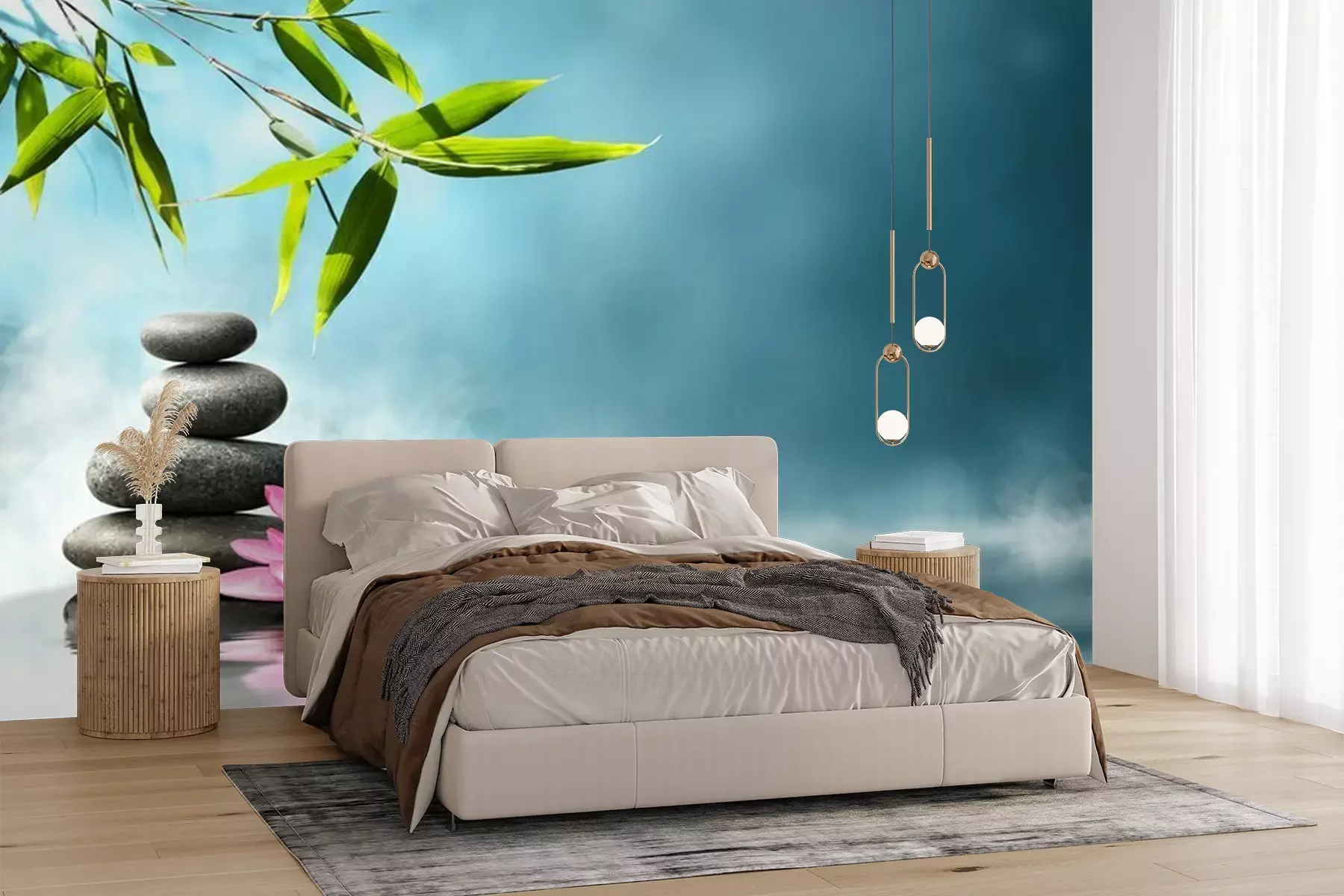 Orchidee samenstelling van stenen en bamboeFotobehang