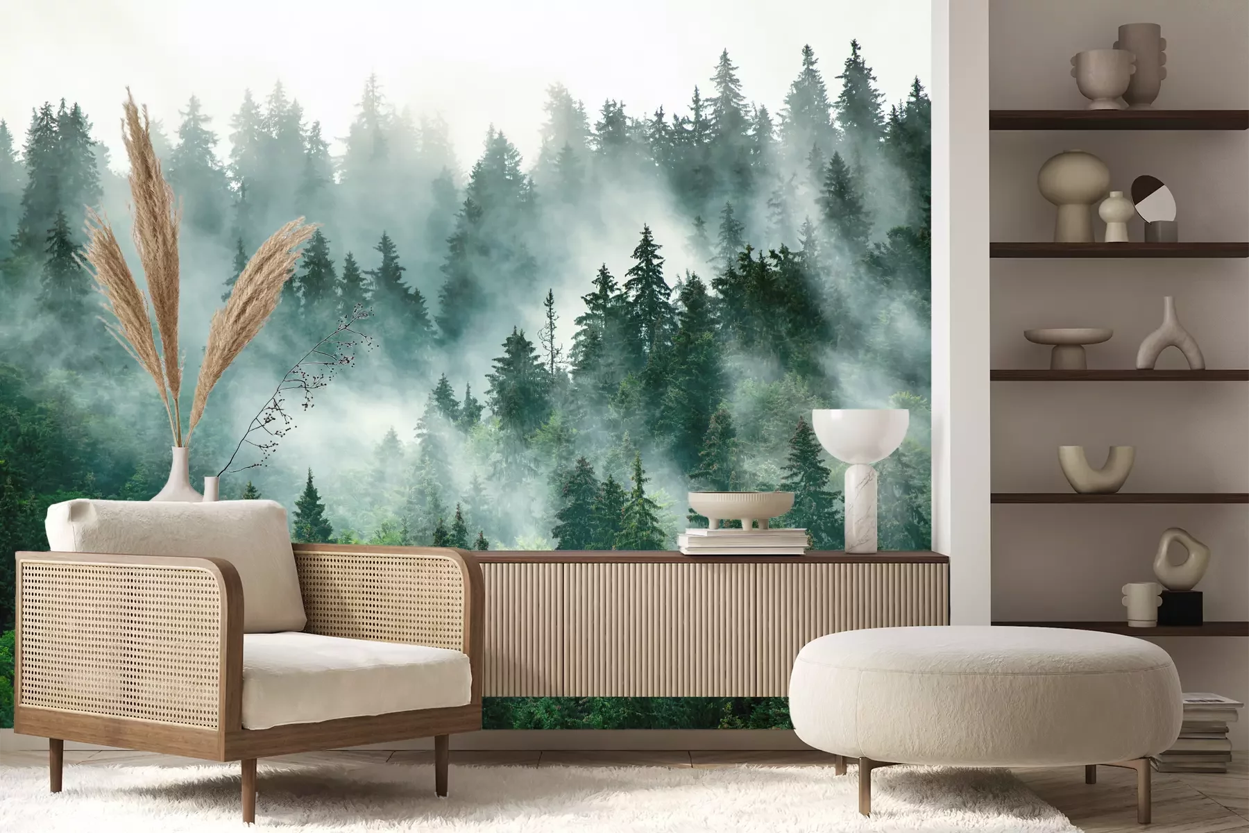 Het materiaal Premium+ is een gestructureerd vinyl op vlies met een gewicht van 255 g/m², dat kleine oneffenheden in de muur effectief camoufleert. De subtiele structuur van fijn zand geeft het oppervlak een exclusieve uitstraling, terwijl de halfmatte afwerking de diepte van de kleuren benadrukt. Het materiaal is dampdoorlatend, waardoor het ook in de keuken en badkamer kan worden gebruikt. De maximale breedte van één baan bedraagt 100 cm – bij grotere afmetingen wordt het fotobehang in meerdere gelijke banen verdeeld. De lijm wordt direct op de muur aangebracht en het behang wordt rand-aan-rand geplakt, wat zorgt voor een esthetisch resultaat zonder zichtbare naden. Het oppervlak kan gemakkelijk worden schoongemaakt door het voorzichtig af te nemen met een vochtige doek.