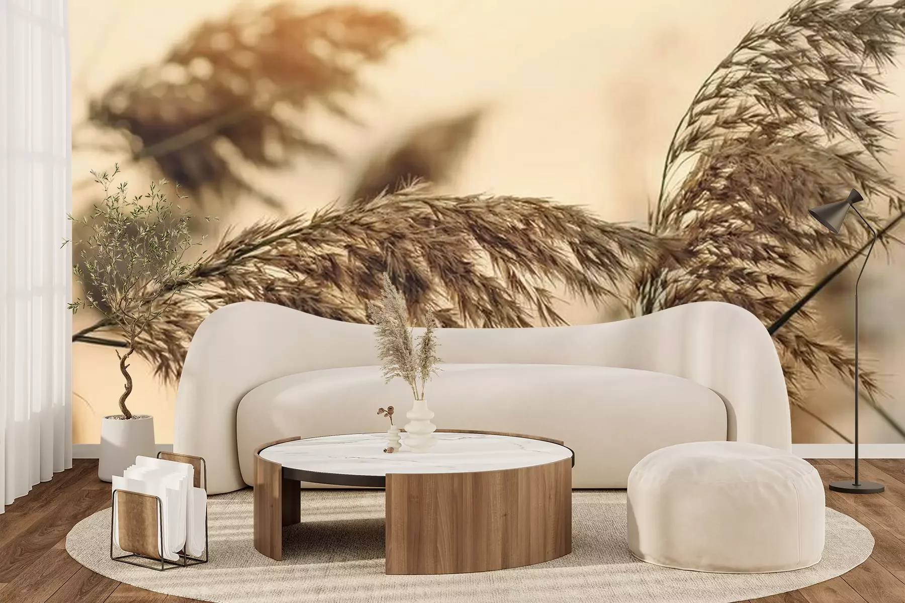 Wolgras in koele tintenFotobehang