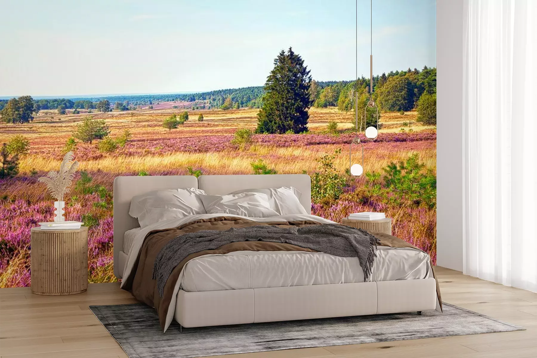 Het materiaal Premium+ is een gestructureerd vinyl op vlies met een gewicht van 255 g/m², dat kleine oneffenheden in de muur effectief camoufleert. De subtiele structuur van fijn zand geeft het oppervlak een exclusieve uitstraling, terwijl de halfmatte afwerking de diepte van de kleuren benadrukt. Het materiaal is dampdoorlatend, waardoor het ook in de keuken en badkamer kan worden gebruikt. De maximale breedte van één baan bedraagt 100 cm – bij grotere afmetingen wordt het fotobehang in meerdere gelijke banen verdeeld. De lijm wordt direct op de muur aangebracht en het behang wordt rand-aan-rand geplakt, wat zorgt voor een esthetisch resultaat zonder zichtbare naden. Het oppervlak kan gemakkelijk worden schoongemaakt door het voorzichtig af te nemen met een vochtige doek.
