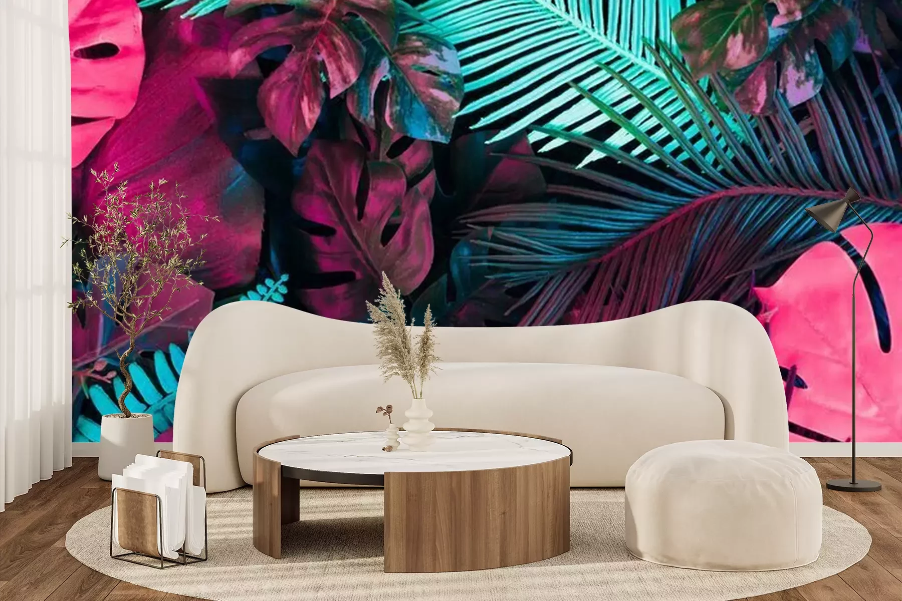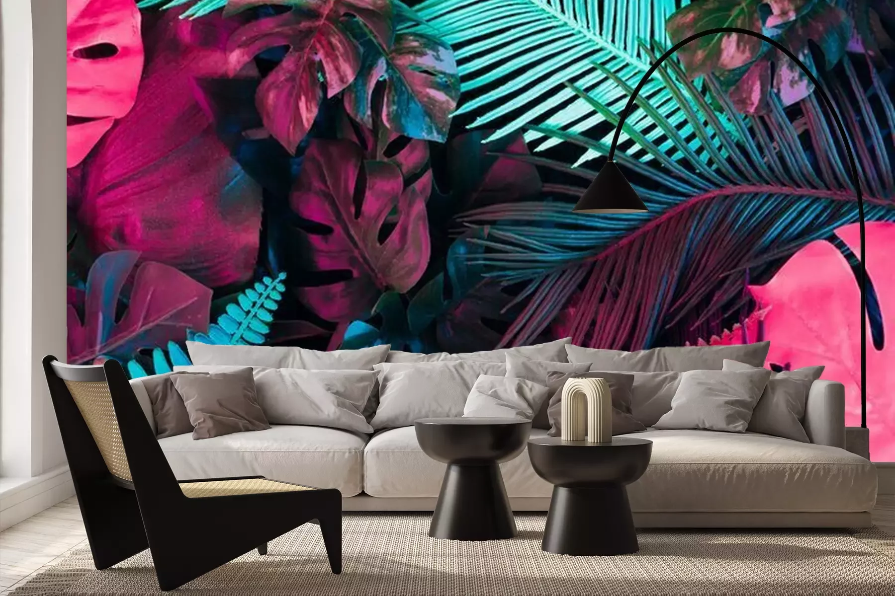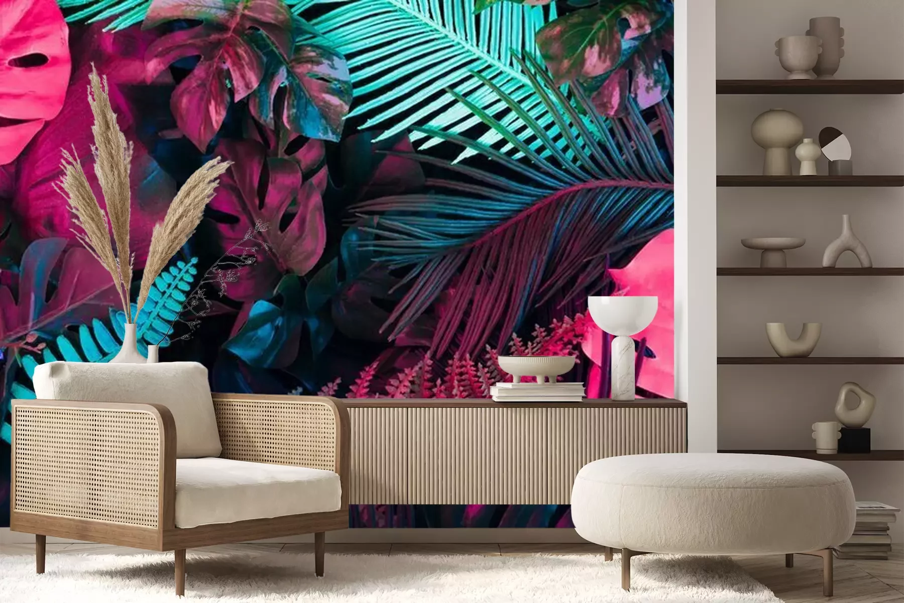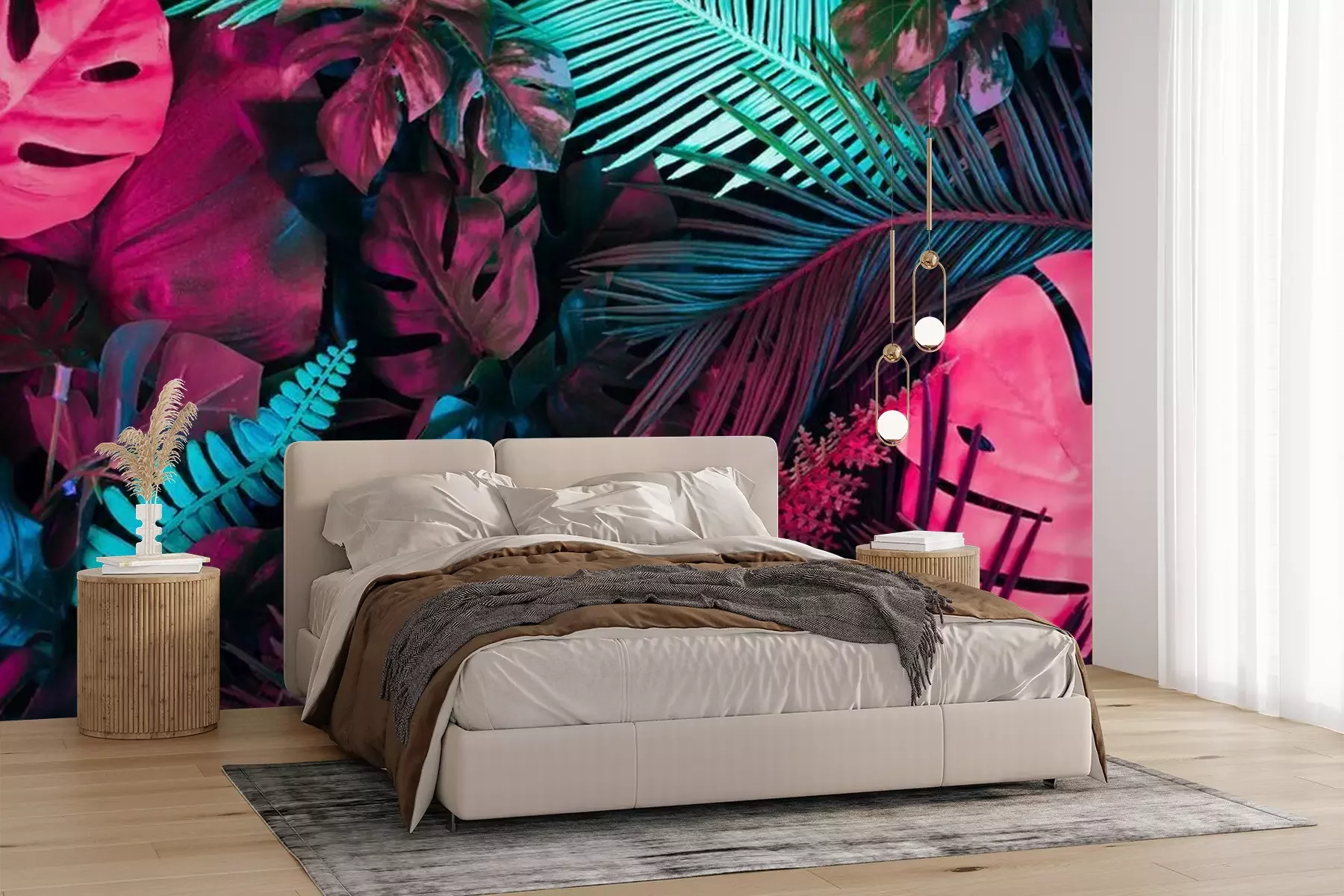 Tropische neon palmbomenFotobehang