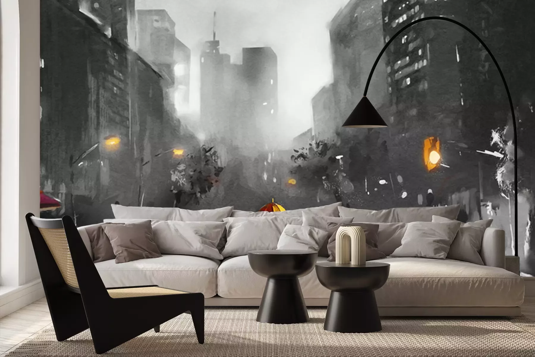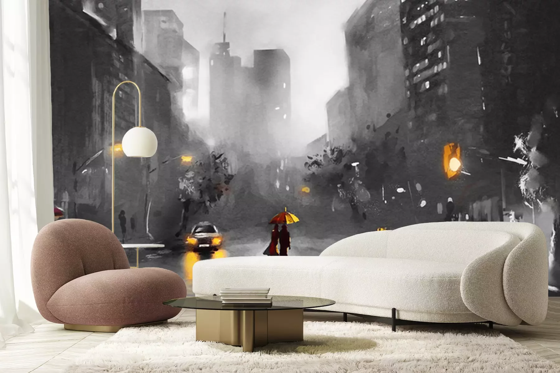 Fotobehang New Yorkse taxi's op een regenachtige avond