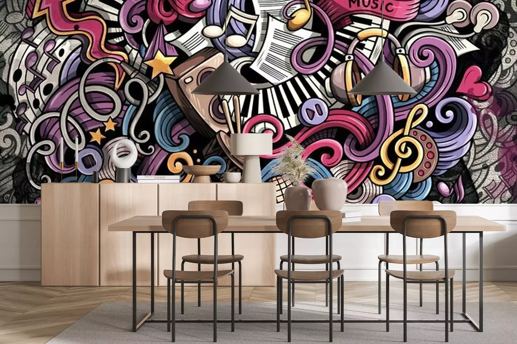 Fotobehang Noten en instrumenten kleurrijke compositie
