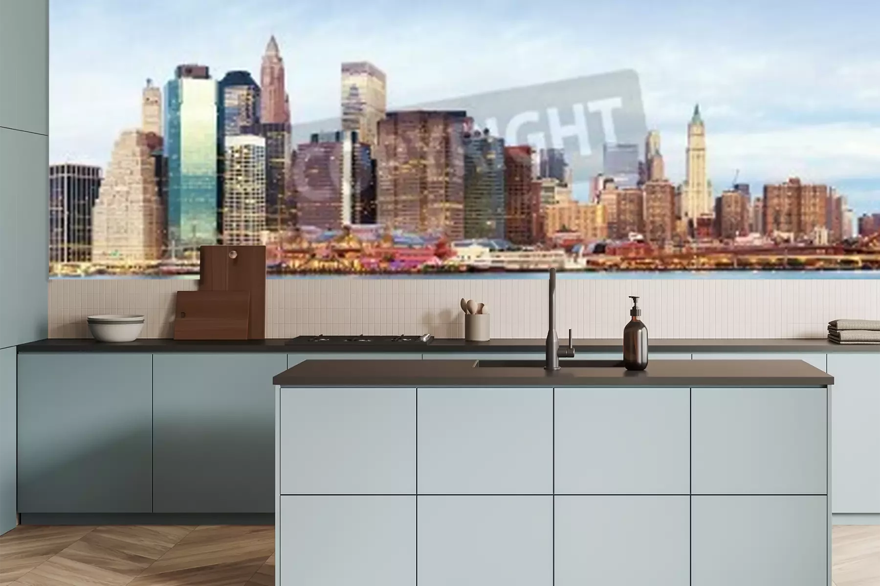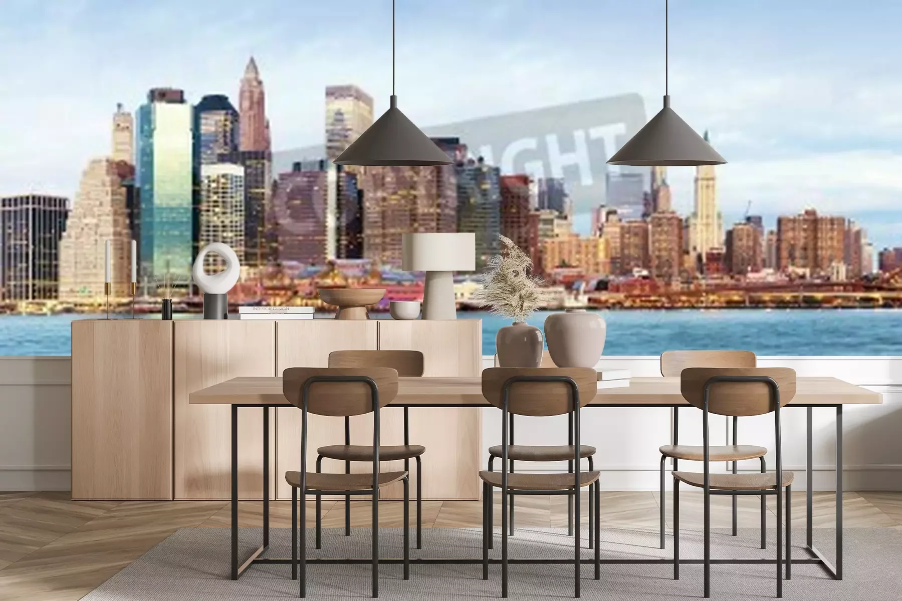 Fotobehang NY - Manhattan over de rivier - vroege morninig