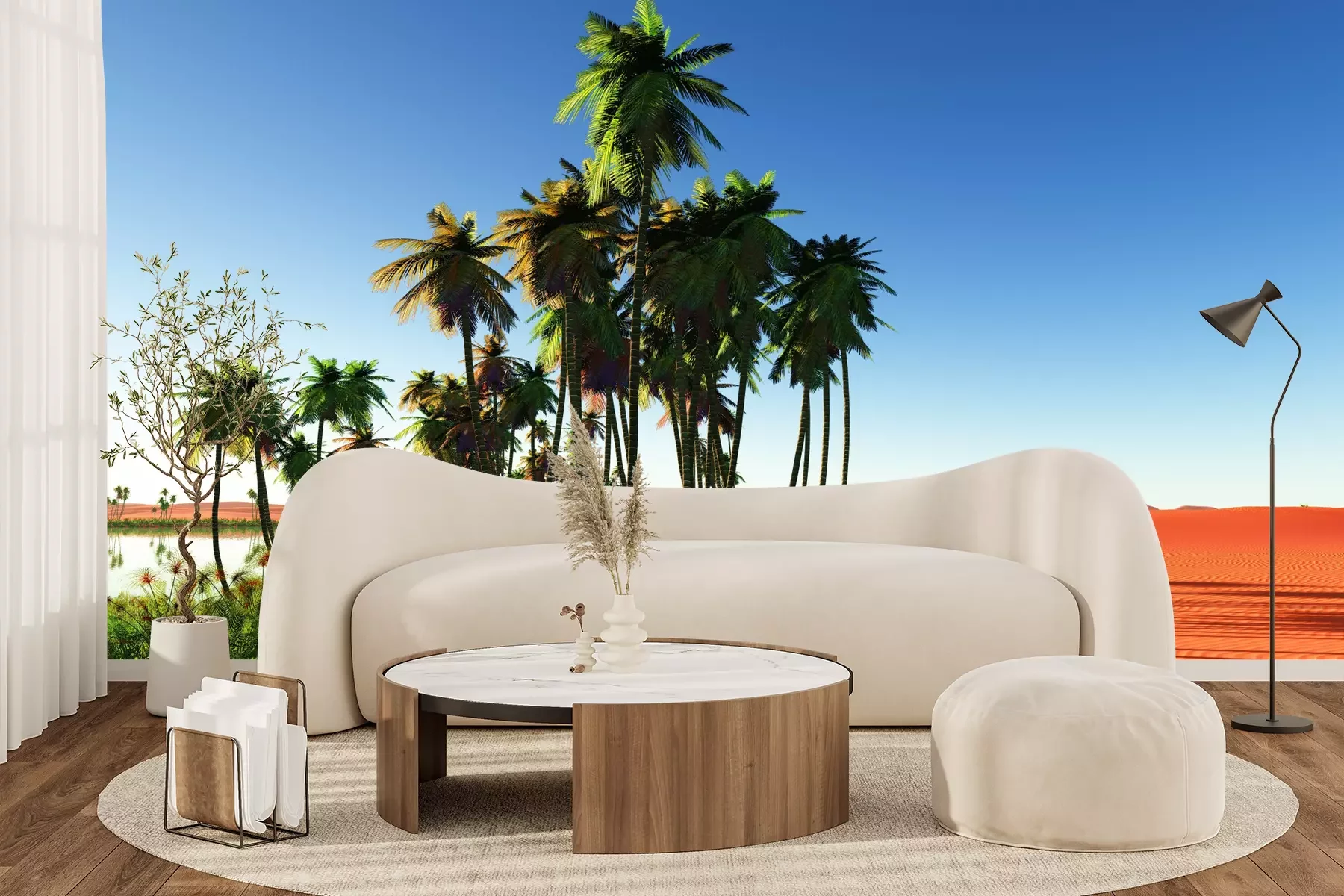 Het materiaal Premium+ is een gestructureerd vinyl op vlies met een gewicht van 255 g/m², dat kleine oneffenheden in de muur effectief camoufleert. De subtiele structuur van fijn zand geeft het oppervlak een exclusieve uitstraling, terwijl de halfmatte afwerking de diepte van de kleuren benadrukt. Het materiaal is dampdoorlatend, waardoor het ook in de keuken en badkamer kan worden gebruikt. De maximale breedte van één baan bedraagt 100 cm – bij grotere afmetingen wordt het fotobehang in meerdere gelijke banen verdeeld. De lijm wordt direct op de muur aangebracht en het behang wordt rand-aan-rand geplakt, wat zorgt voor een esthetisch resultaat zonder zichtbare naden. Het oppervlak kan gemakkelijk worden schoongemaakt door het voorzichtig af te nemen met een vochtige doek.